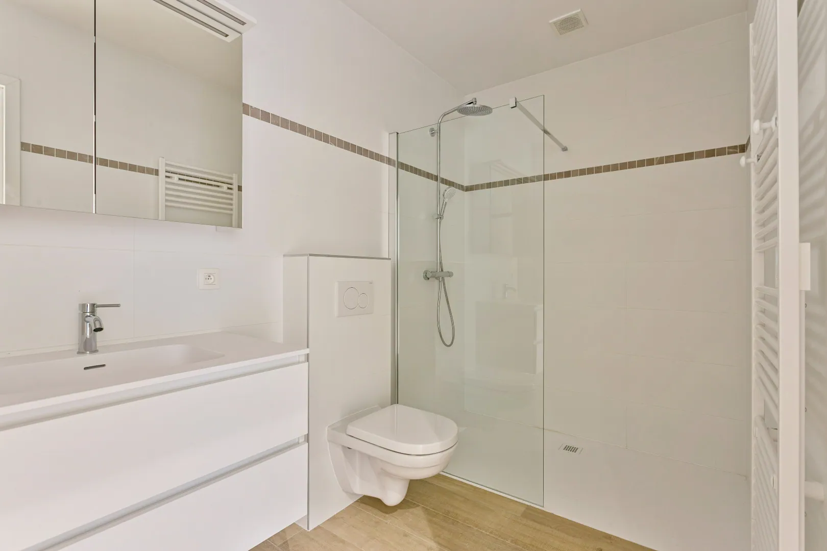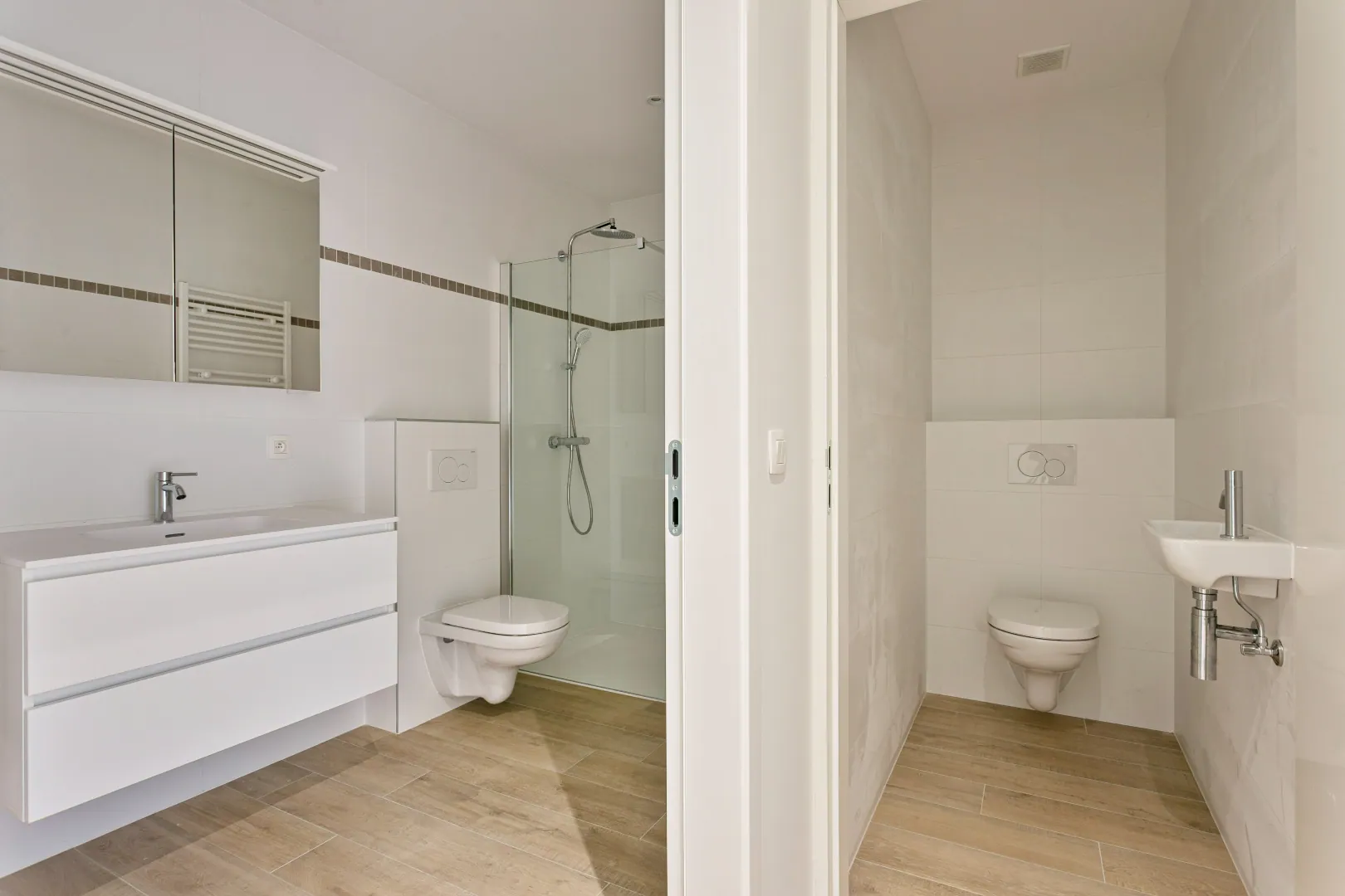 Dit appartement is minder-valide vriendelijk waarbij er rekening werd gehouden met extra brede deuren en een extra ruime parkeerplaats.