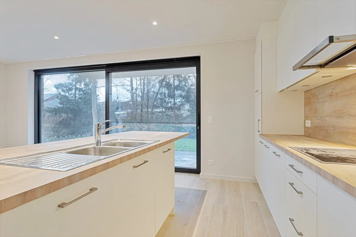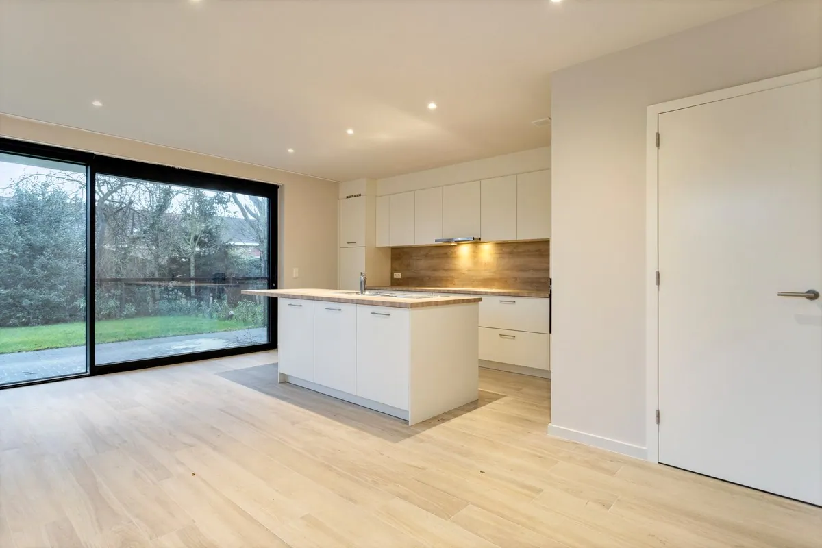 Via de inkomhal bereik je de ruime leefruimte met open keuken die toegang biedt tot de Zuid-Oost tuin. Aansluitend op de keuken bevindt zich de ruime berging.