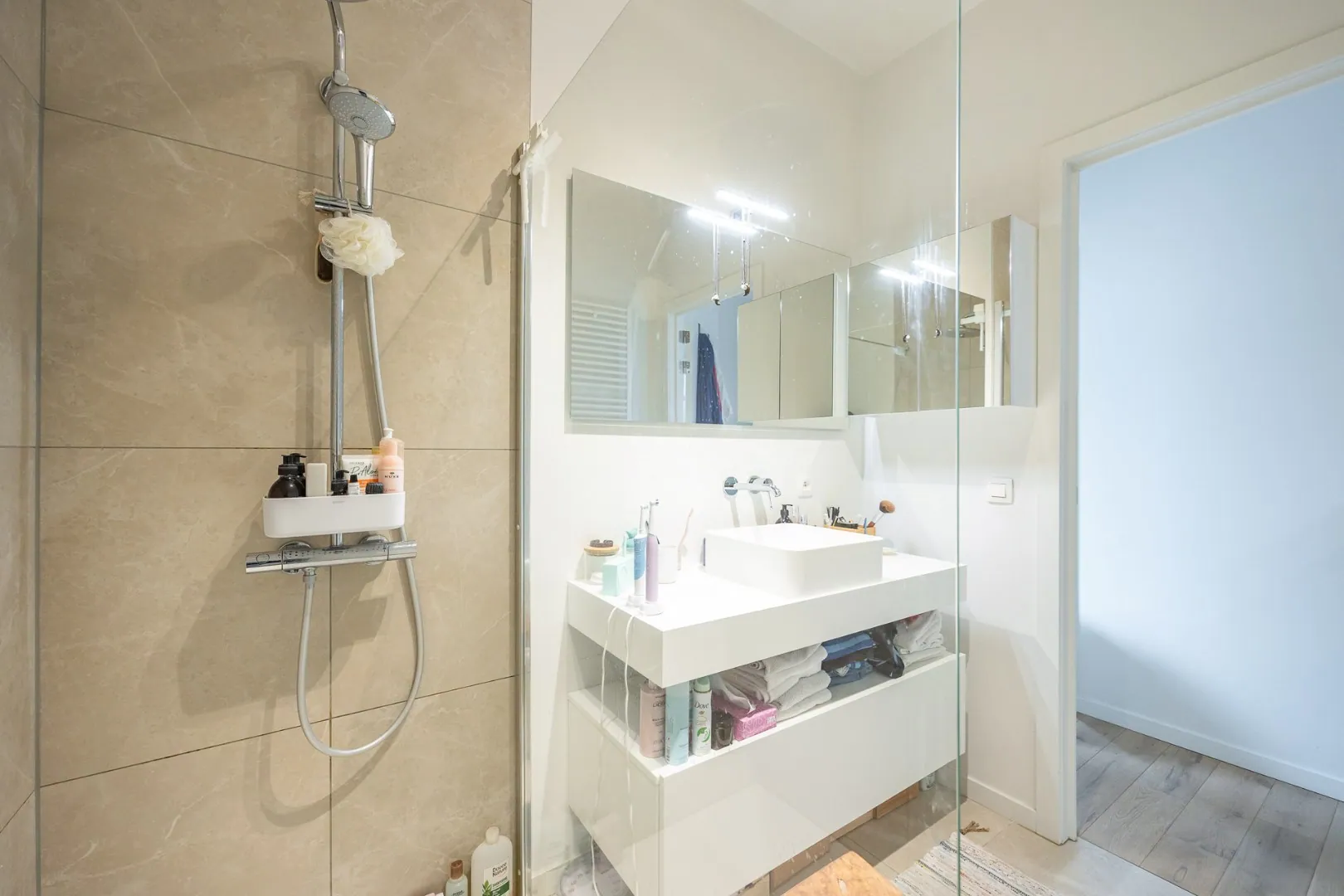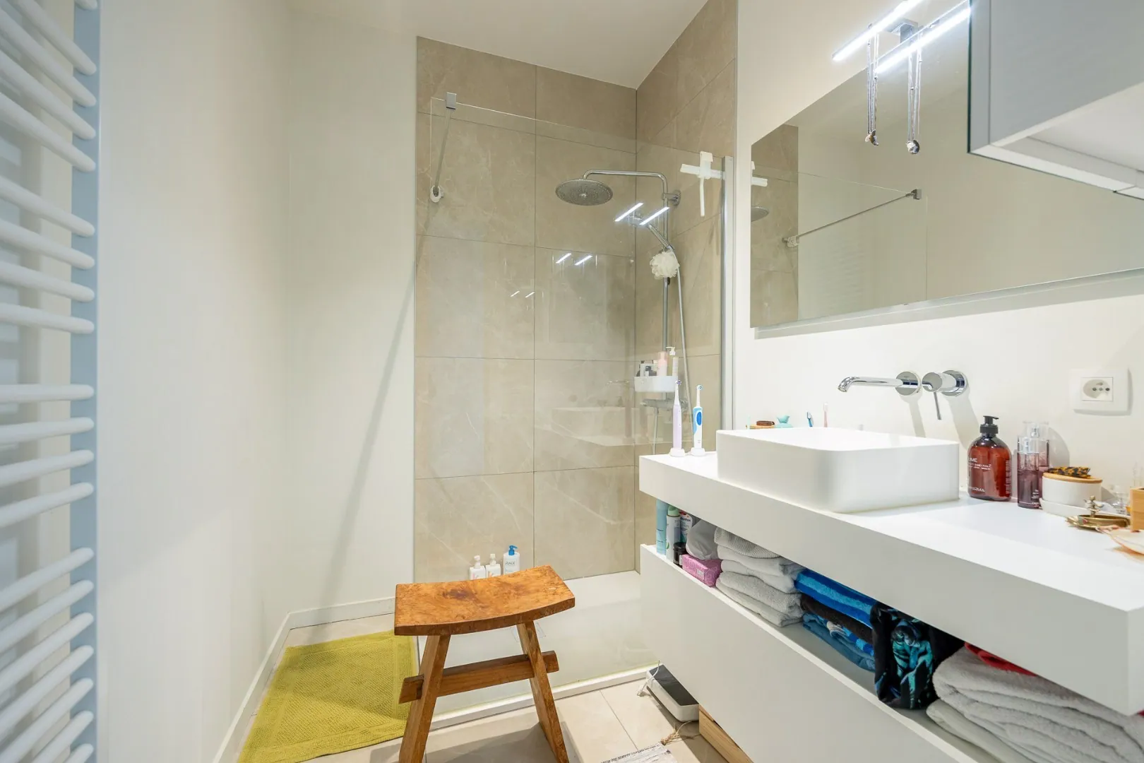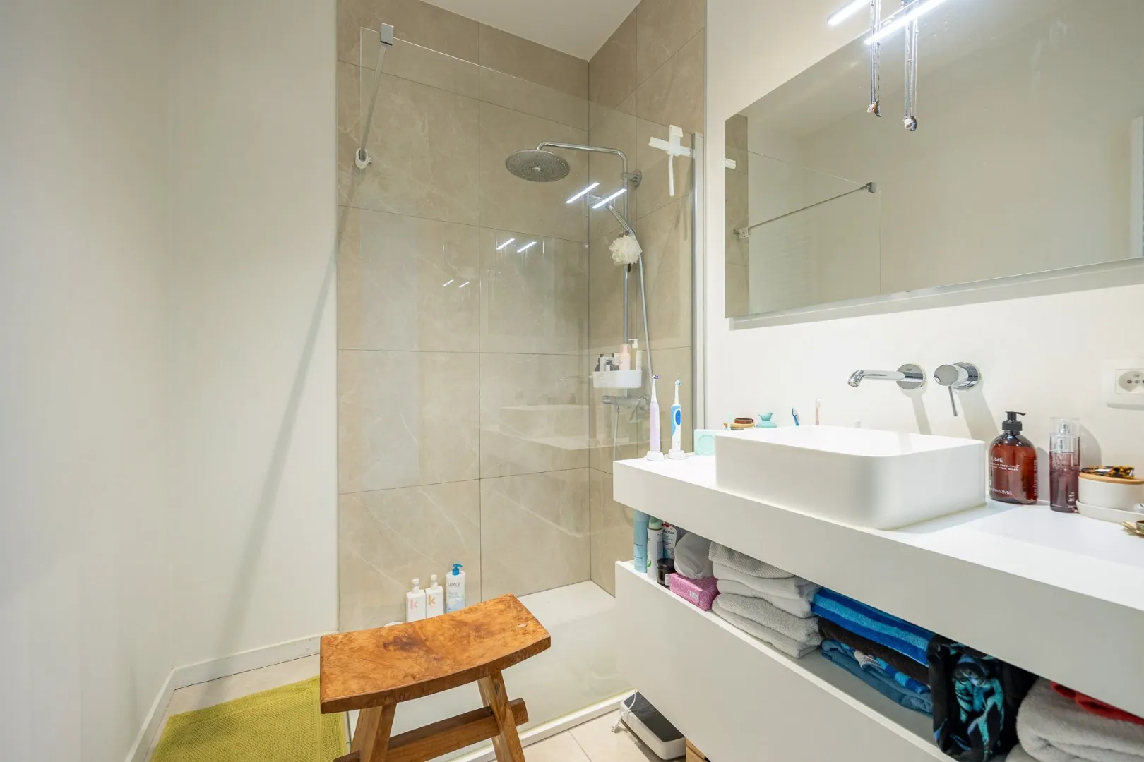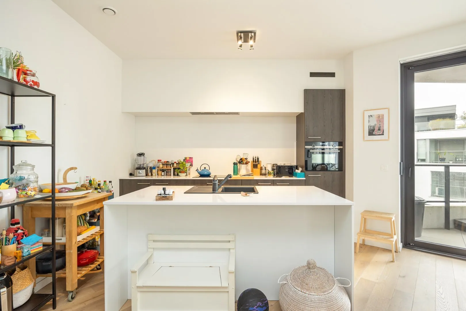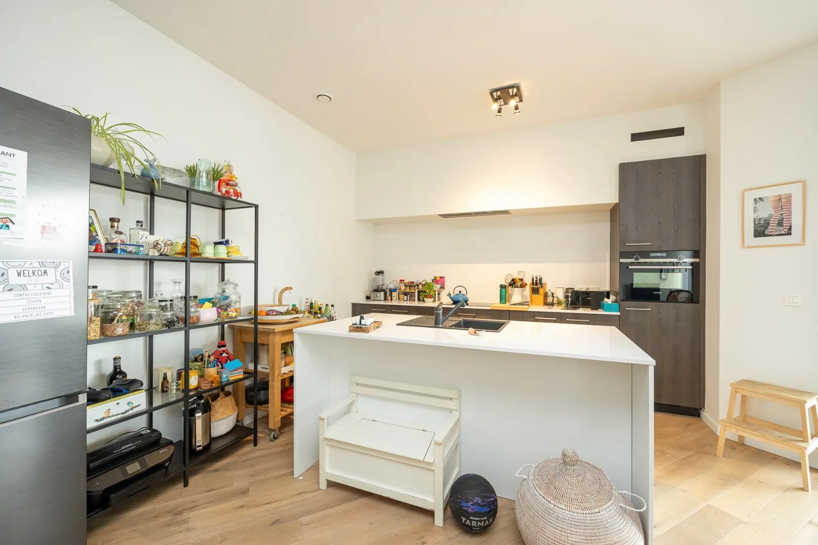 De keuken is uitgerust met een stijlvol kookeiland, ideaal voor wie van koken houdt of graag in gezelschap geniet. Verder biedt het appartement ook een private kelderbering en beschikt het over één autostaanplaatsen in de ondergrondse garage voor extra gemak. Mogelijkheid tot huren tweede auto staanplaats.