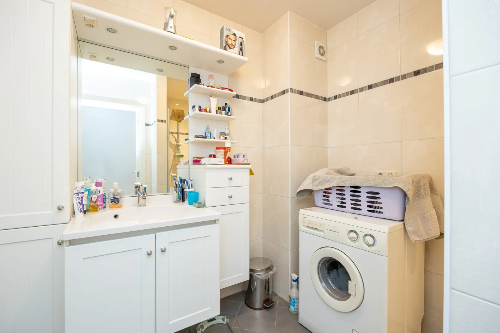 Het appartement beschikt over een lichtrijke leefruimte met open keuken en aansluitend een groot terras. Verder heeft het appartement twee slaapkamers en een badkamer met douche. Voor extra comfort is er een lift aanwezig in het gebouw die u naar de ondergrondse garage brengt. Er is een ondergrondse garagebox inbegrepen, evenals een private kelderberging voor extra opslagruimte.