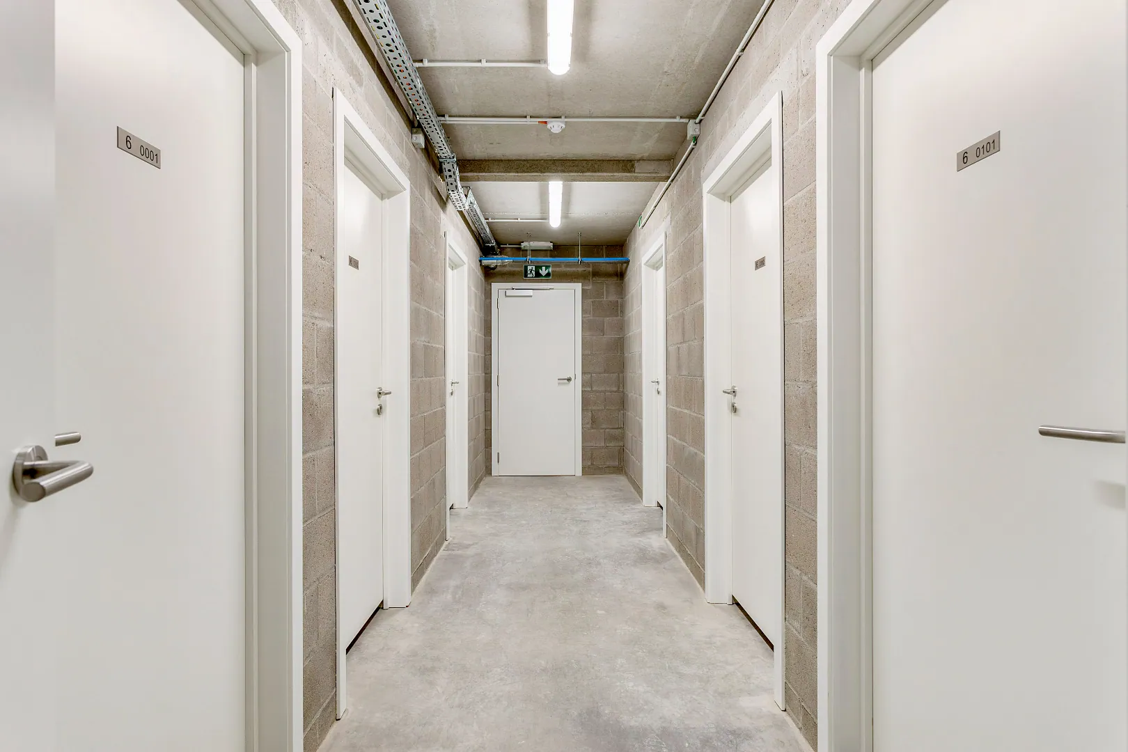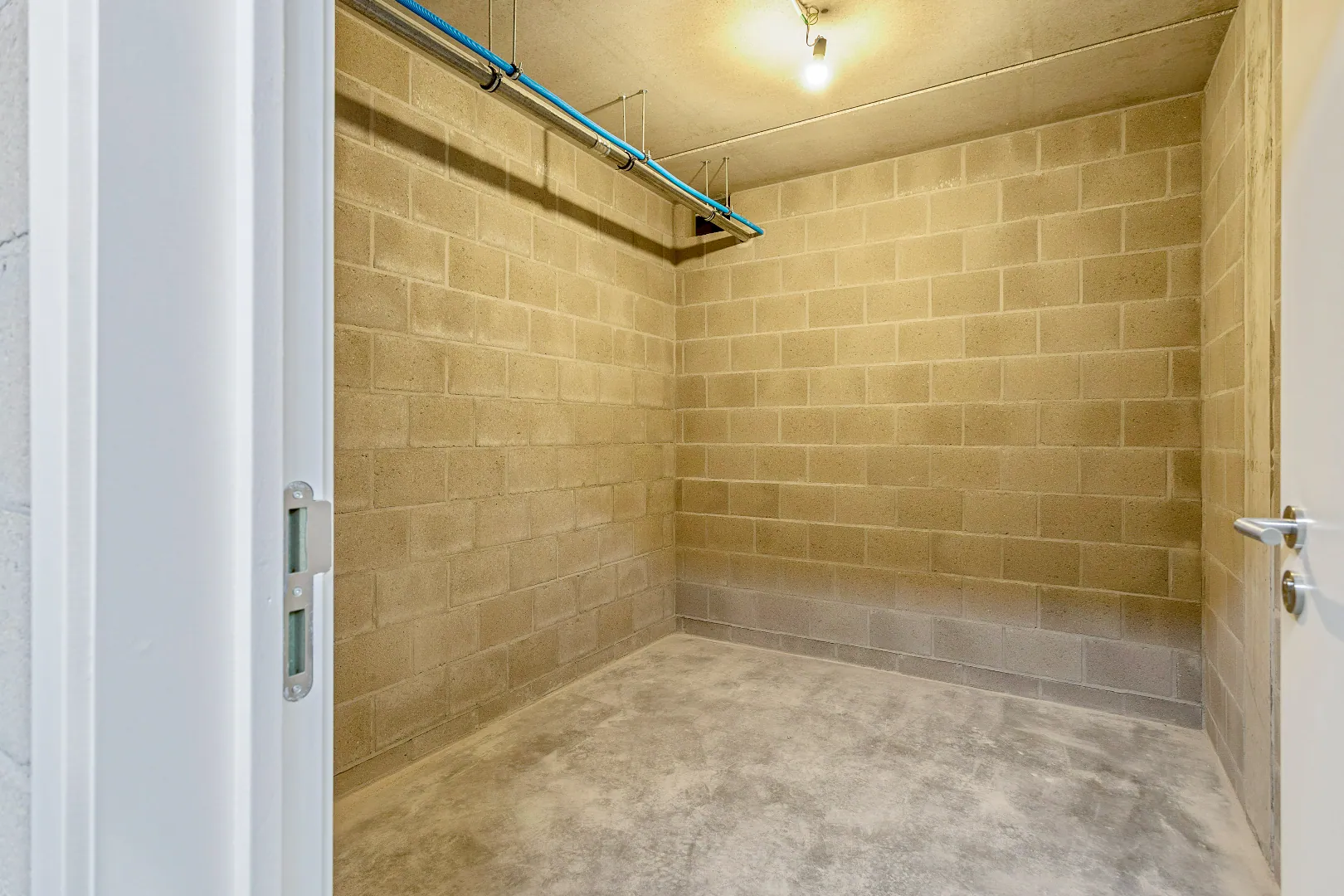 Er is een private kelderruimte aanwezig en de mogelijkheid tot bijhuren van een autostaanplaats (€90/maand) achteraan het gebouw.