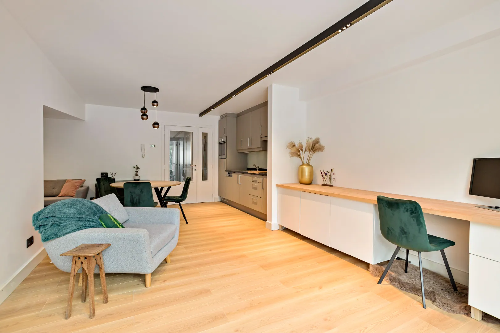 Dit appartement wordt volledig bemeubeld verhuurd (inclusief keukengerei, wasmachine,...).