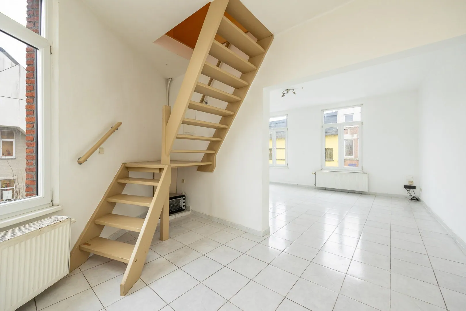 Het appartement beschikt over een ruime, lichtrijke woonkamer met open keuken en een badkamer voorzien van douche en toilet. Verder nemen we de trap en vinden we twee ruime slaapkamers. Het appartement heeft een bergplaats op het gelijkvloers, ideaal voor het plaatsen van wasmachine, droogkast, diepvries, fietsen, ... .