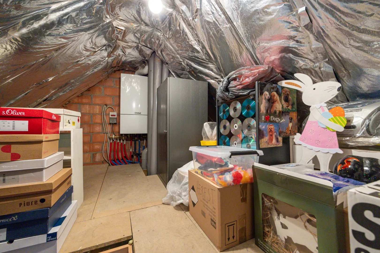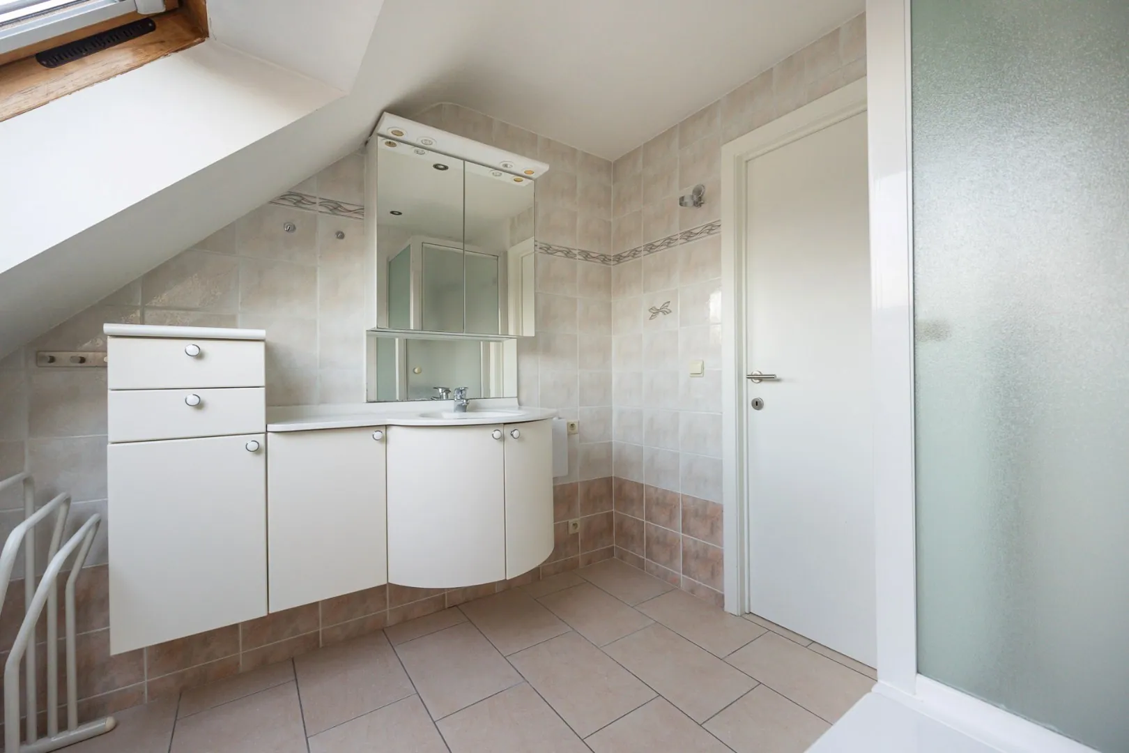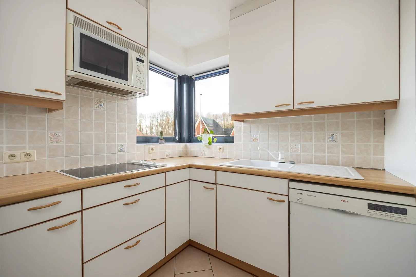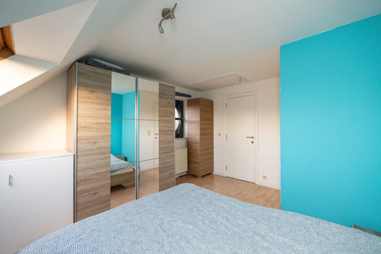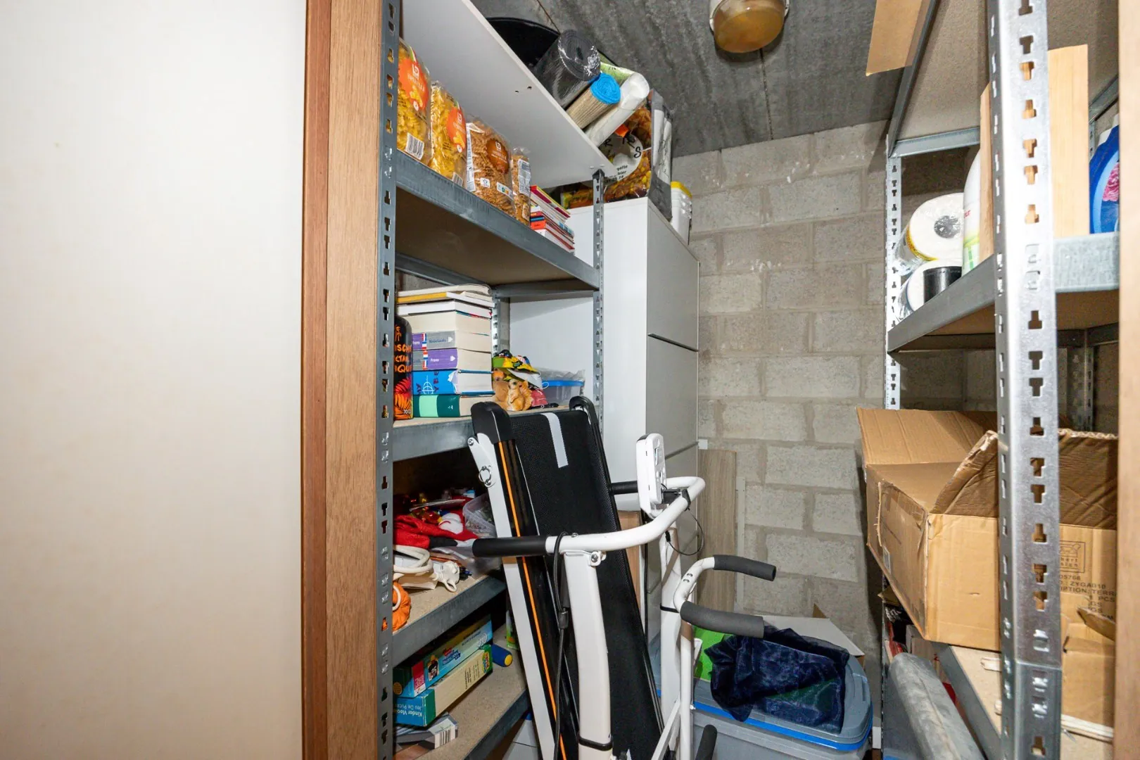 Verder beschikt dit appartement nog over een kleine zolderberging, een private kelderberging en een garagebox in de ondergrondse parking. Er is een gemeenschappelijke ruimte voor de vuilnisbakken.