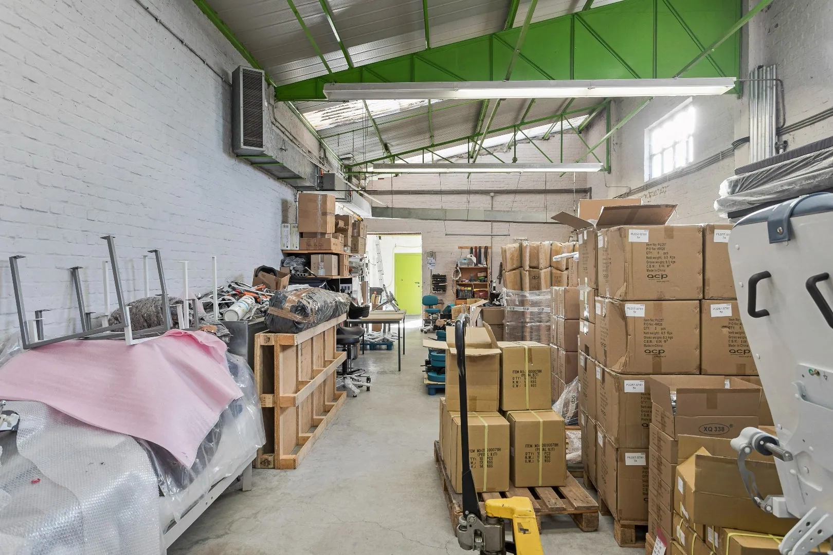 Dit magazijn met kantoorruimte en appartement is te huur voor €4500/maand.