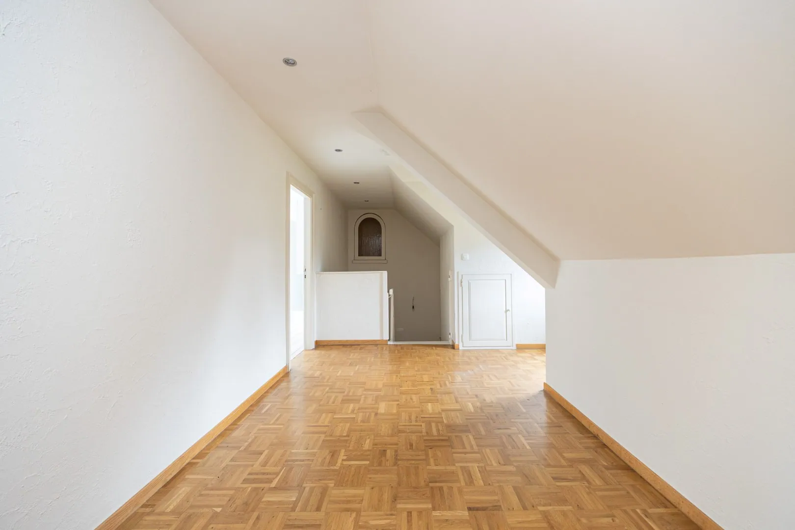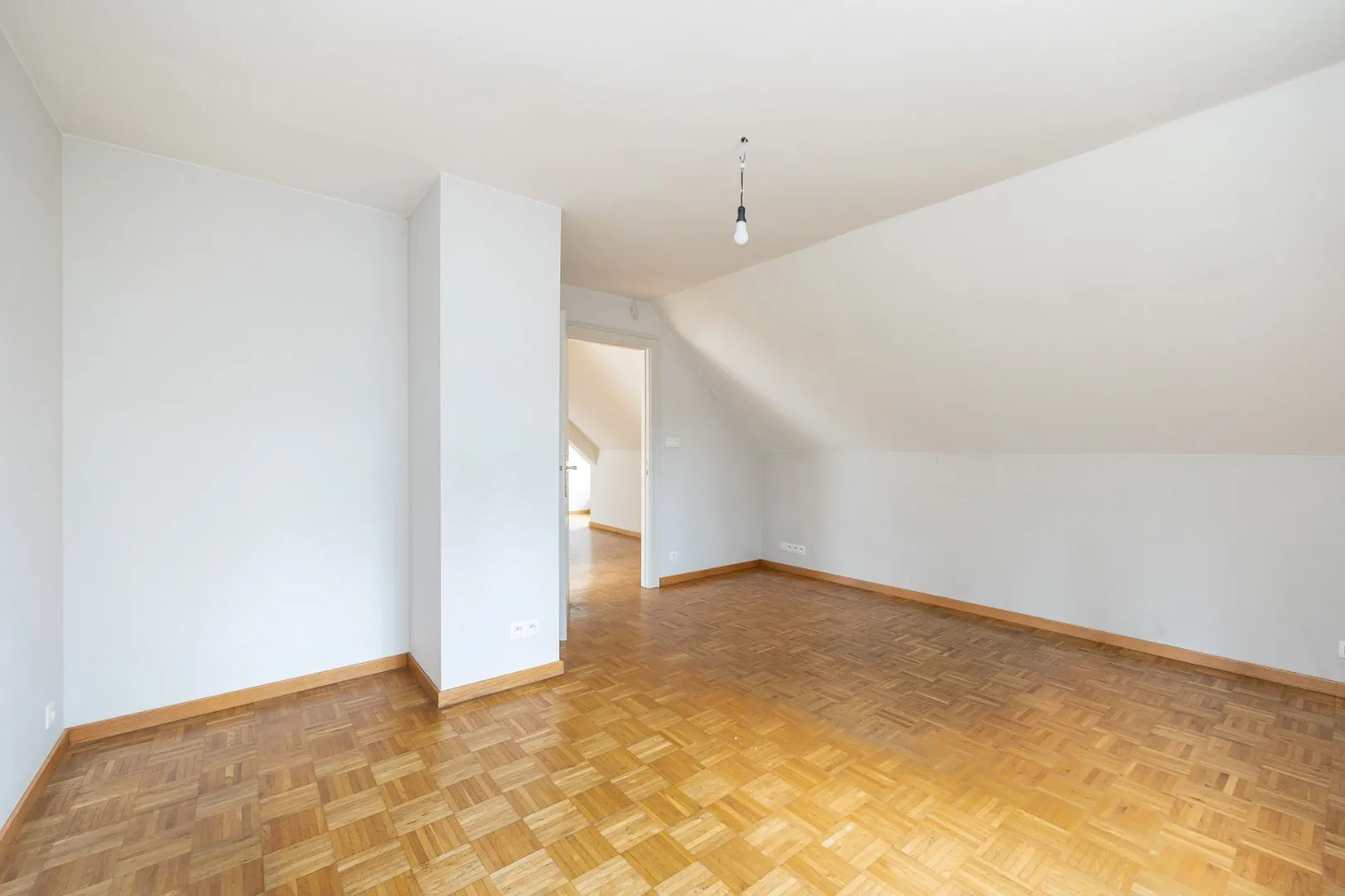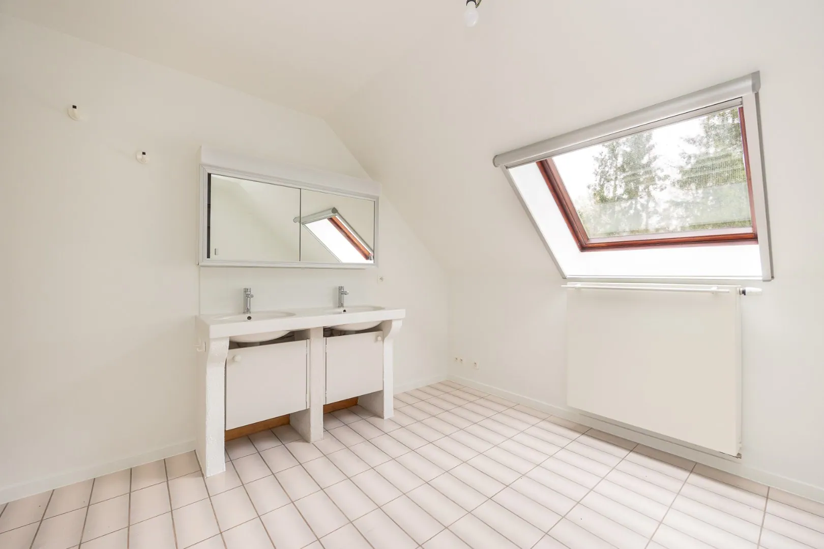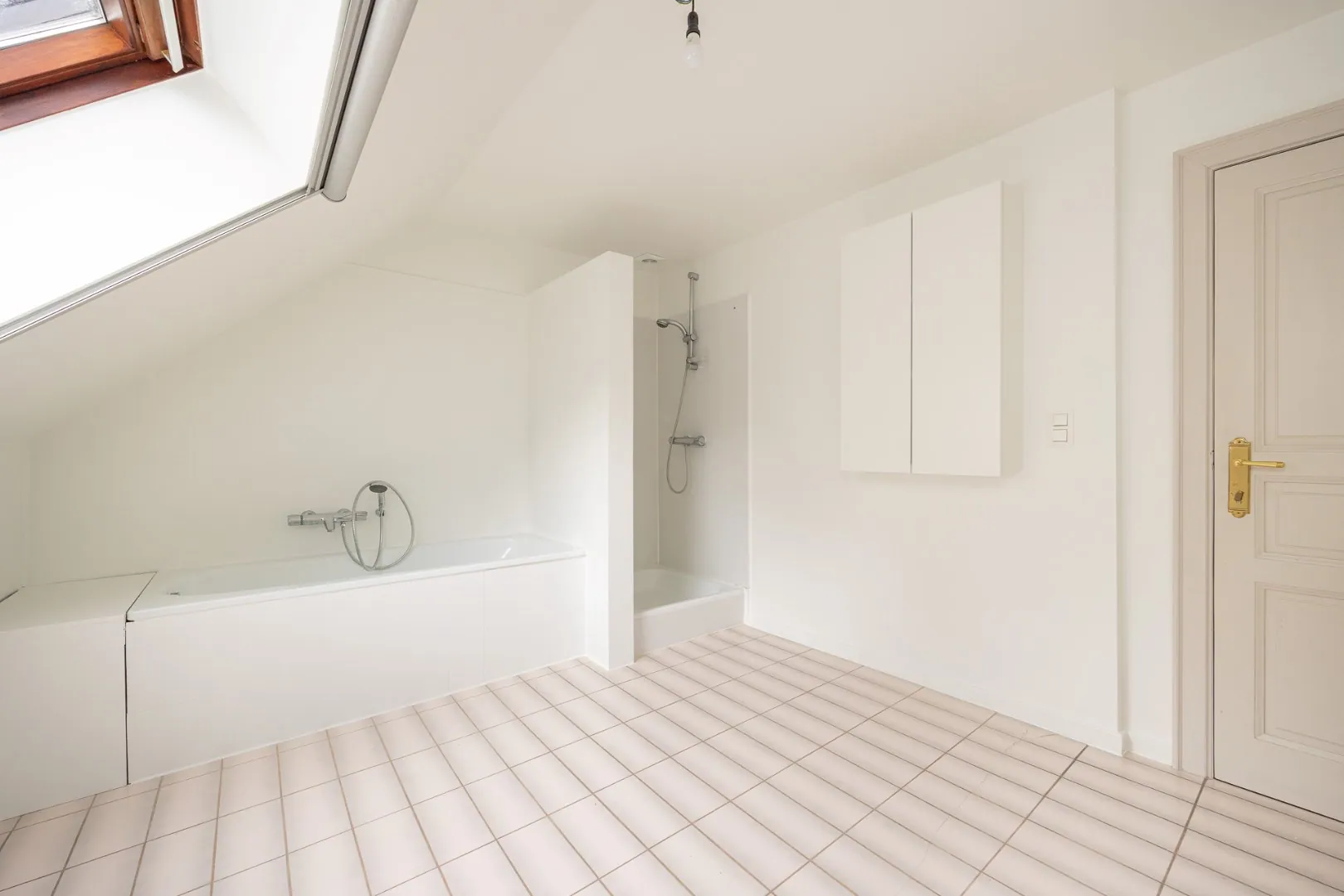 Op het eerste tussenverdiep vinden we de Masterbedroom en een tweede toilet. Enkele trappen hoger, de badkamer met zowel bad als douche en twee extra slaapkamers.