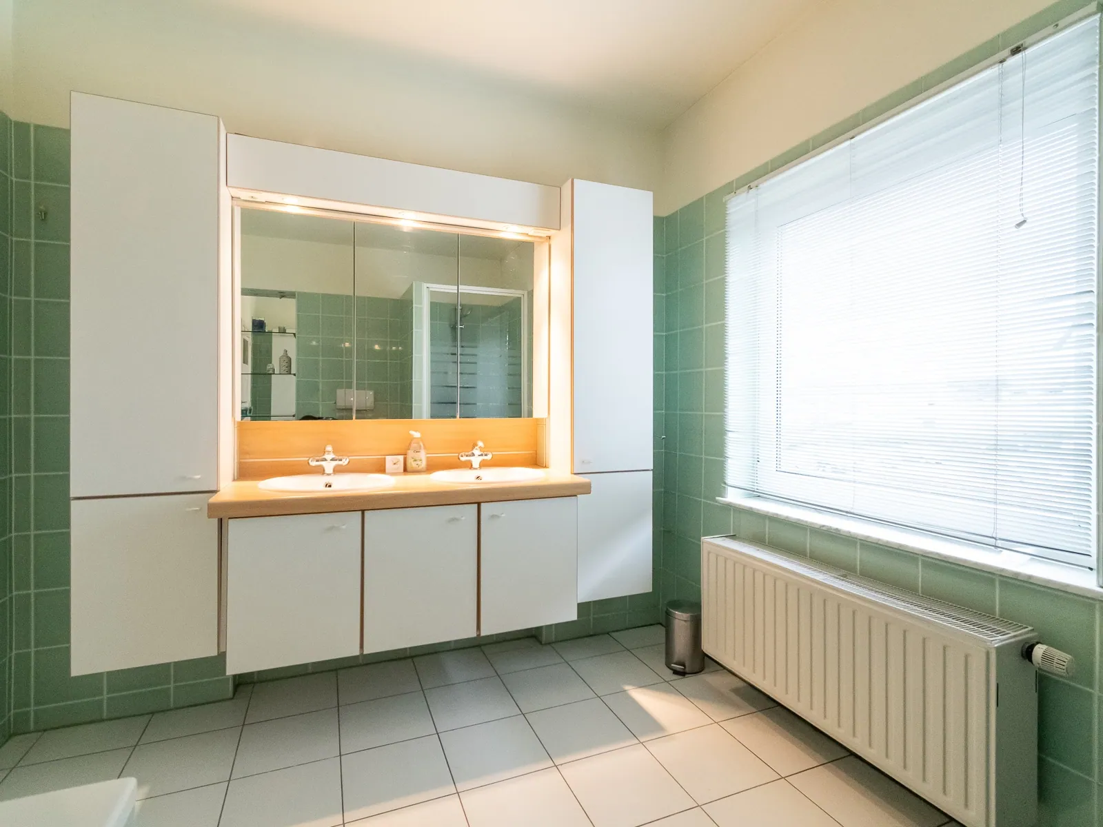 Op de eerste verdieping vinden we 3 ruime slaapkamers waarvan één met toegang tot een terras alsook de badkamer voorzien van bad, douche en tweede toilet.