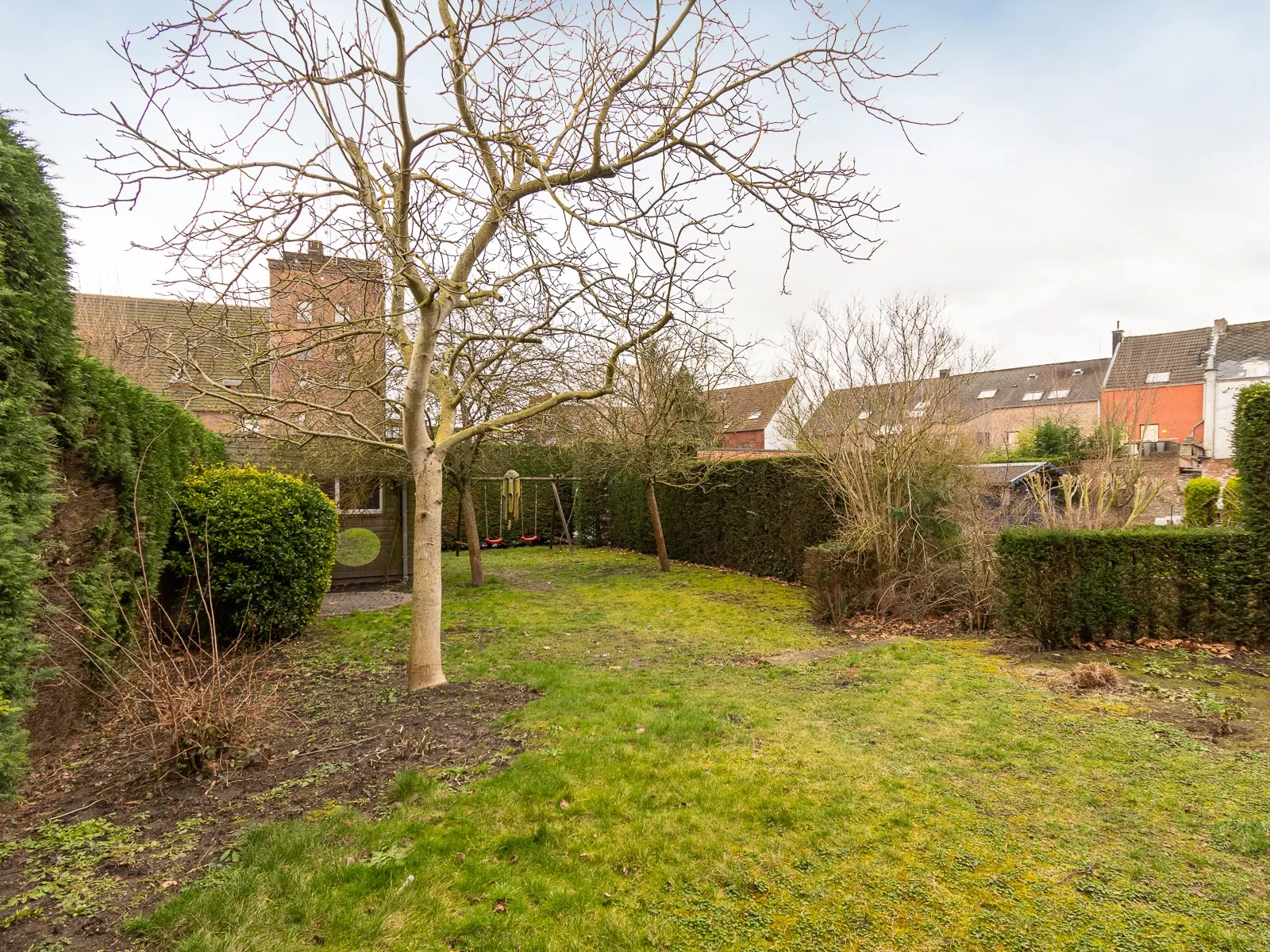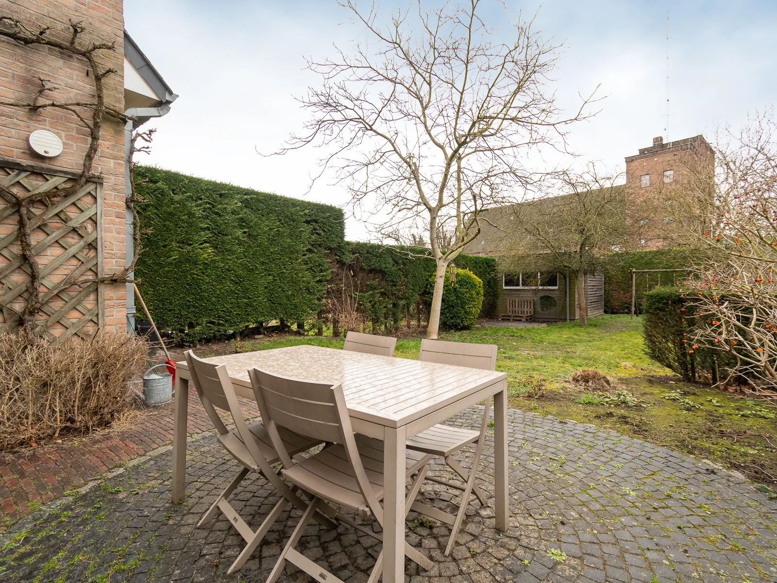 De tuin is te betreden via de zij ingang naast de woning of via de ingang langs de achterliggende straat (ideaal voor fietsen etc...).