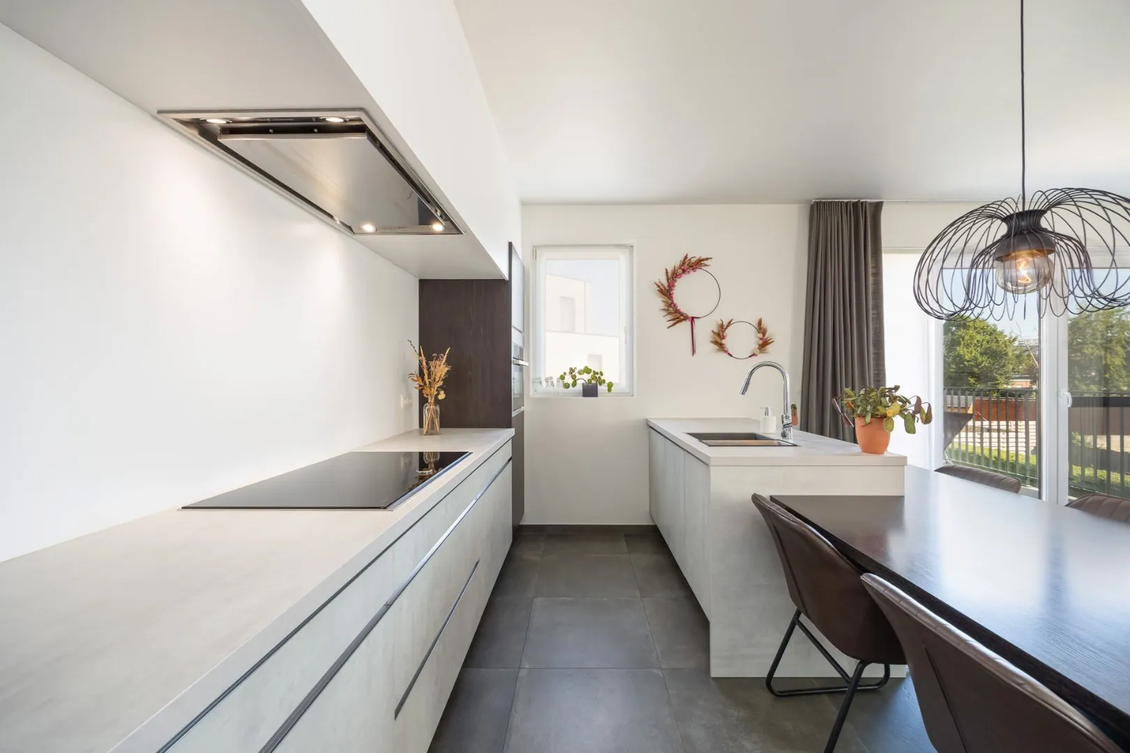 Via de inkomhal wandel je binnen in een royale leefruimte waar het daglicht vrij spel heeft. Aansluitend vind je een gezellig west-georiënteerd terras, perfect voor zonnige avonden. De open keuken is volledig uitgerust met kwaliteitsvolle toestellen, zodat koken een plezier wordt. Verder beschik je over twee volwaardige slaapkamers, een strakke, moderne badkamer en een apart toilet.
