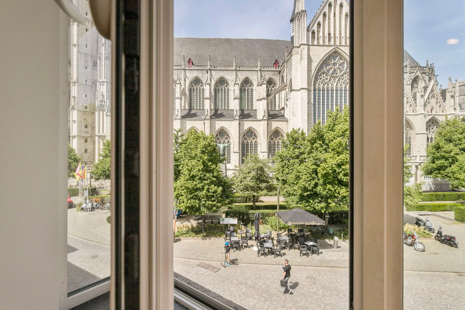 Appartement met één slaapkamer op topligging met uitzicht op de Sint-Romboutskathedraal te Mechelen.