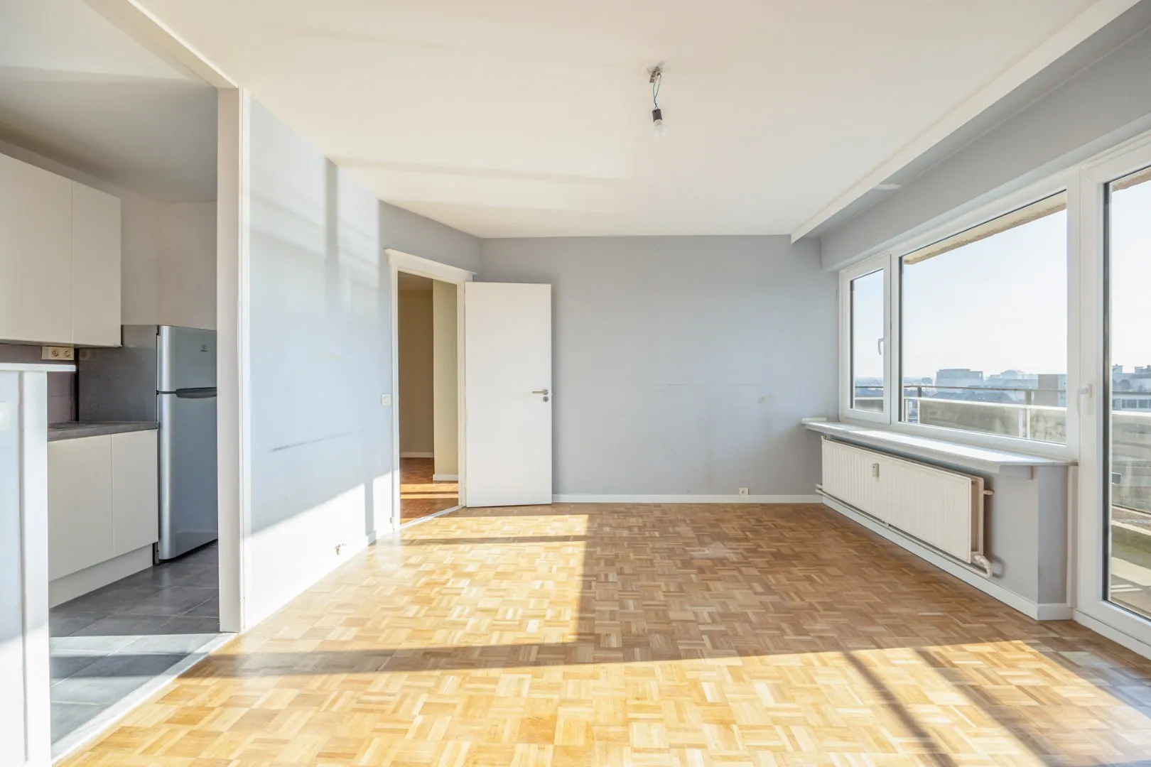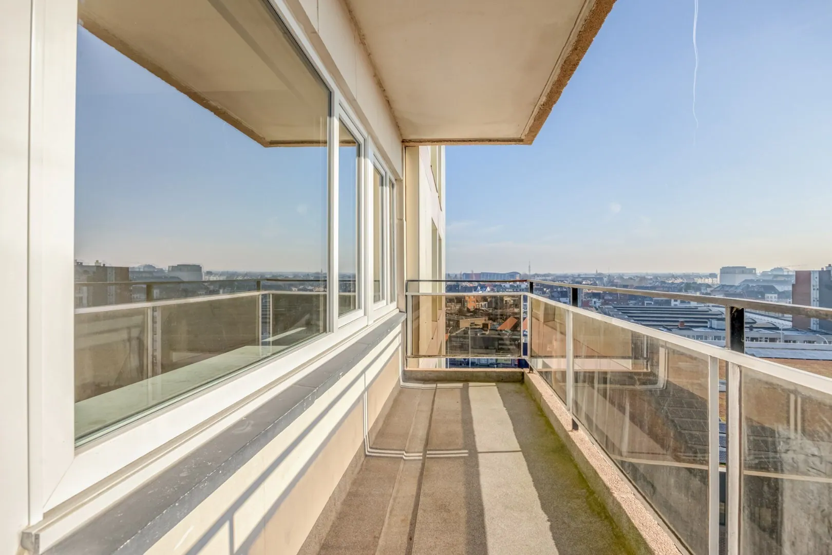 Op de 8ste verdieping van een goed onderhouden gebouw met lift bevindt zich dit gezellige 1-slaapkamerappartement. Dankzij de twee terrassen geniet u hier de hele dag van natuurlijke lichtinval en een prachtig uitzicht over de stad. Met zijn centrale ligging hebt u een vlotte verbinding naar het centrum, openbaar vervoer en winkels alsook invalswegen (R6, E19).