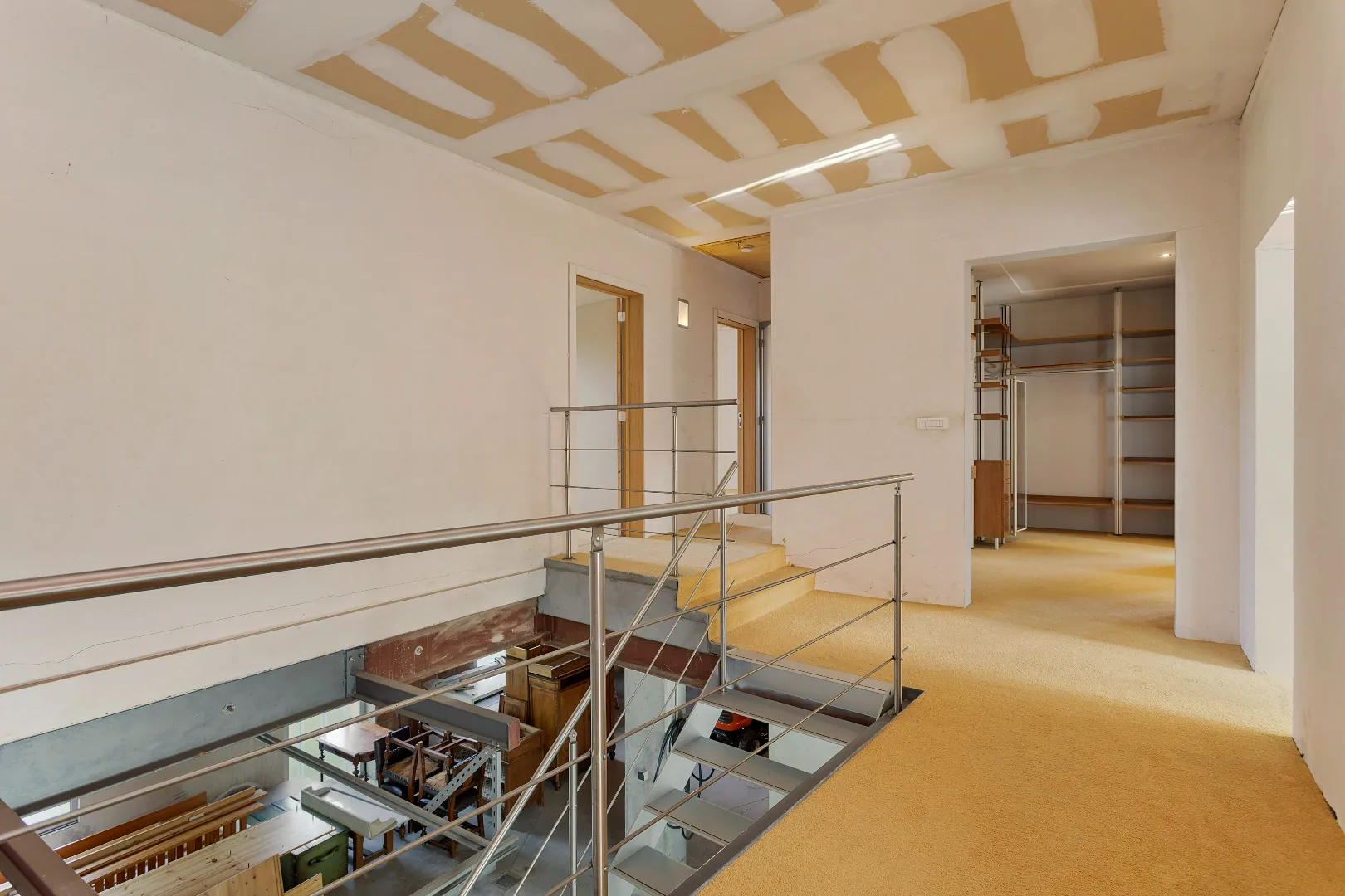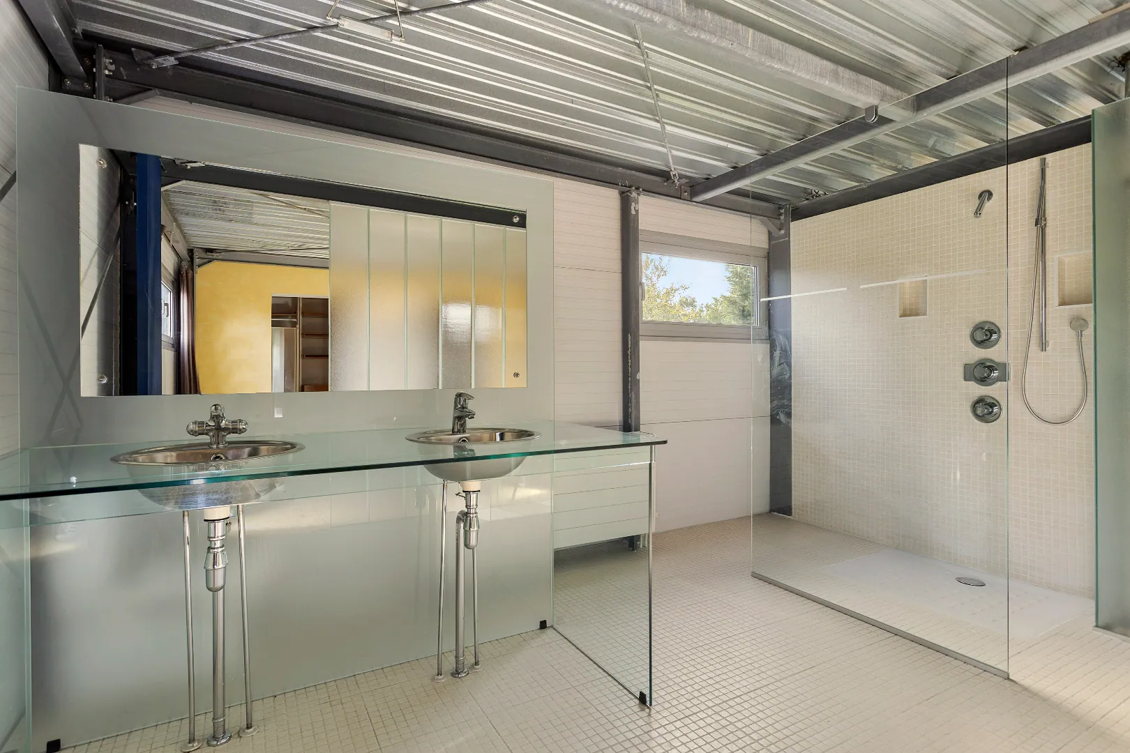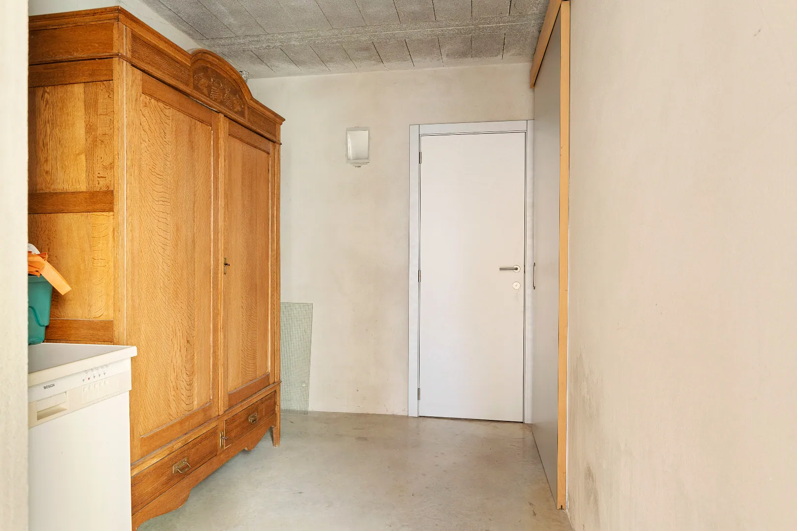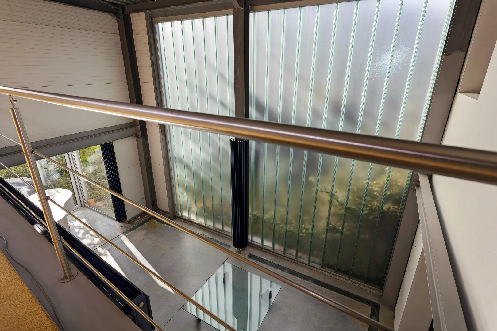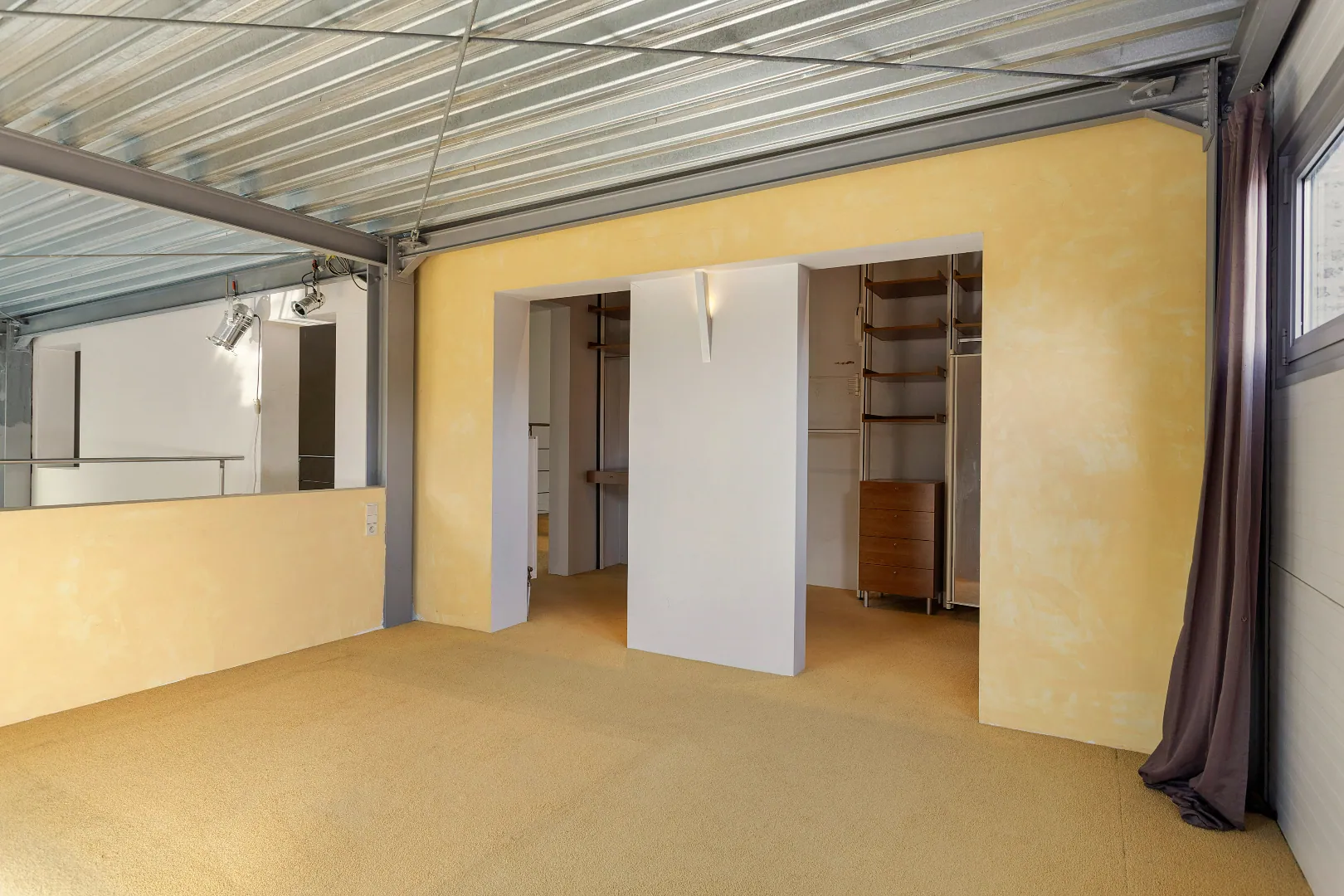 Wegens de passie voor zijn wagens, heeft de vorige eigenaar de garage een centrale plaats gegeven en vormen grote glazen schuifdeuren de enige afscheiding.