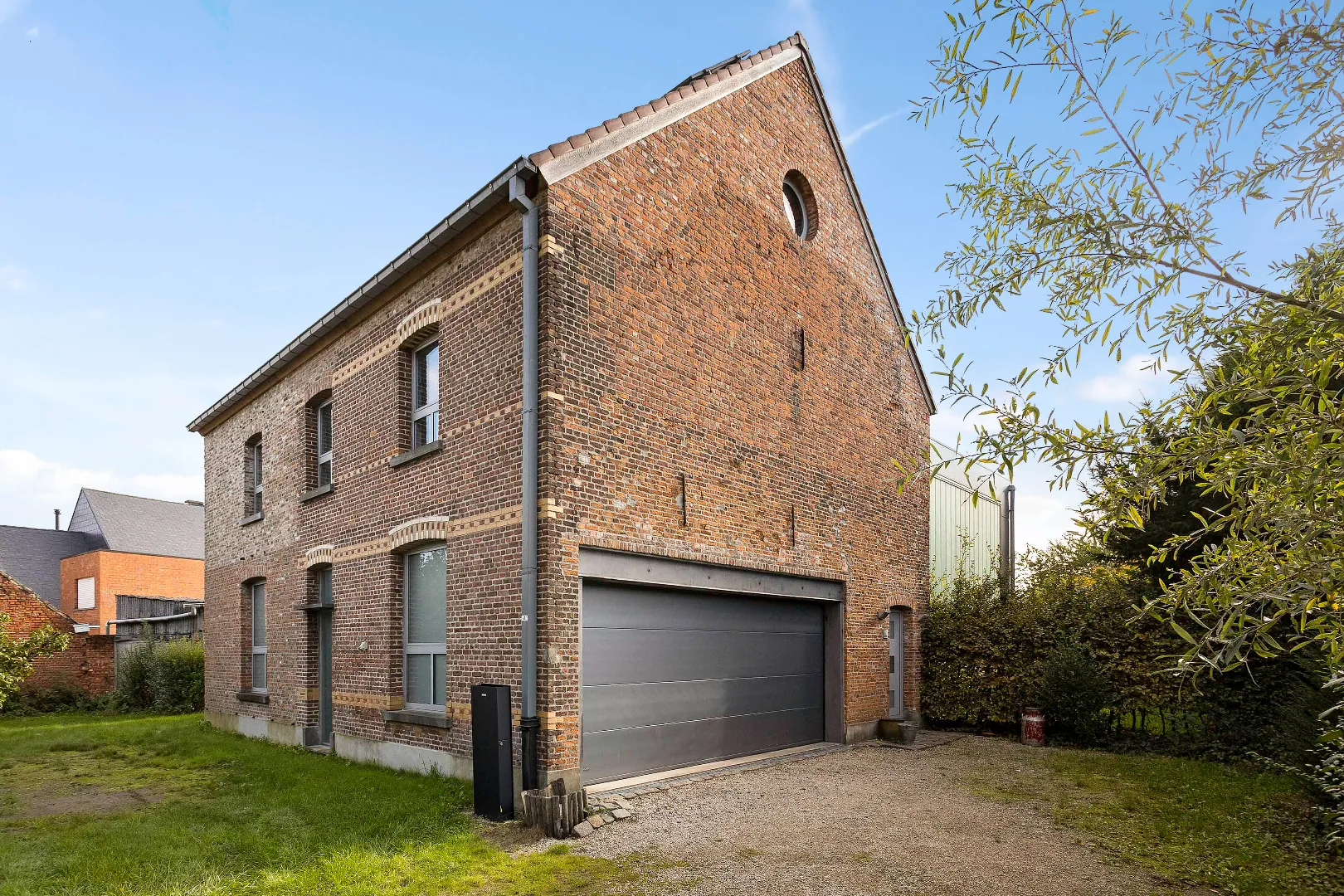 Het oudere gedeelte aan de straatkant is grondig gerenoveerd waarbij gelijktijdig de gevel in ere hersteld werd.
