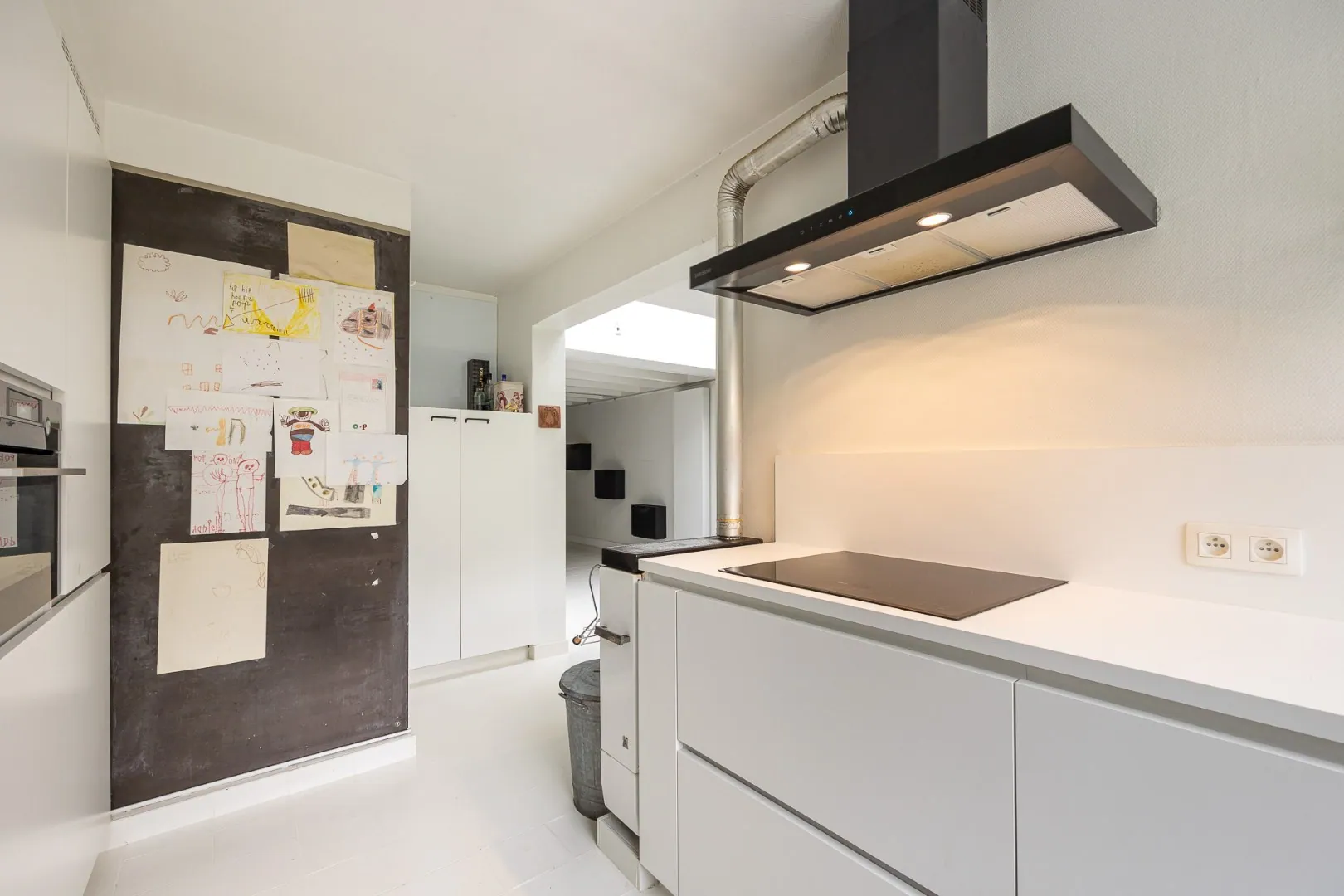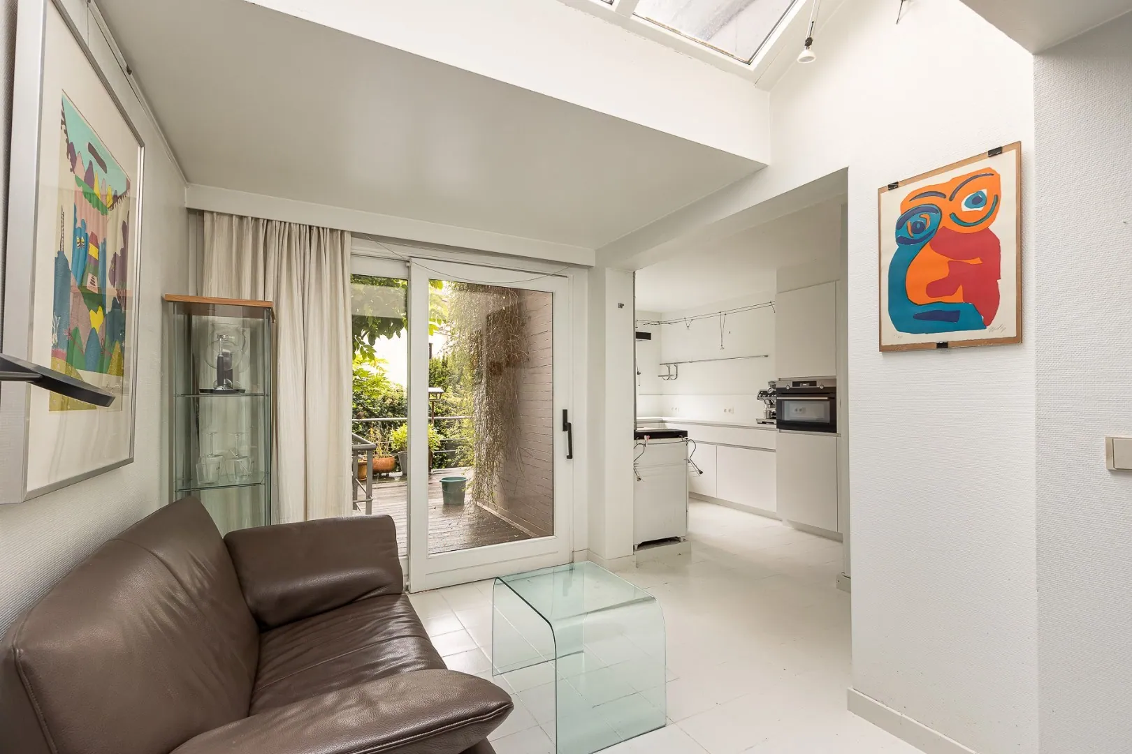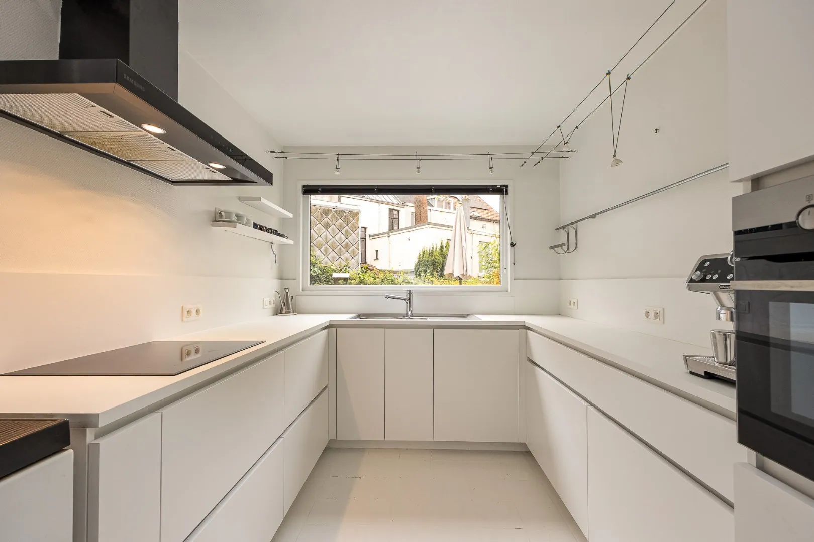 Op het gelijkvloers kom je binnen in de statige inkomhal met 4m hoog plafond en toegang tot multifunctionele ruimte die eventueel kan dienen als kantoor, kelder en garage. Op de eerste verdieping vinden we de open en volledig uitgeruste keuken en de eetkamer. Vanuit de eetkamer heb je zicht en toegang tot het zonnig stadsterras waar je op zomerse avonden heerlijk kunt genieten van een wijntje of een BBQ met vrienden.