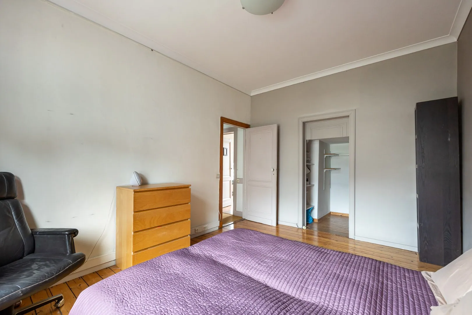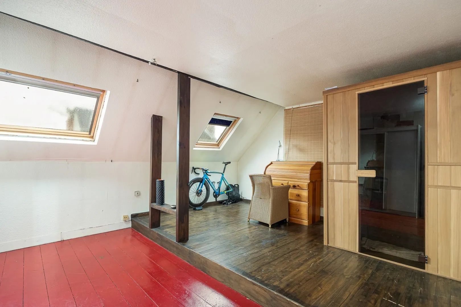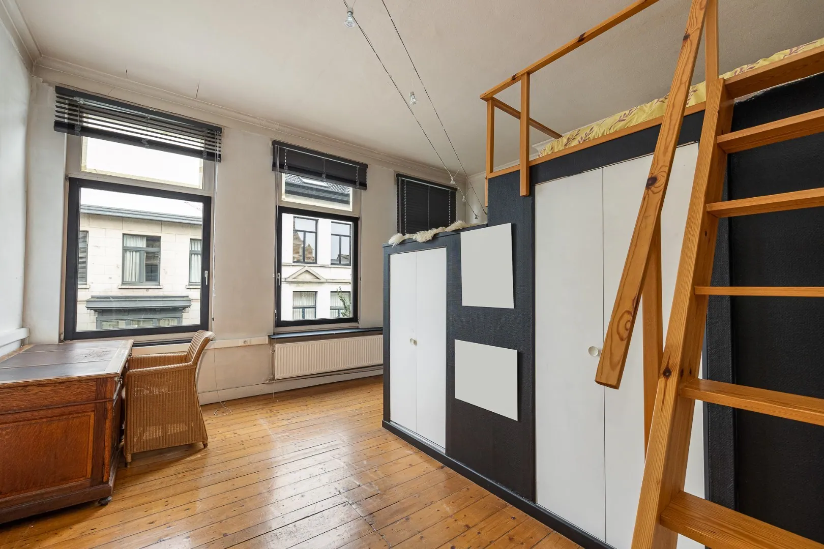 Nog een verdiep hoger vinden we de Master-Bedroom met dressing en een tweede slaapkamer. De originele plankenvloer werd hier bewaard. Vervolgens vinden we de badkamer met wastafel en inloopdouche. Op de zolderverdieping zijn nog twee volwaardige slaapkamers.
