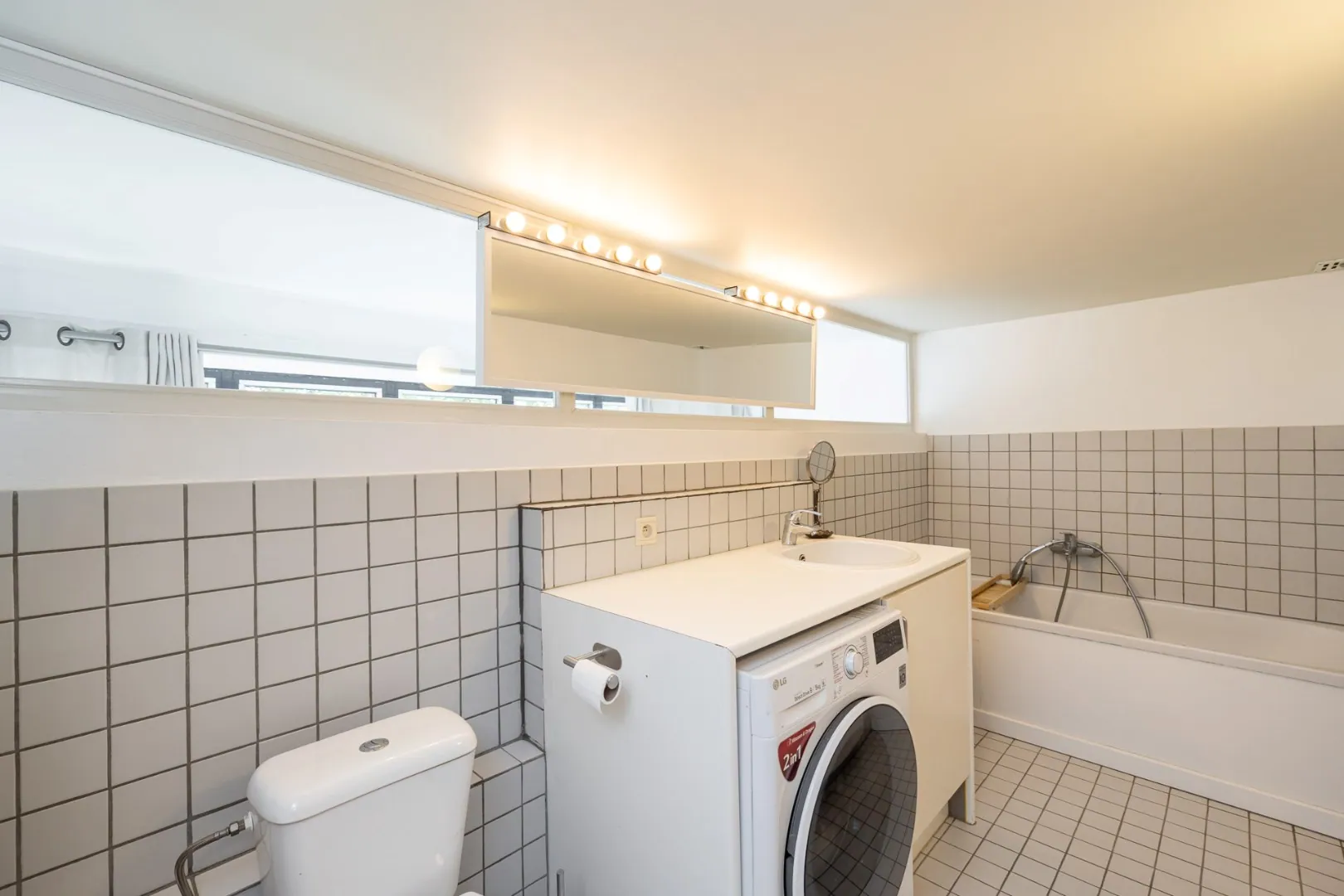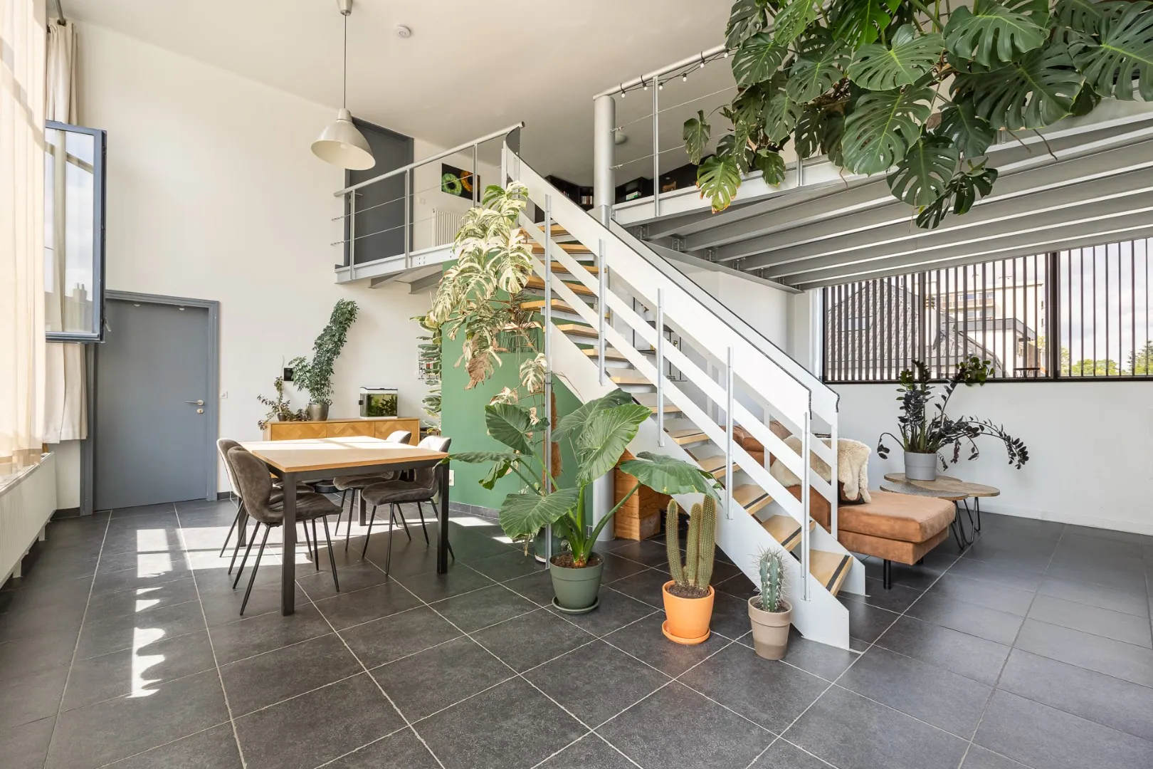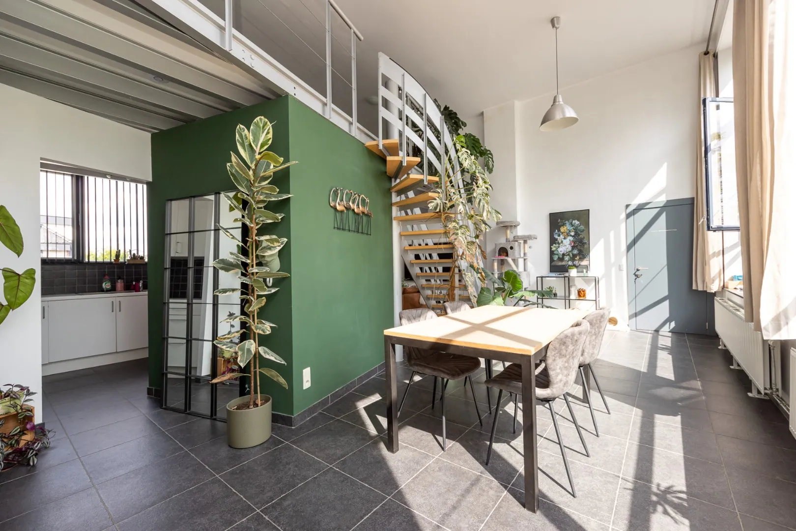Het appartement met loftgevoel beschikt over een gezellige leefruimte met veel lichtinval dankzij de grote raampartijen. De keuken is voorzien van alle nodige toestellen. Verder heeft het appartement twee slaapkamers, een ruime badkamer met een bad en plaats voor een wasmachine.
