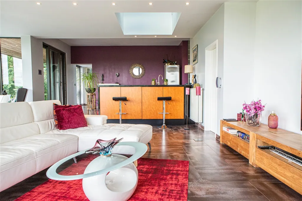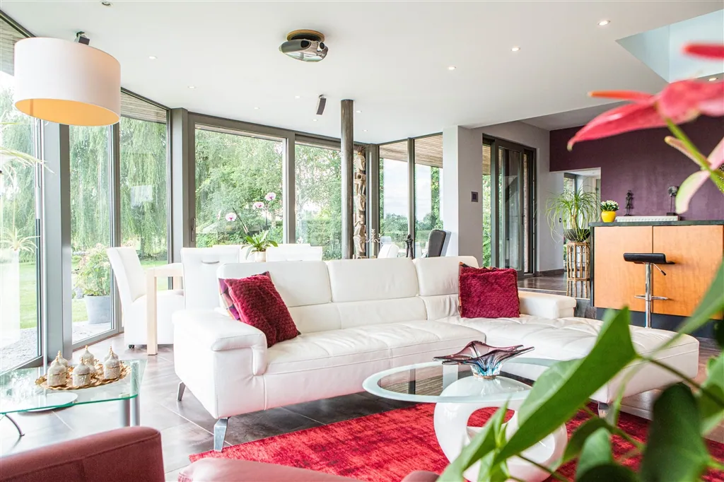 Deze exclusieve woning onderging sinds de jaren ’90 verschillende verfraaiingen, waarvan de laatste grote verbouwing dateert van 2007. Dankzij de leefruimte met grote glaspartijen, bent u hier winter en zomer dicht bij de natuur.
