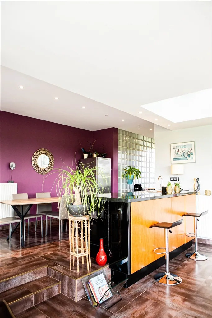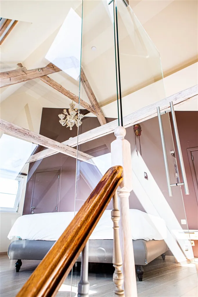 Verder beschikt deze woning over o.a. 3 ruime slaapkamers, waarvan 1 “mini loft “ met badkamer en dressing, een ruime badkamer met ligbad en douche, bureau, leefkeuken.