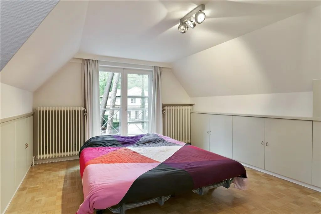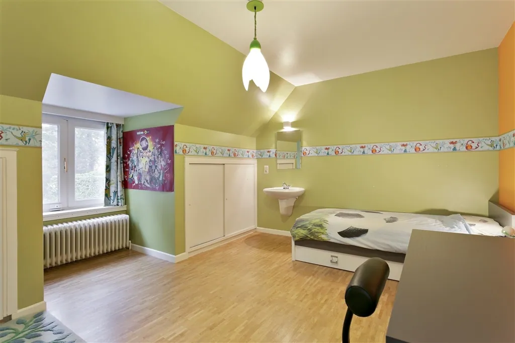 Deze gerenoveerde en geïsoleerde villa met 4 slaapkamers en 2 badkamers, maakt meteen een goede indruk op de bezoekers. De voormalige notariswoning ligt verscholen in de bossen. Ze kreeg al verscheidene updates en werd met vergunning verbouwd. De welhaast ideale verhoudingen van het terrein - 30m breed en 75m diep – maken dat het perceel alle verwachtingen inlost. Charmante en praktische elementen, worden al van aan de oprijlaan duidelijk. Achter de afstandsbediende toegangspoort en taxushagen, is er plaats voor 8 auto’s. De ronde erker verbergt een ruime bureelruimte, met onbelemmerd zicht op de grote voortuin. Achteraan de woning, geven grote raampartijen zicht op terrassen en een diepe tuin. Opvallend zijn ook de vele dakkapellen en sierlijke balkons, grotendeels voorzien van nieuwe dakbekleding. De eigenaars lieten parketvloeren plus trapbekleding afschuren en vernissen. In 2010 lieten ze super-isolerende beglazing plaatsen en in 2013 de spouwmuren na-isoleren, met 6cm minerale wol. Wie de isolatie nog wil verbeteren, kan snel en goedkoop winst boeken, door de kruipkelder te laten isoleren met een dikke laag naadloos gespoten PUR-isolatieschuim. Keerbergen vormt qua mobiliteit geen homogeen gebied. Het is van in de Grote Paallaan slechts 10,6 km rijden tot aan het station van Mechelen en 4,5 km tot het centrum van Bonheiden. Wie geleidelijk de keuken, badkamer en technieken een update geeft, kan hier naar eigen smaak en inzicht, een comfortabele thuis creëren.