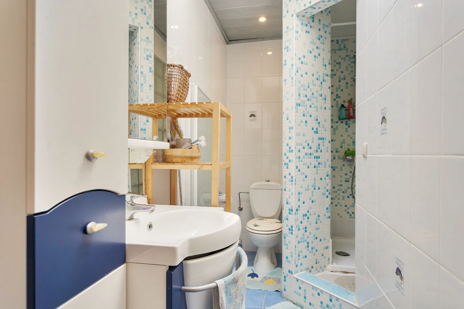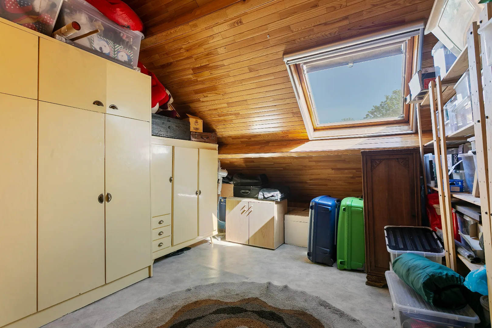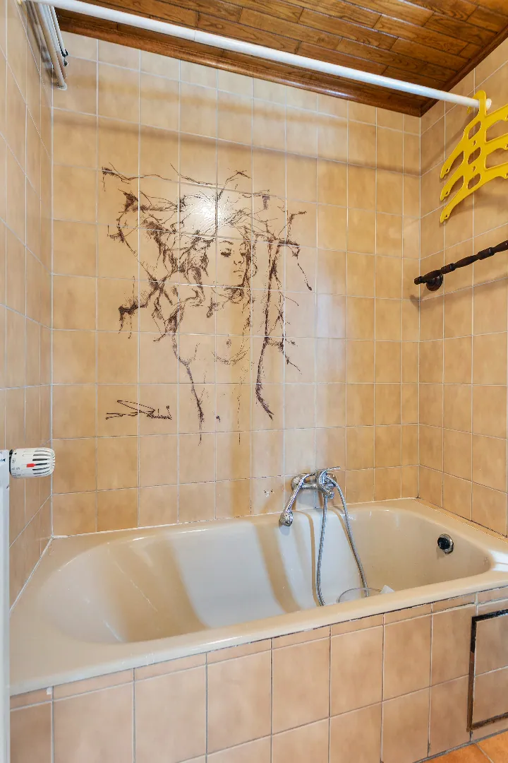 Op de eerste verdieping vind je twee slaapkamers en een tweede badkamer voorzien van douche, wastafel en tweede toilet. Op de zolderverdieping is een derde slaapkamer voorzien.