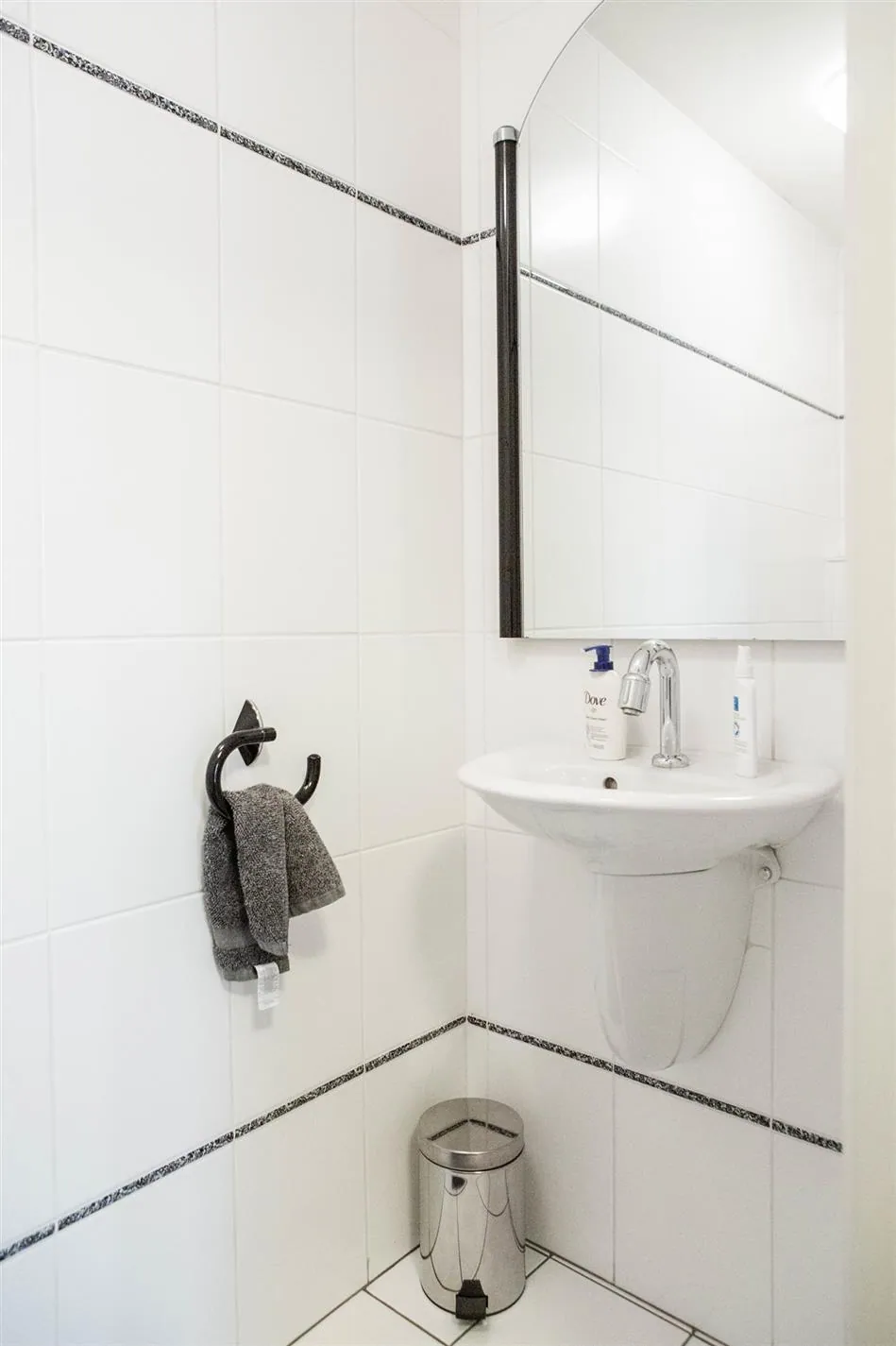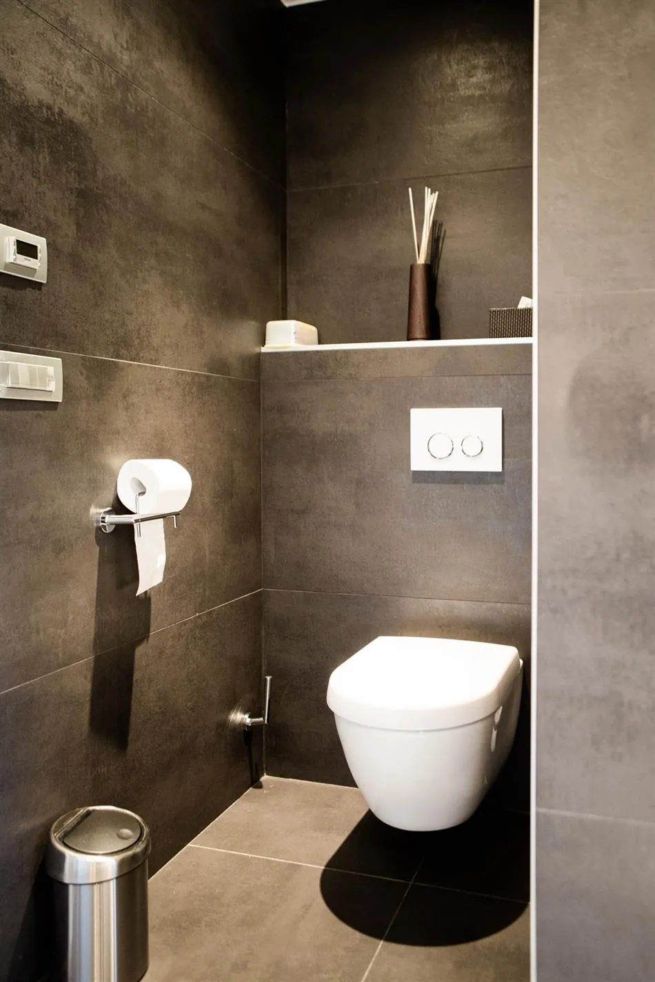 Deze ruimte is ideaal voor een praktijk- of handelsruimte, kan gedeeltelijk worden omgevormd tot extra garage en beschikt momenteel over een afzonderlijke ingang, twee gastentoiletten, berging, traphal en twee ruime burelen op de eerste verdieping.
