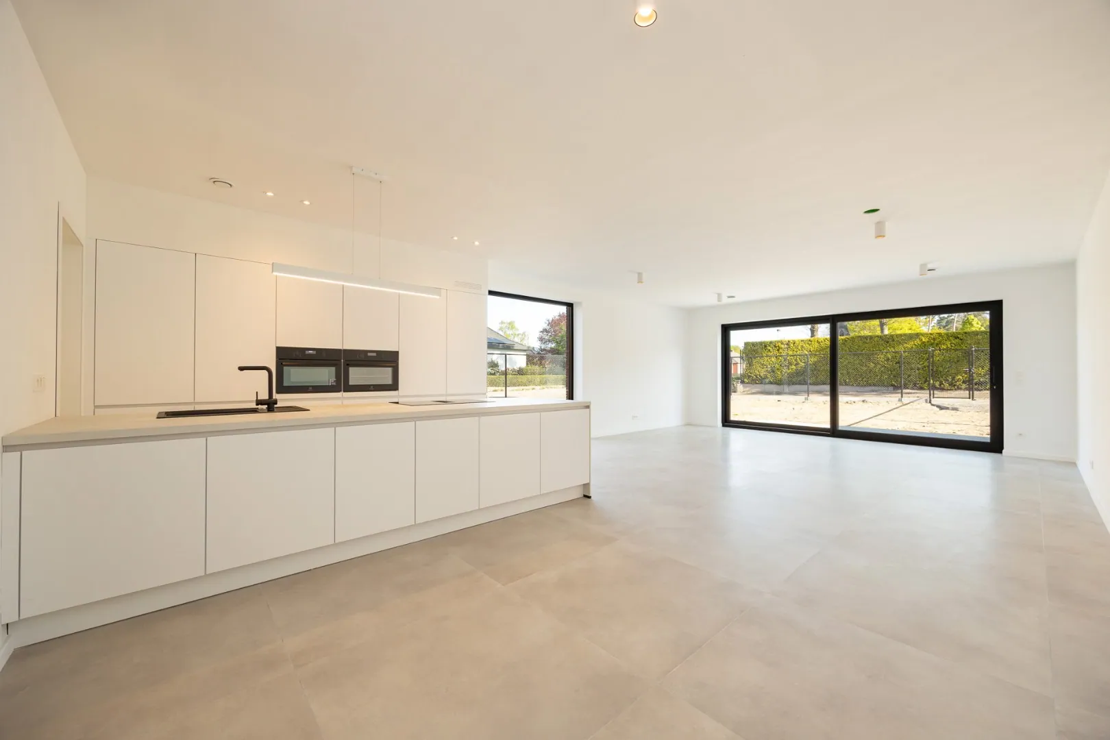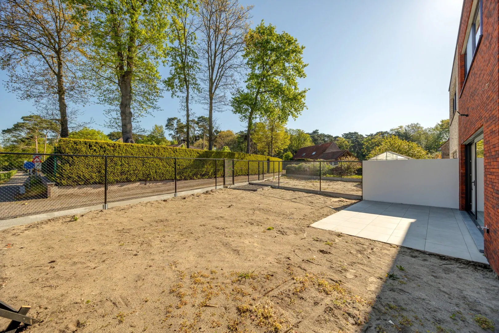 De woning wordt opgeleverd met onder andere schilderklare muren (primer), verlichtingsarmaturen, aangelegde oprit, terras en een volledig omheind perceel met fietsenpoort.