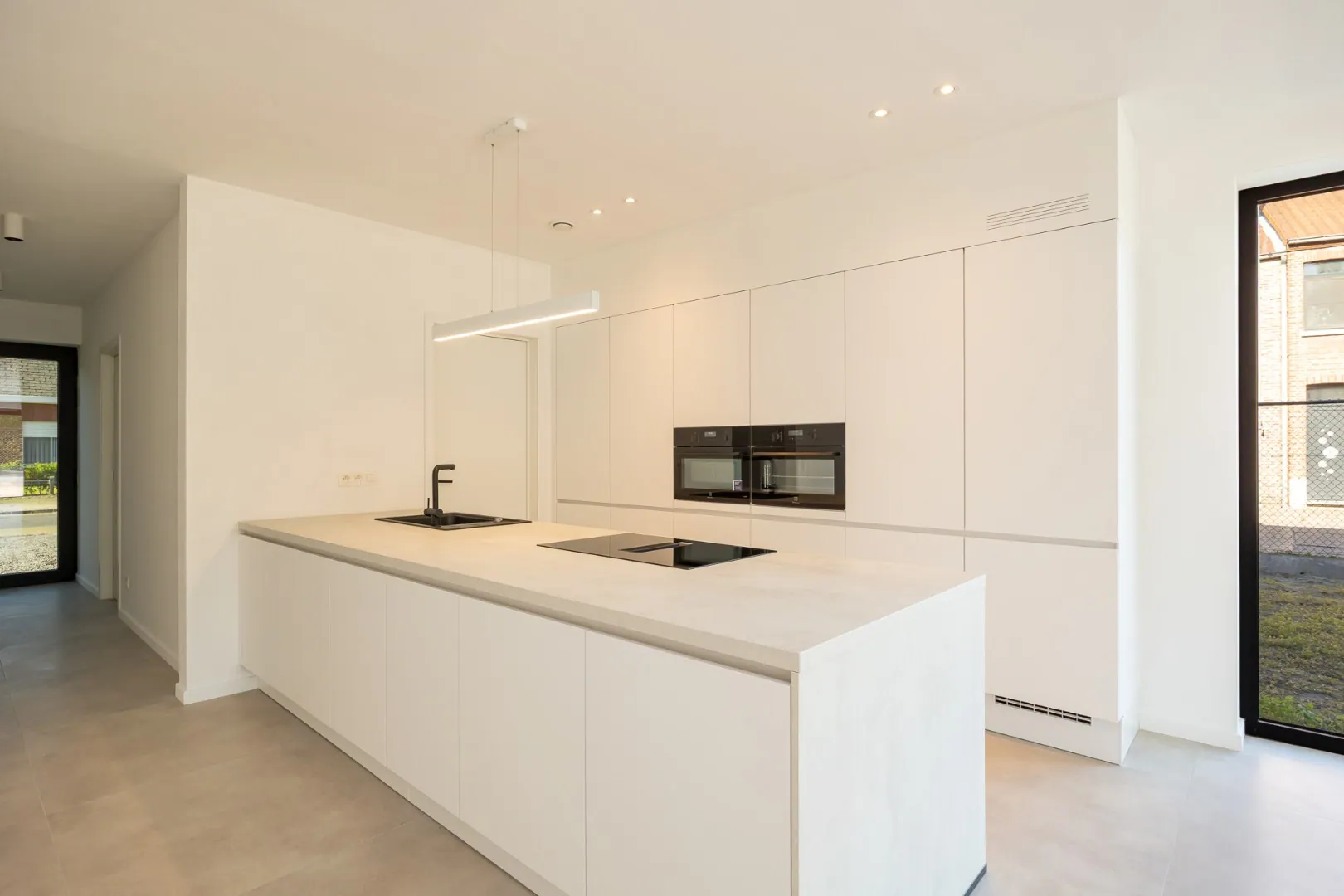 Bij het betreden van de woning wordt u verwelkomd in een lichtrijke leefruimte die naadloos overgaat in de open keuken, een ideale plek voor koken en gezellig samenzijn. Op het gelijkvloers bevindt zich daarnaast een praktische extra ruimte, geschikt als berging of bureau.