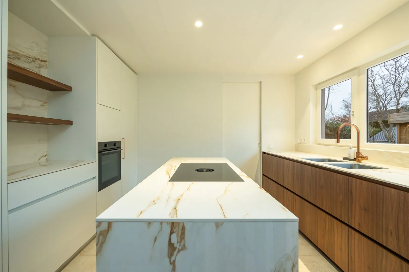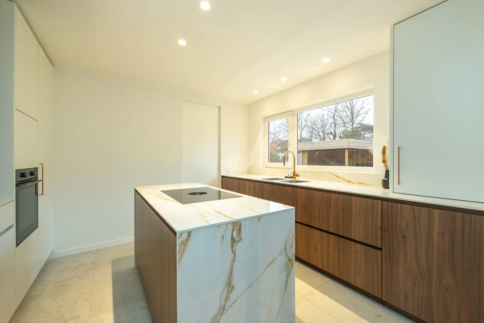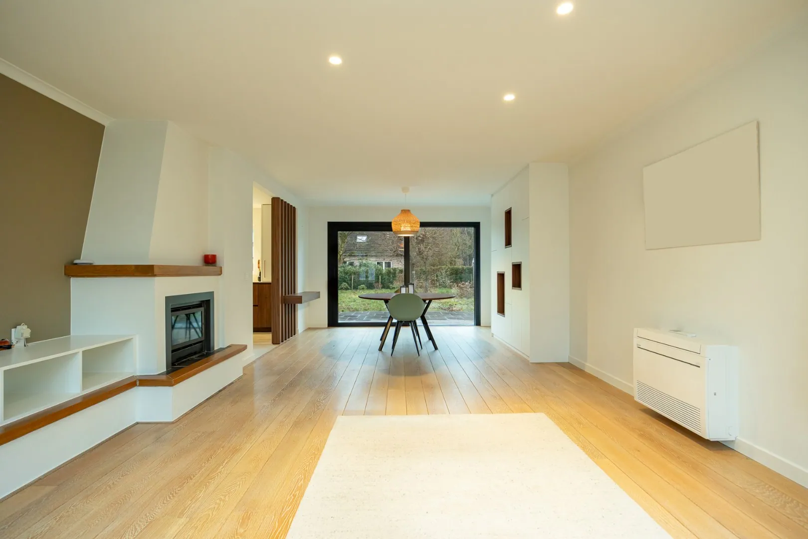 Bij het betreden van de woning wordt u verwelkomd in een ruime en lichtrijke leefruimte, waar een verfijnde parketvloer en een harmonieuze indeling zorgen voor een warme, stijlvolle sfeer. De moderne, volledig uitgeruste keuken sluit naadloos aan op de leefruimte en creëert een open woonbeleving die uitnodigt tot gezellig samenzijn.