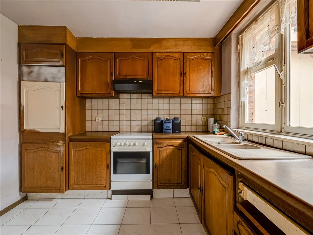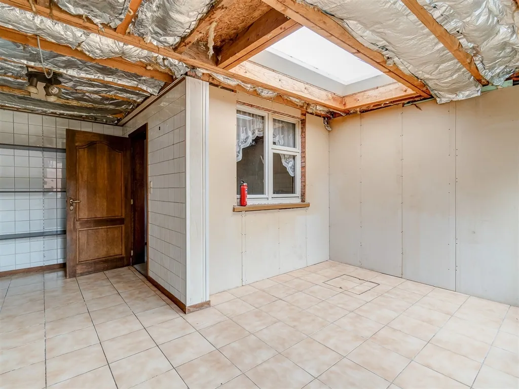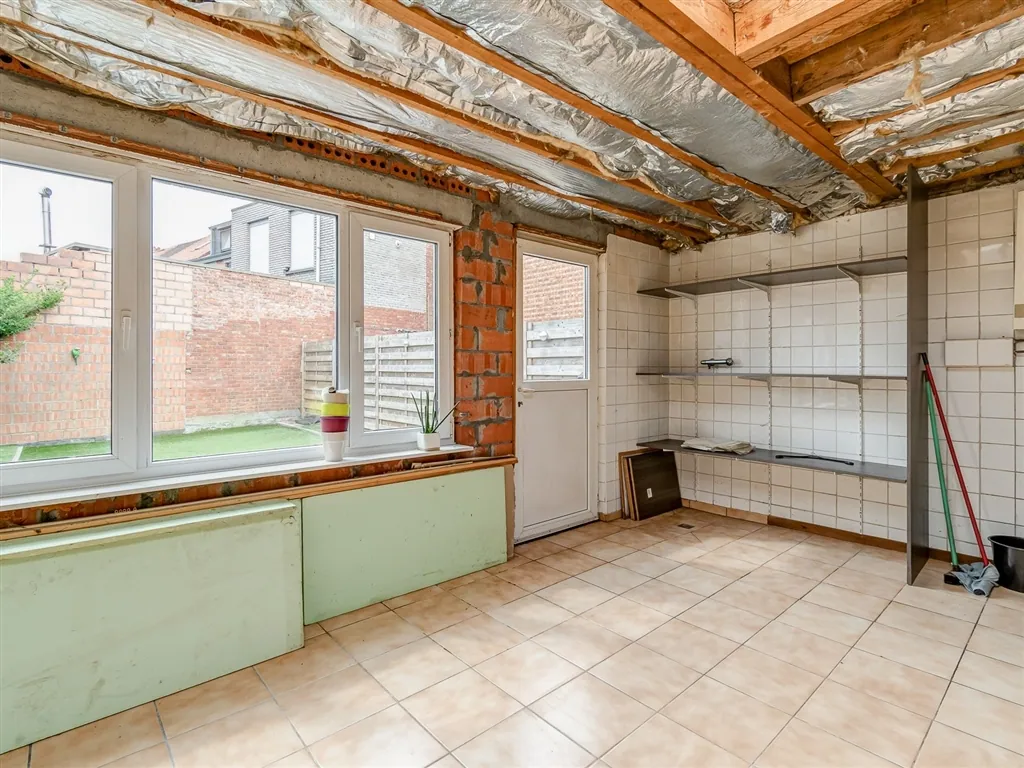 Deze te renoveren woning ligt aan het uiteinde van de stadsrand. Wie in aanmerking komt, kan genieten van een vermindering van € 5.600 op de reeds verlaagde registratierechten. Dit maakt deze woning zeer interessant voor wie hier zelf komt wonen, en de handen uit de mouwen kan steken. De woning is degelijk, doch volledig te vernieuwen. Het dak werd een tijdje geleden al aangepakt, en beschikt reeds over een onderdak en een nieuw velux-raam. Hier kan men eenvoudig een extra kamer creëren, boven de 2 bestaande slaapkamers. Het gelijkvloers is ruim, hier kan men de ruimte herverdelen naar believen. De elektrische installatie dient niet volledig vernieuwd te worden, enkele nieuwe raamkaders in pvc bevinden zich in de woning. De tuin is ingesloten en goed geörienteerd. De straat is hier altijd verkeersluw, wat ze sowieso kindvriendelijk maakt. Boek snel een afspraak en overtuig uzelf van de mogelijkheden.