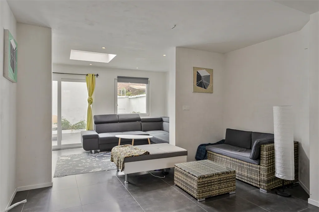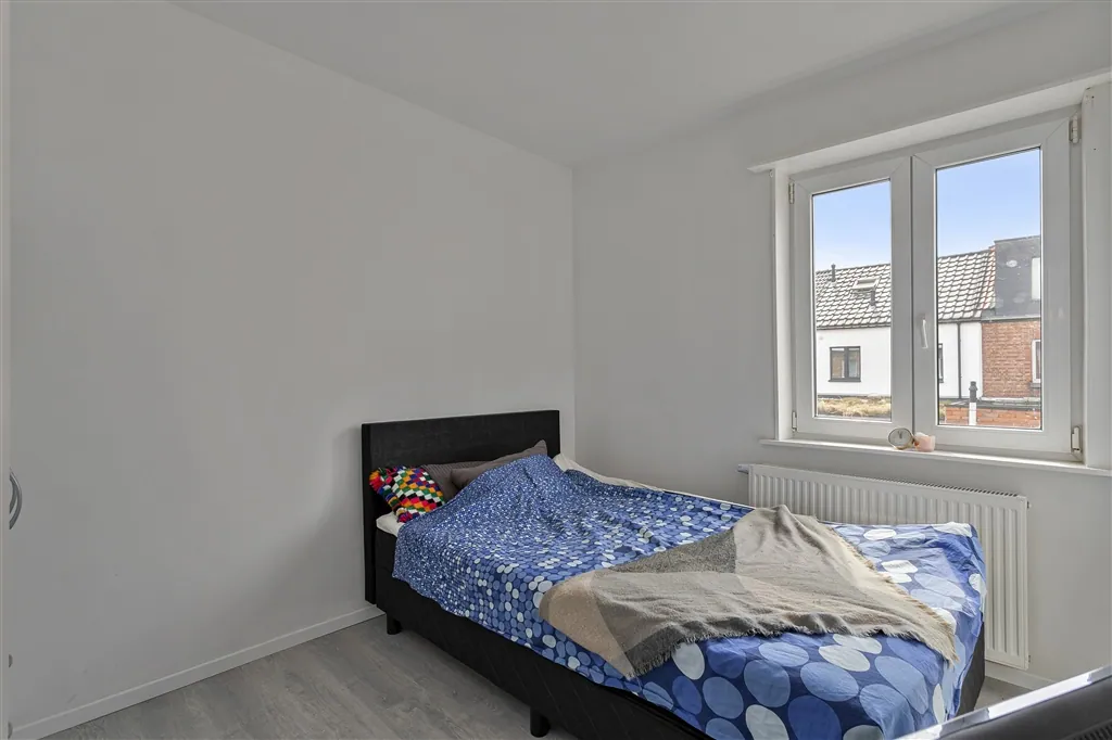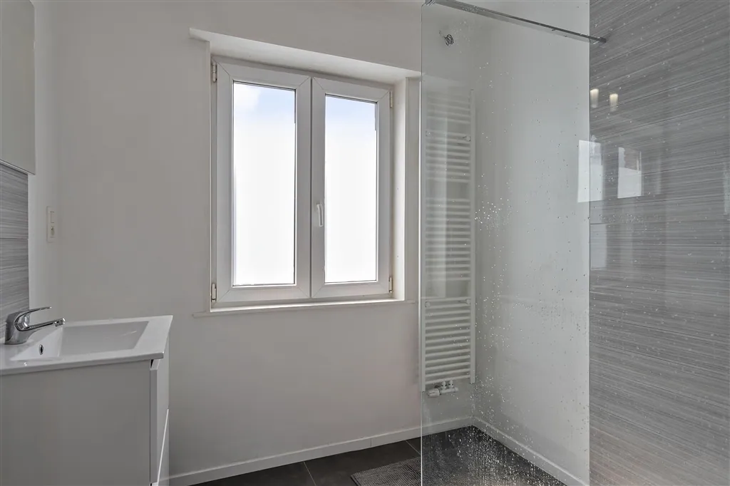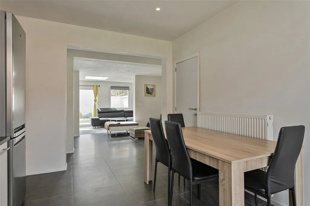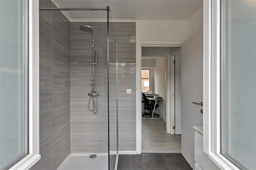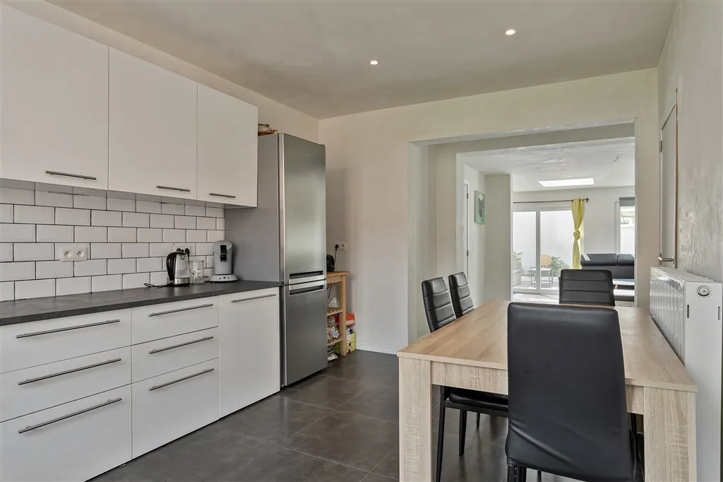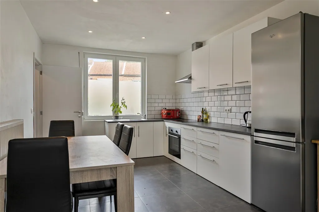 In dit huis werd alles in 2018 en 2019 gerenoveerd door professionelen, gaande van vloeren tot pleisterwerk, keuken en badkamer. De gekozen materialen ogen aantrekkelijk voor jonge koppels, die geen boodschap hebben aan renovatiewerken. Op het gelijkvloers is de structuur volledig opengewerkt, met zicht op de zuidwestelijk georiënteerde tuin met terras. De open, L-vormige eetkeuken nodigt uit met een vrij volledig programma aan apparaten, waaronder ook een inductiekookplaat en ingebouwde vaatwasser. De witte fronten contrasteren mooi bij de donkere tegels met groot formaat (60cm x 60cm). In het plafond zijn op het gelijkvloers inbouwspots voorzien en in andere vertrekken veelal gloednieuwe led-plafondarmaturen. Ook nieuw, zijn de witte binnendeuren en de ingerichte badkamer, inclusief de volgens de regels van de kunst gebouwde inloopdouche en het lavabomeubel. Qua technieken werd gekozen voor een nieuwe Ecotec-ketel van Vaillant, met condensatietechnologie. Qua isolatie, werd in het schuin dak 12cm minerale wol aangebracht en ook het plat dak geïsoleerd met dit materiaal. De epc-score ligt met 203 kilowatt/m², beter dan het gemiddelde voor rijwoningen in Vlaanderen. De officiële Mobiscore (https://mobiscore.omgeving.vlaanderen.be/)voor dit huis, is met 9,3 op 10 bijna perfect. E19, Colruyt en Liersesteenweg liggen wel vlakbij, maar er rijdt geen doorgaand verkeer door de Samberstraat.