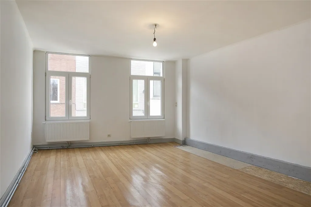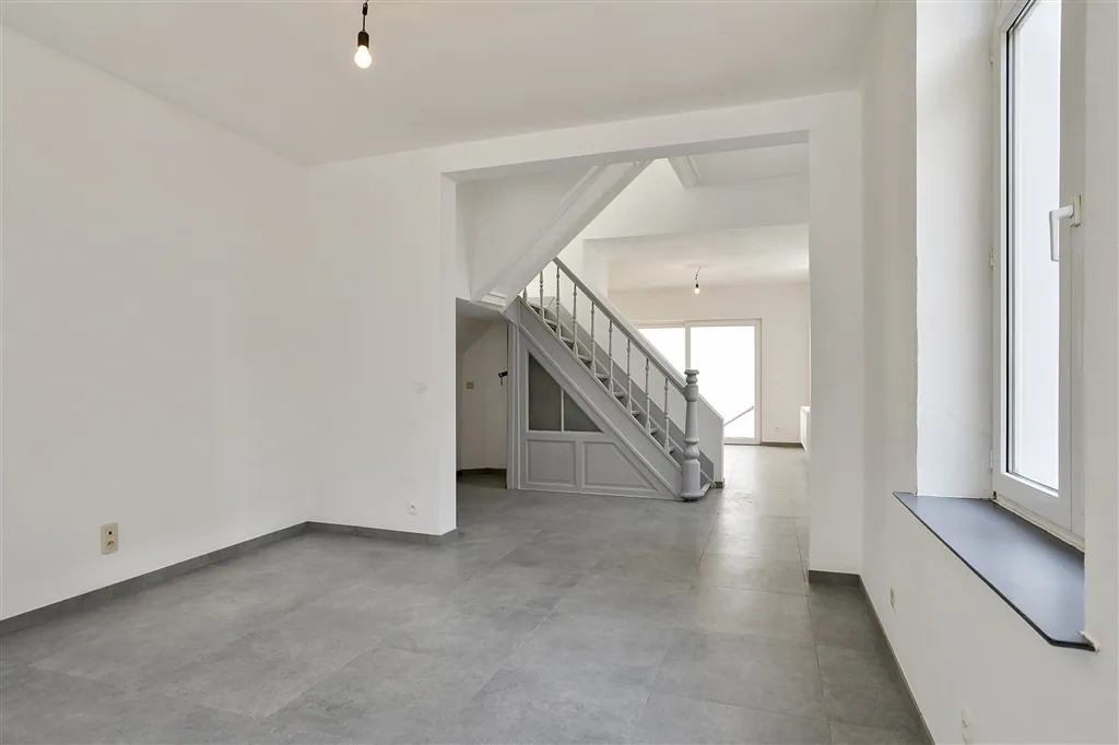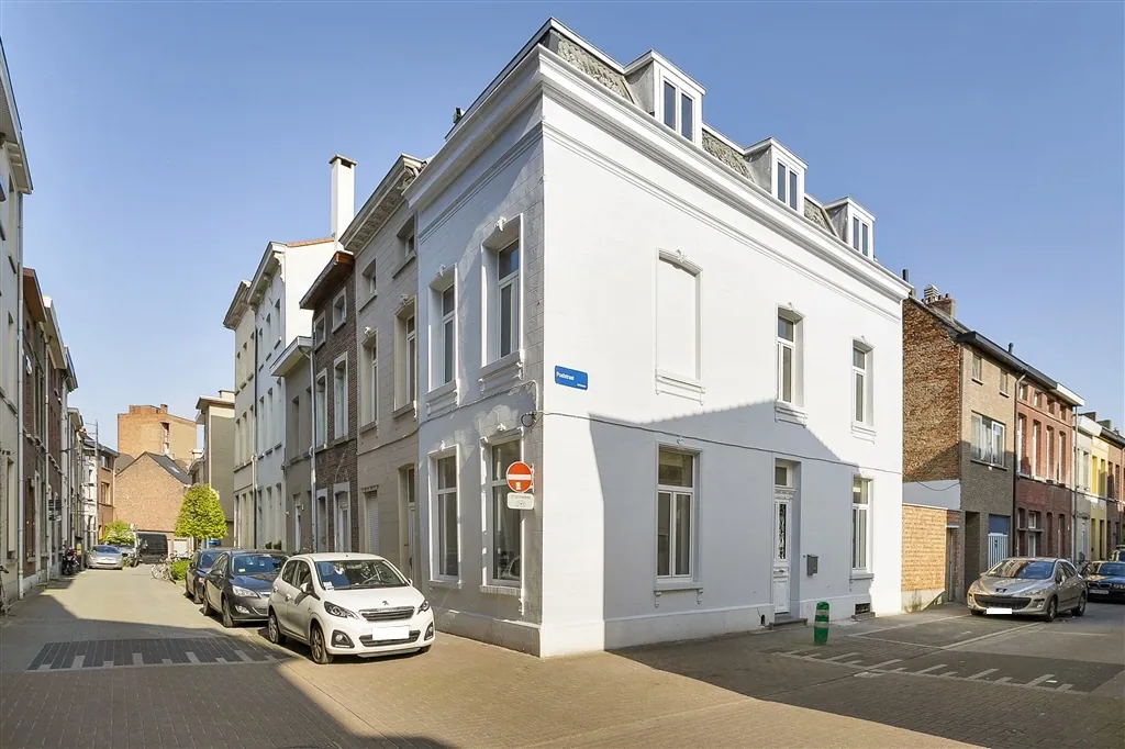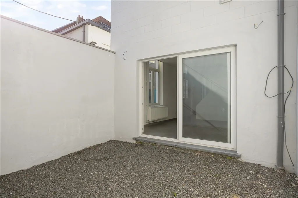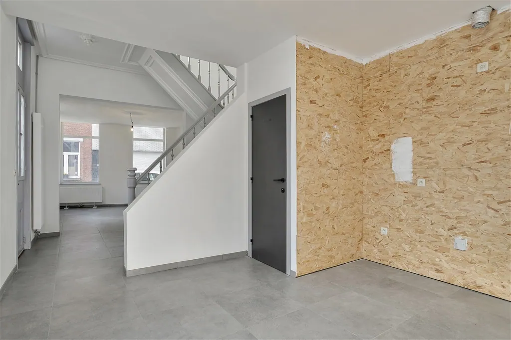 Technische verrassingen mag je van deze lichtrijke woning met groot volume en hoge plafonds, niet verwachten. De technische installaties van elektriciteit en verwarming, werden immers net volledig vernieuwd en gekeurd. De condensatieketel op gas dateert van 2018 en de elektriciteit werd volledig conform de reglementering bevonden. De keuken is nog niet geïnstalleerd, maar alle leidingen en afvoeren zitten wel klaar op de juiste plaats. Vanuit de open keuken en living met nieuwe grote grijze tegels, zie je via een kamerbreed schuifraam uit op de buitenruimte, die toch vier bij vier meter meet, wat voor de normen van de binnenstad toch al groot genoeg mag worden genoemd. Buiten het schuifraam, spotten we in de living nog vier grote ramen en een handige ruimte met hangtoilet. Wie binnenkomt langs de authentieke houten voordeur, krijgt meteen een mooie plafondmoulure te zien en een even authentieke, maar toch stabiele trap. De beide bovenverdiepingen onderscheiden zich op drie fronten: door hun zeer stabiele tussenvloeren, door de gloednieuwe ingerichte badkamer en door de oversize afmetingen van zowel de badkamer als de drie slaapkamers. Slaapkamers die overigens bijna overal genieten van volwaardige plafondhoogte. Zelf nog grote klussen uitvoeren, is hier dus echt niet nodig. Zelfs het pleisterwerk is bijgewerkt en er is net geschilderd. Pluspunten aan de ligging vormen vooral de nabijheid op wandelafstand van de Karmelietentuin en het stadscentrum. Ideaal voor een groot gezin.