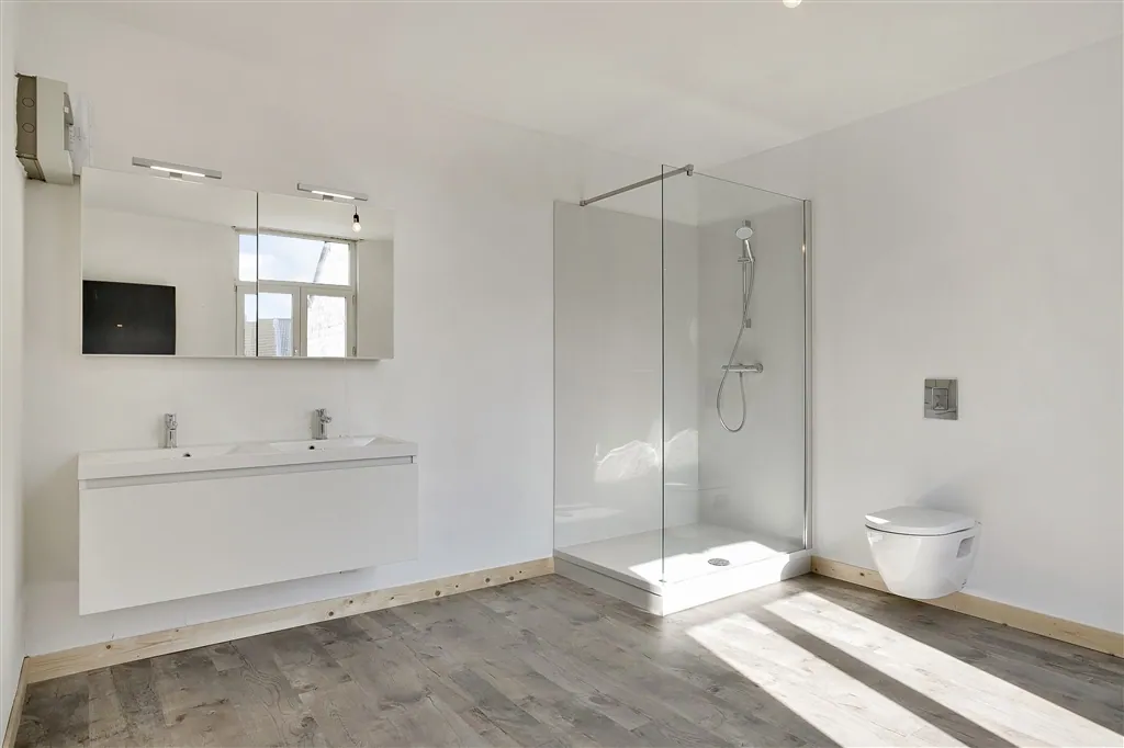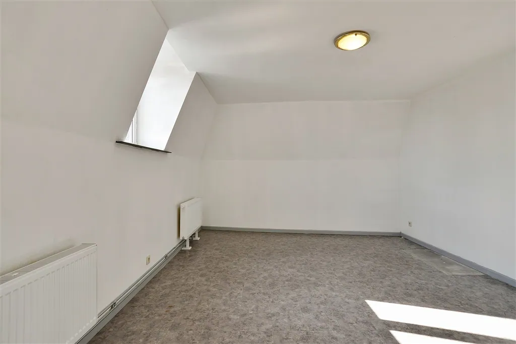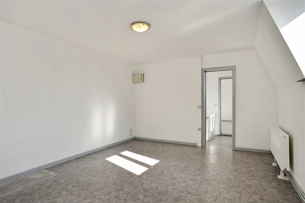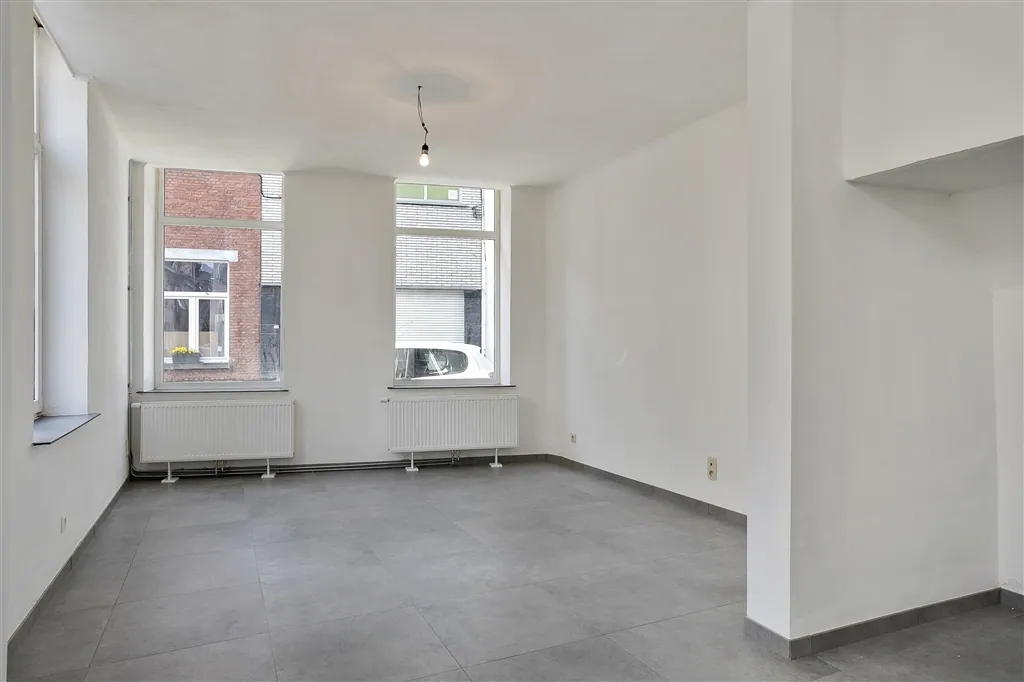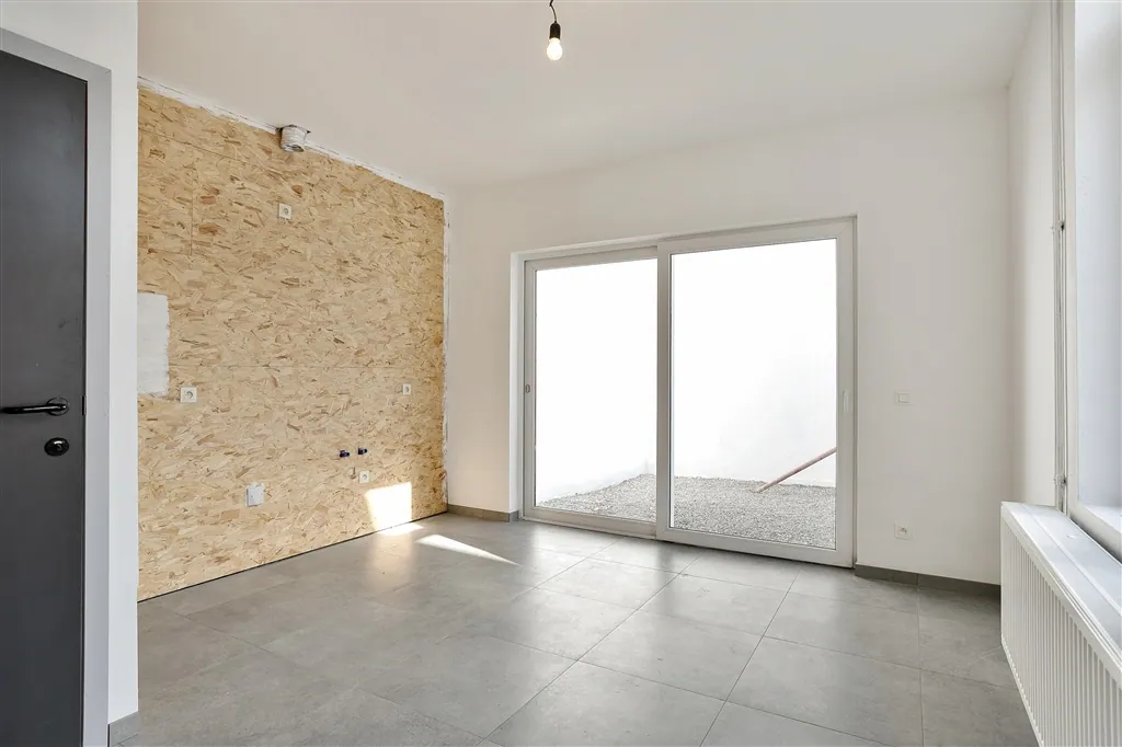 Technische verrassingen mag je van deze lichtrijke woning met groot volume en hoge plafonds, niet verwachten. De technische installaties van elektriciteit en verwarming, werden immers net volledig vernieuwd en gekeurd. De condensatieketel op gas dateert van 2018 en de elektriciteit werd volledig conform de reglementering bevonden. De keuken is nog niet geïnstalleerd, maar alle leidingen en afvoeren zitten wel klaar op de juiste plaats. Vanuit de open keuken en living met nieuwe grote grijze tegels, zie je via een kamerbreed schuifraam uit op de buitenruimte, die toch vier bij vier meter meet, wat voor de normen van de binnenstad toch al groot genoeg mag worden genoemd. Buiten het schuifraam, spotten we in de living nog vier grote ramen en een handige ruimte met hangtoilet. Wie binnenkomt langs de authentieke houten voordeur, krijgt meteen een mooie plafondmoulure te zien en een even authentieke, maar toch stabiele trap. De beide bovenverdiepingen onderscheiden zich op drie fronten: door hun zeer stabiele tussenvloeren, door de gloednieuwe ingerichte badkamer en door de oversize afmetingen van zowel de badkamer als de drie slaapkamers. Slaapkamers die overigens bijna overal genieten van volwaardige plafondhoogte. Zelf nog grote klussen uitvoeren, is hier dus echt niet nodig. Zelfs het pleisterwerk is bijgewerkt en er is net geschilderd. Pluspunten aan de ligging vormen vooral de nabijheid op wandelafstand van de Karmelietentuin en het stadscentrum. Ideaal voor een groot gezin.