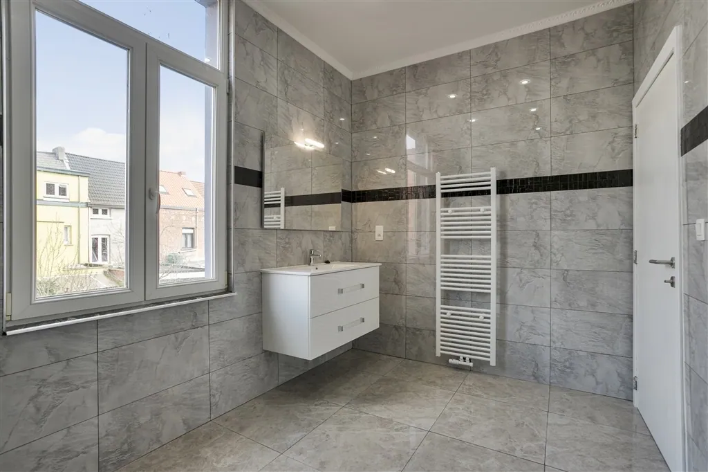 Pas gerenoveerd en instapklaar staat deze ruime rijwoning te wachten op een nieuwe eigenaar. Met een grote gratis gemeeschapsparking voor de deur, op wandelafstand van het station, zit u hier gebeiteld. Alle lokalen zijn groter dan normaal: toilet, wasplaats, leefruimte met open keuken, nachthall, slaapkamers, badkamer,etc. Onderhoudsvriendelijke materialen, ingebouwde led-spots en in de prijs voorziene plafondarmaturen, maken dat u hier maar minimale bedragen zult spenderen aan de inrichting, in vergelijking met de meeste instapklare panden. Zo heeft de eigenaar ook alle bepleisterde muren laten voorzien van een egale laag primer en twee lagen witte verf. In de ruime badkamer, valt naast de hang-wc zeker de inloopdouche met 4 sproeiers – inclusief regenfunctie - op. Terwijl boven nieuwe laminaatvloeren zijn gelegd in de slaapkamers, ligt beneden een trendy keramische vloer met parketuitzicht, die makkelijk te onderhouden valt. Een nieuwe Ecotec Plus condensatieketel op gas en een volledig goedgekeurde elektrische installatie, maakt dat u hier geen problemen dient te verwachten op dat vlak. Ook de wasplaats vooraan is net zoals de 4 kamers mooi afgewerkt. Ons oog valt daar overigens ook op het elektrisch bediende rolluik. De kelder met volledig gecementeerde wanden, bereikt u via een comfortabele betonnen trap. Vergewis u zelf van de bouwkwaliteit en check zeker de qua mobiliteit uitstekende ligging uit.