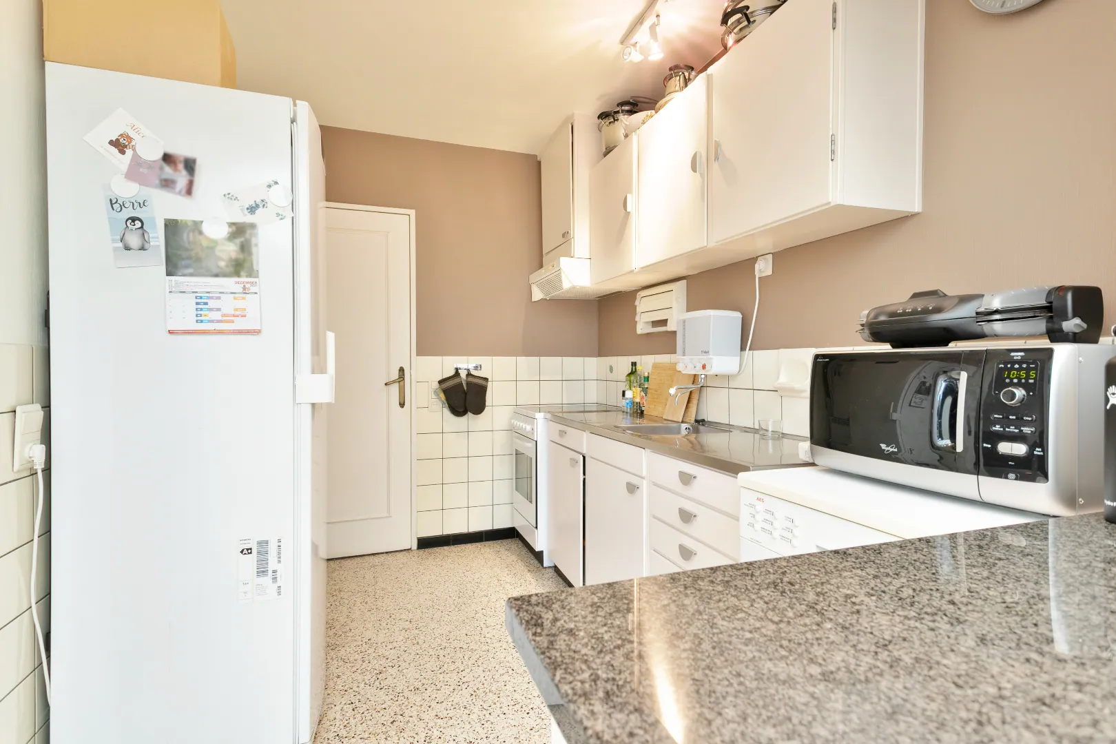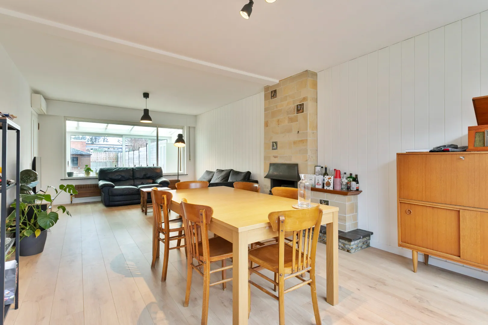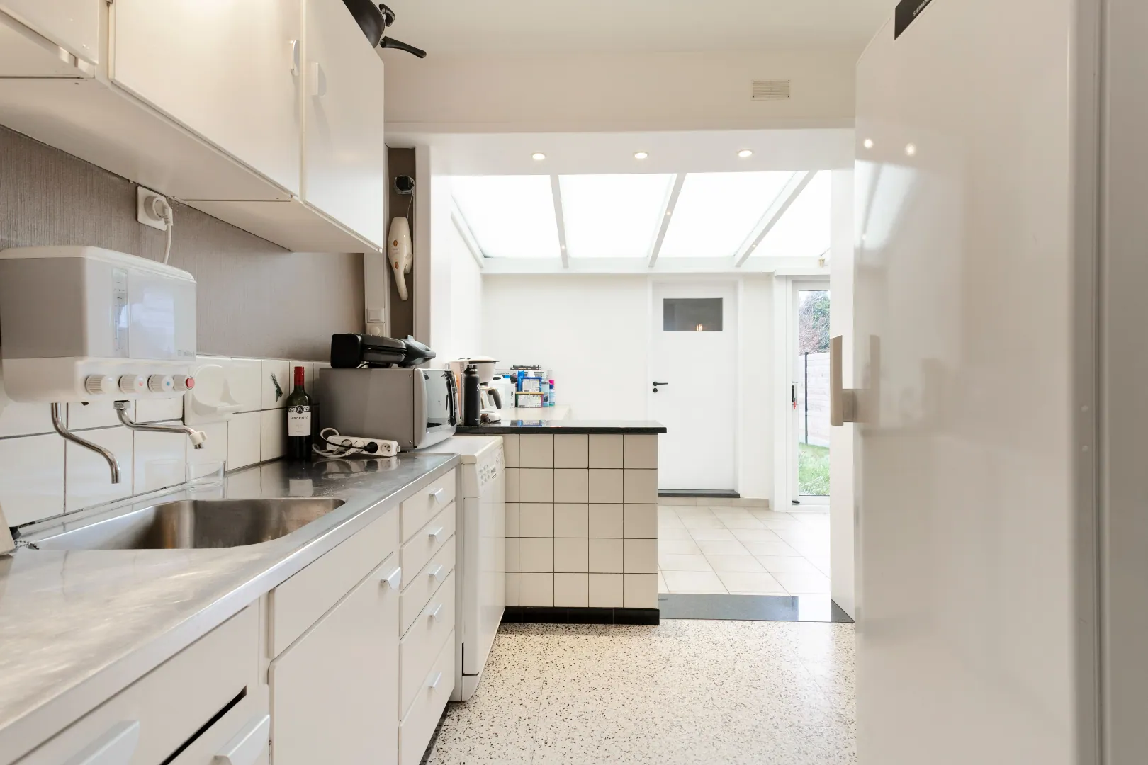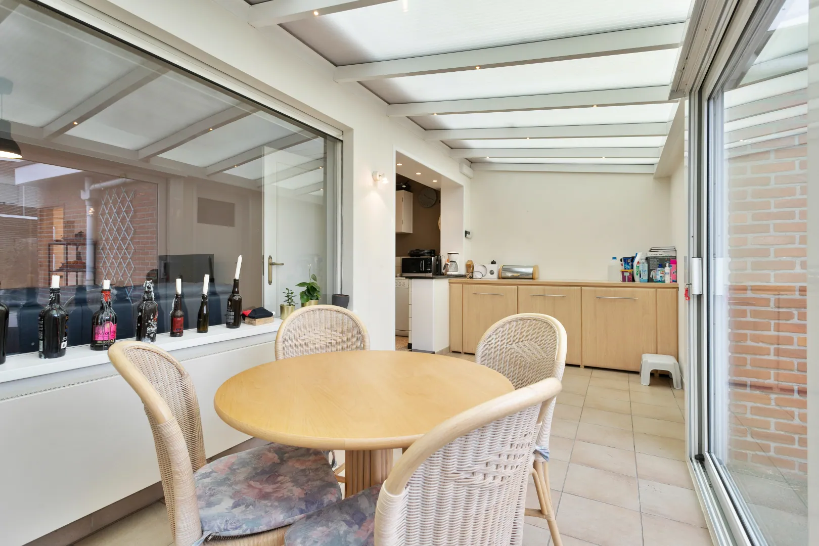 Deze ruime woning omvat een inkomhal met gastentoilet, ruime en lichtrijke leefruimte met aansluiting op de op te frissen keuken en veranda (met airco). Vanuit de veranda heb je toegang tot de zonnige ZO-georiënteerde tuin. Achteraan de woning is eveneens een berging.