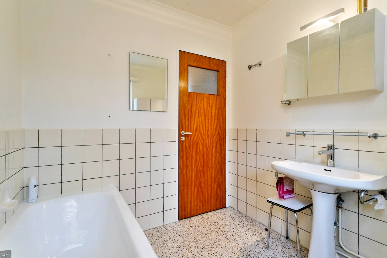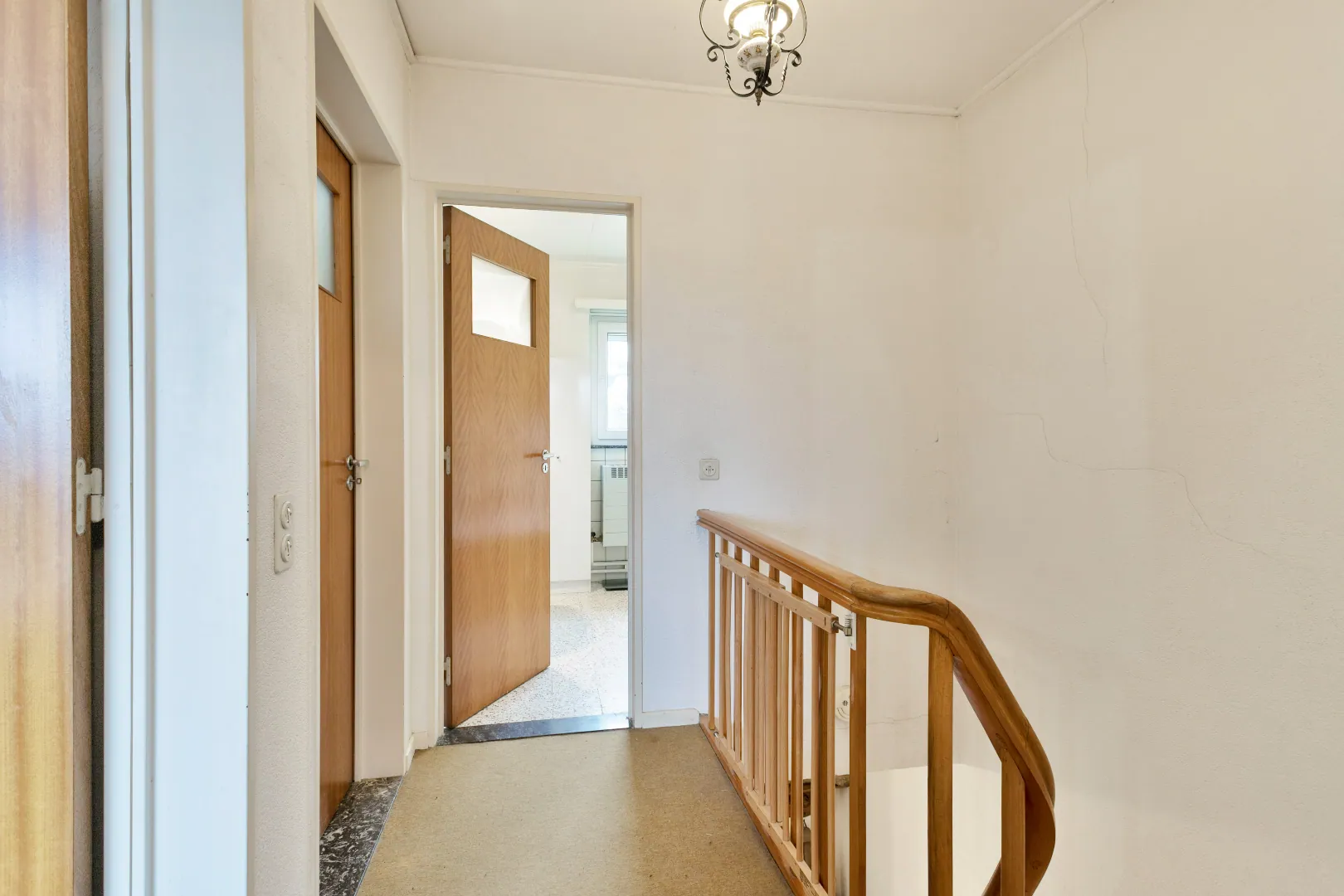 Op de eerste verdieping vind je 3 ruime slaapkamers en badkamer. De woning beschikt over een kelder en een privatieve garagebox.