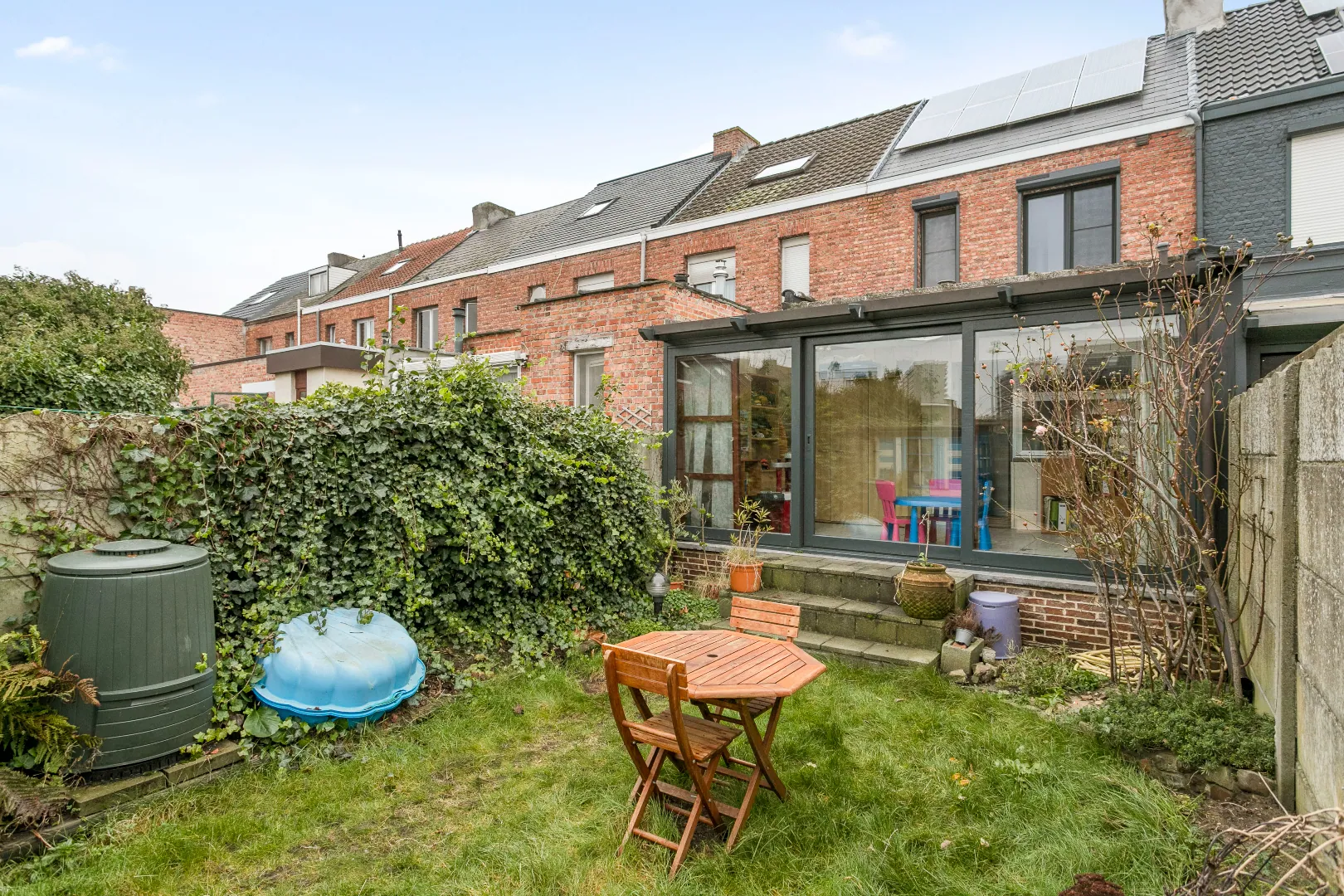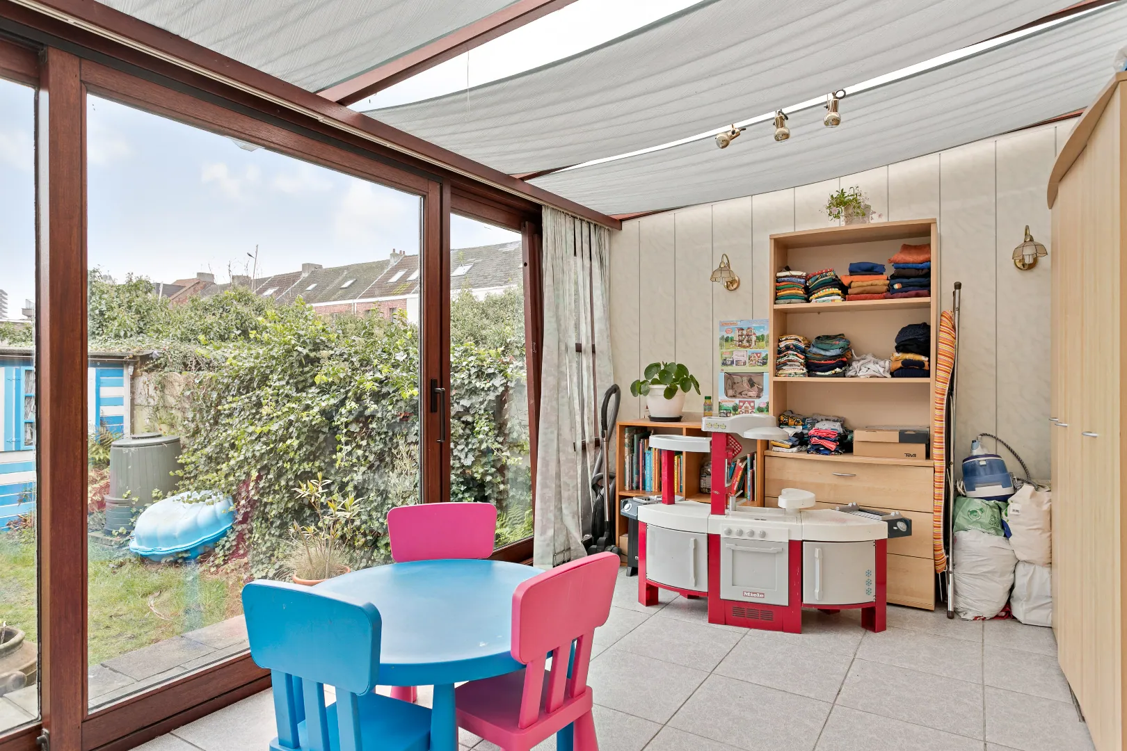 Deels gerenoveerde woning met 3 slaapkamers, 2 badkamers, zonnige tuin op bijzonder gunstige ligging.