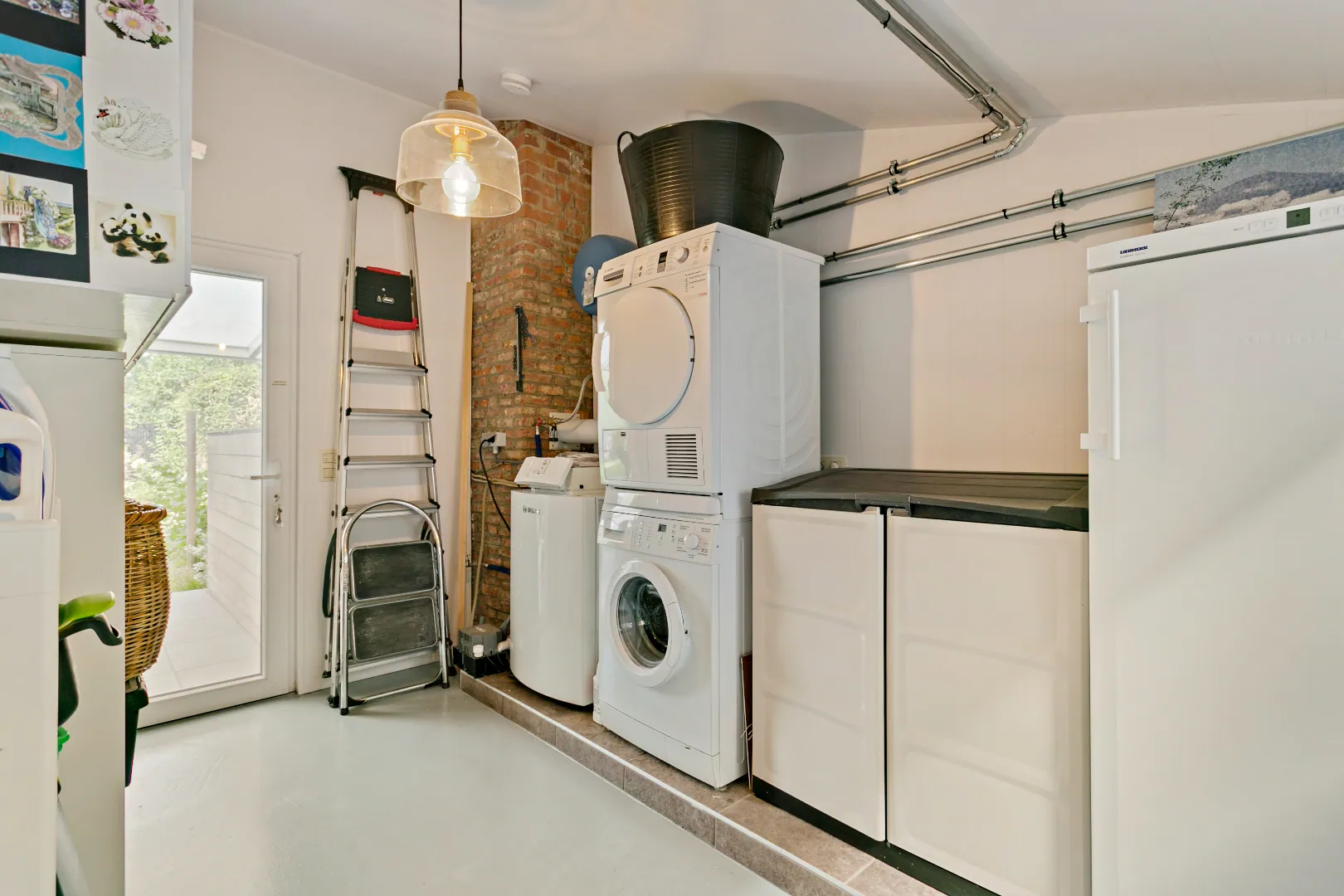 Op het gelijkvloers bevindt zich de inkomhal, open leef- en eetruimte met aansluitend een gerenoveerde keuken, achterliggende berging, wasplaats, badkamer en rustige en zonnige W-georiënteerde tuin.