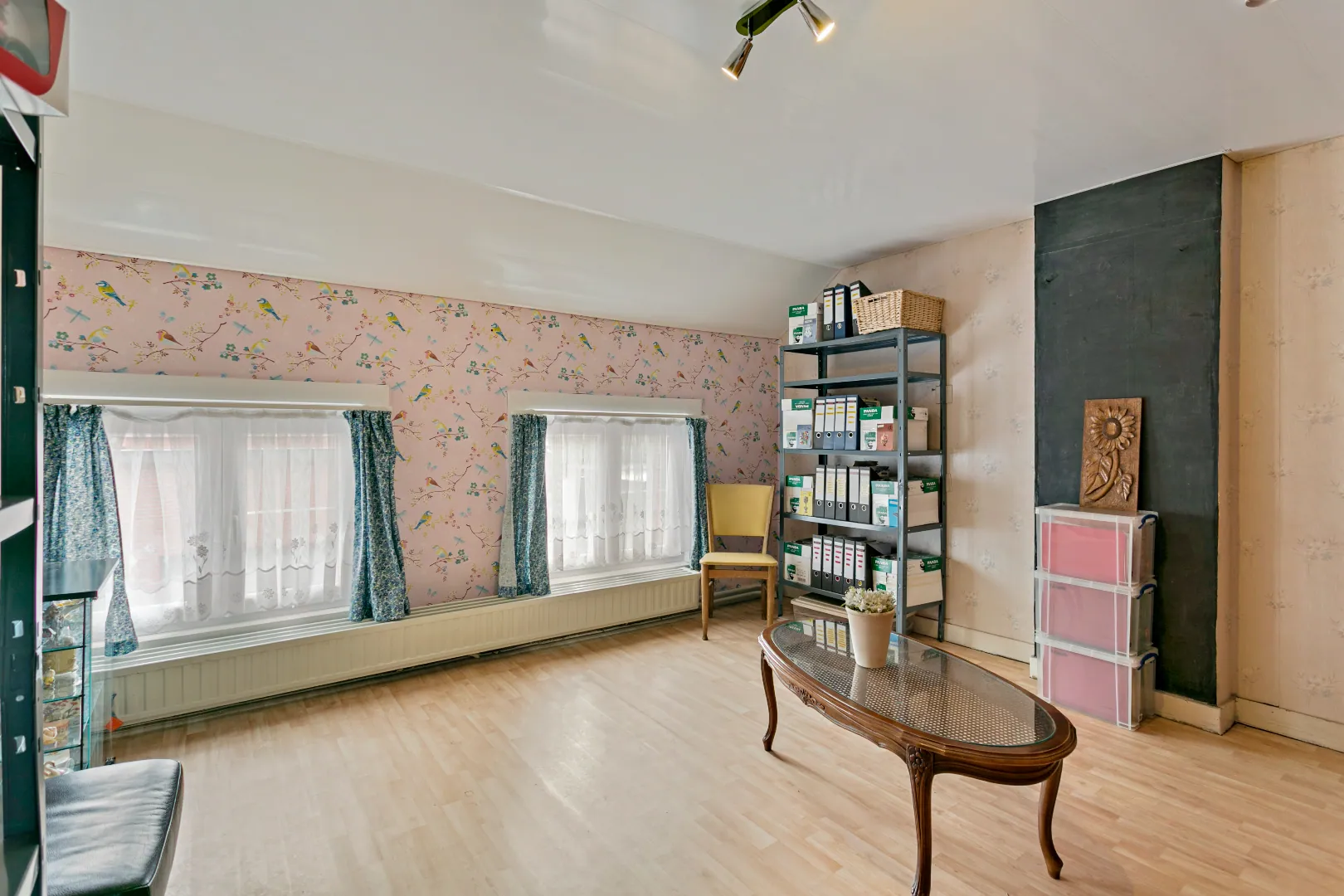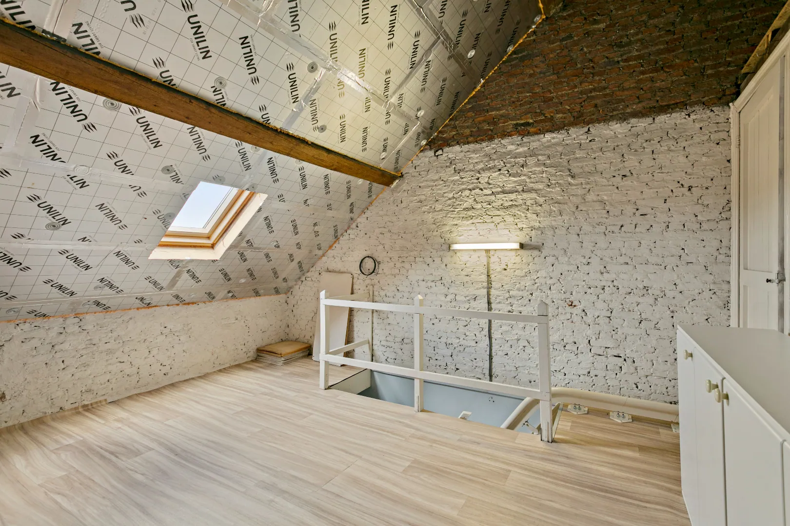 Op de eerste verdieping zijn er 2 ruime slaapkamers waarvan één doorgang geeft naar het af te werken zolderverdiep, met mogelijkheid tot een derde en/of vierde slaapkamer.