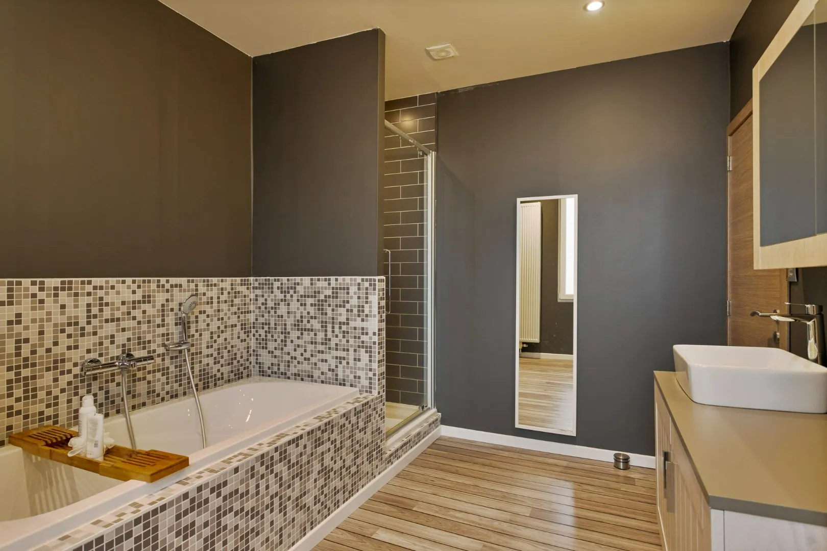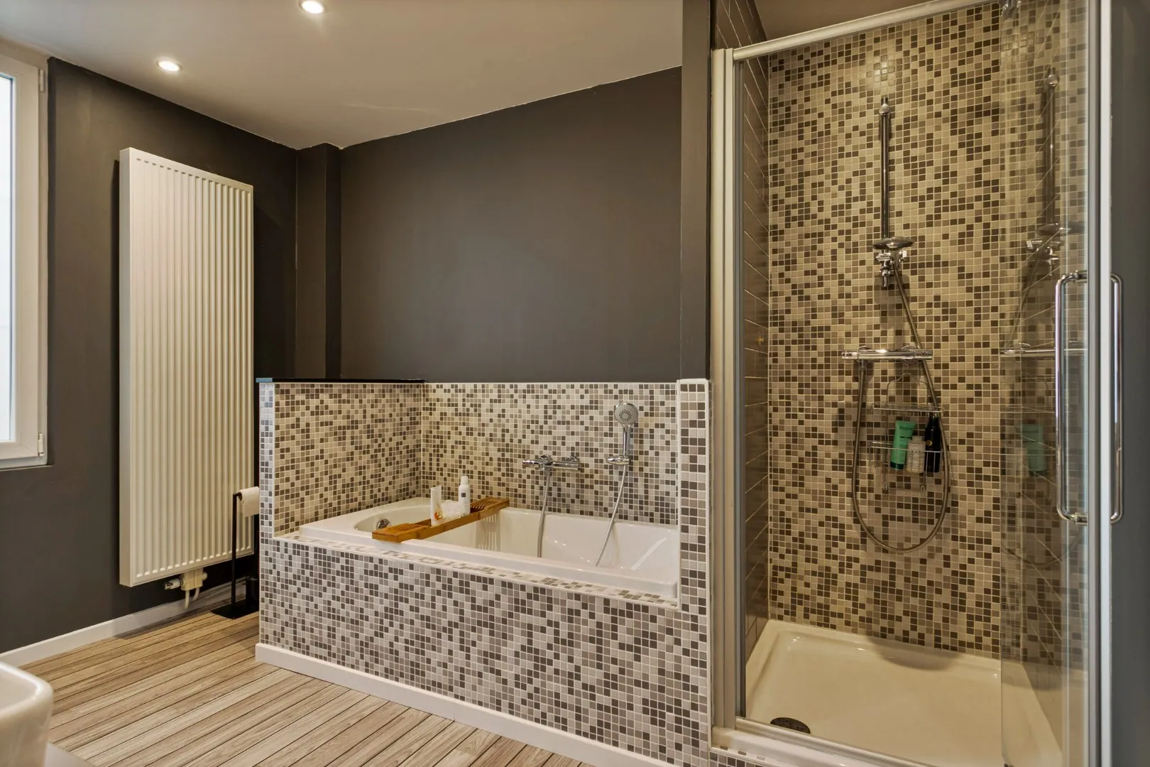 Op de eerste verdieping vind je een eerste ruime slaapkamer, badkamer met zowel douche als bad en tweede toilet. Op de tweede verdieping vinden we nog twee slaapkamers.