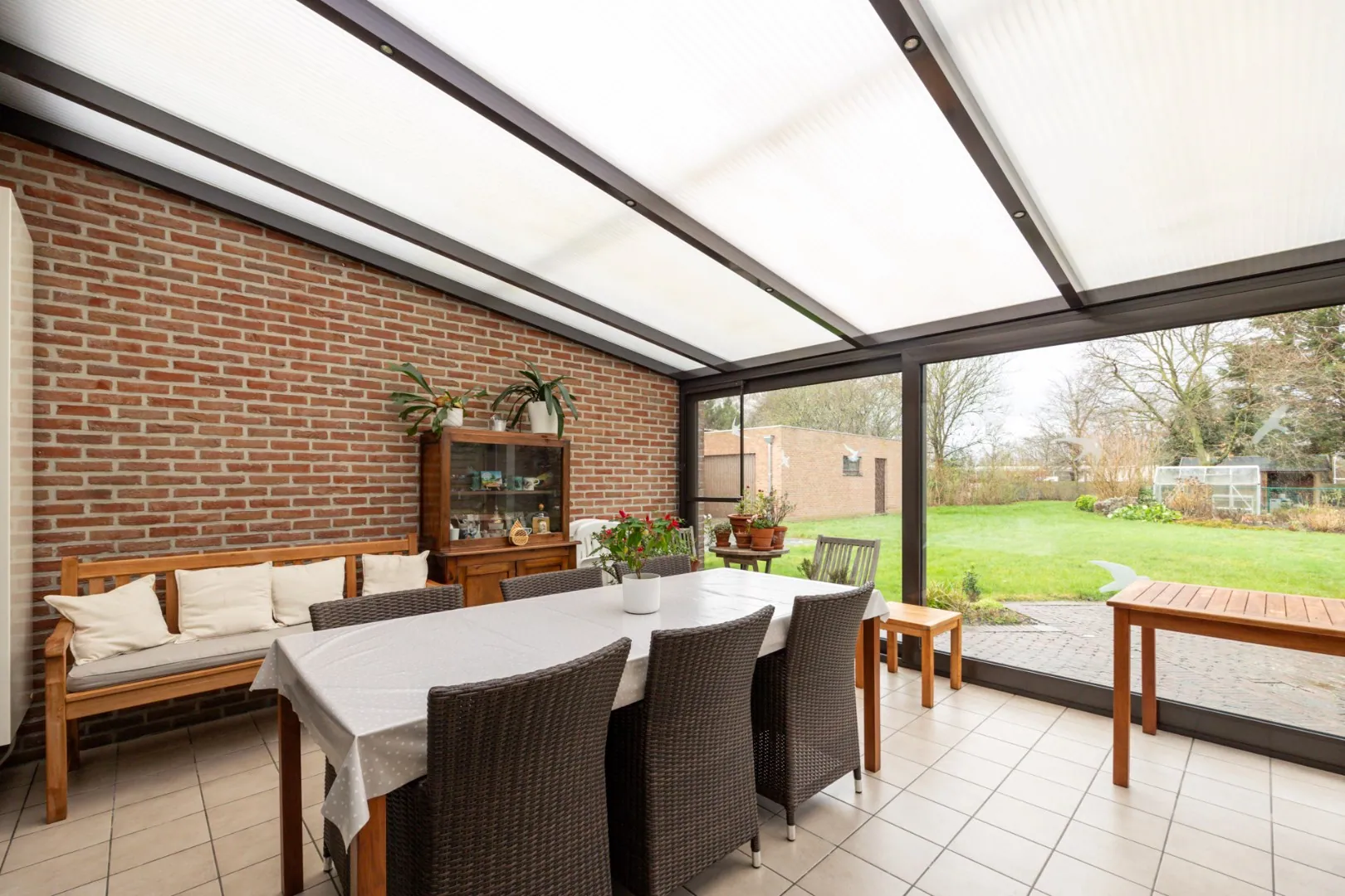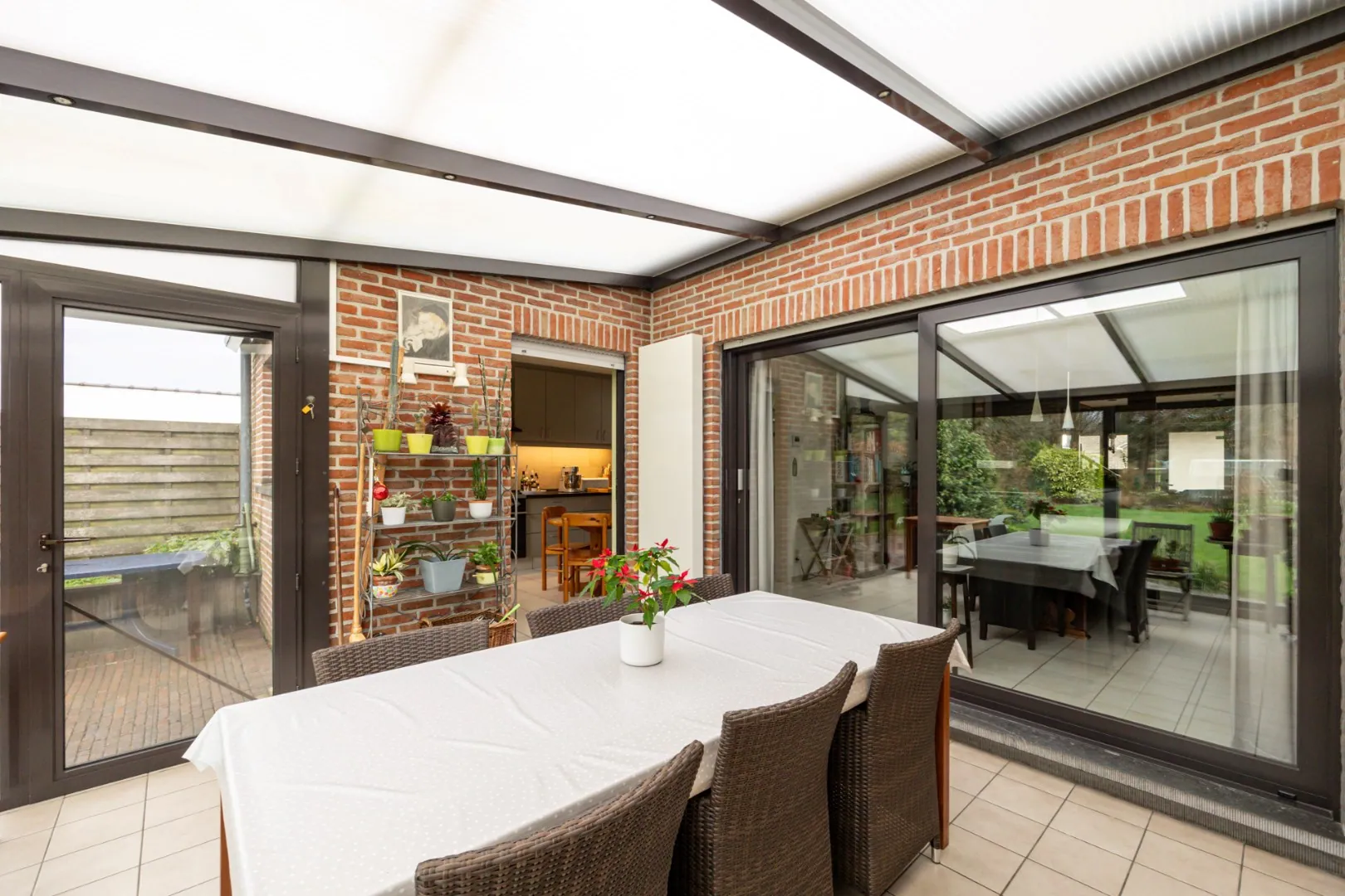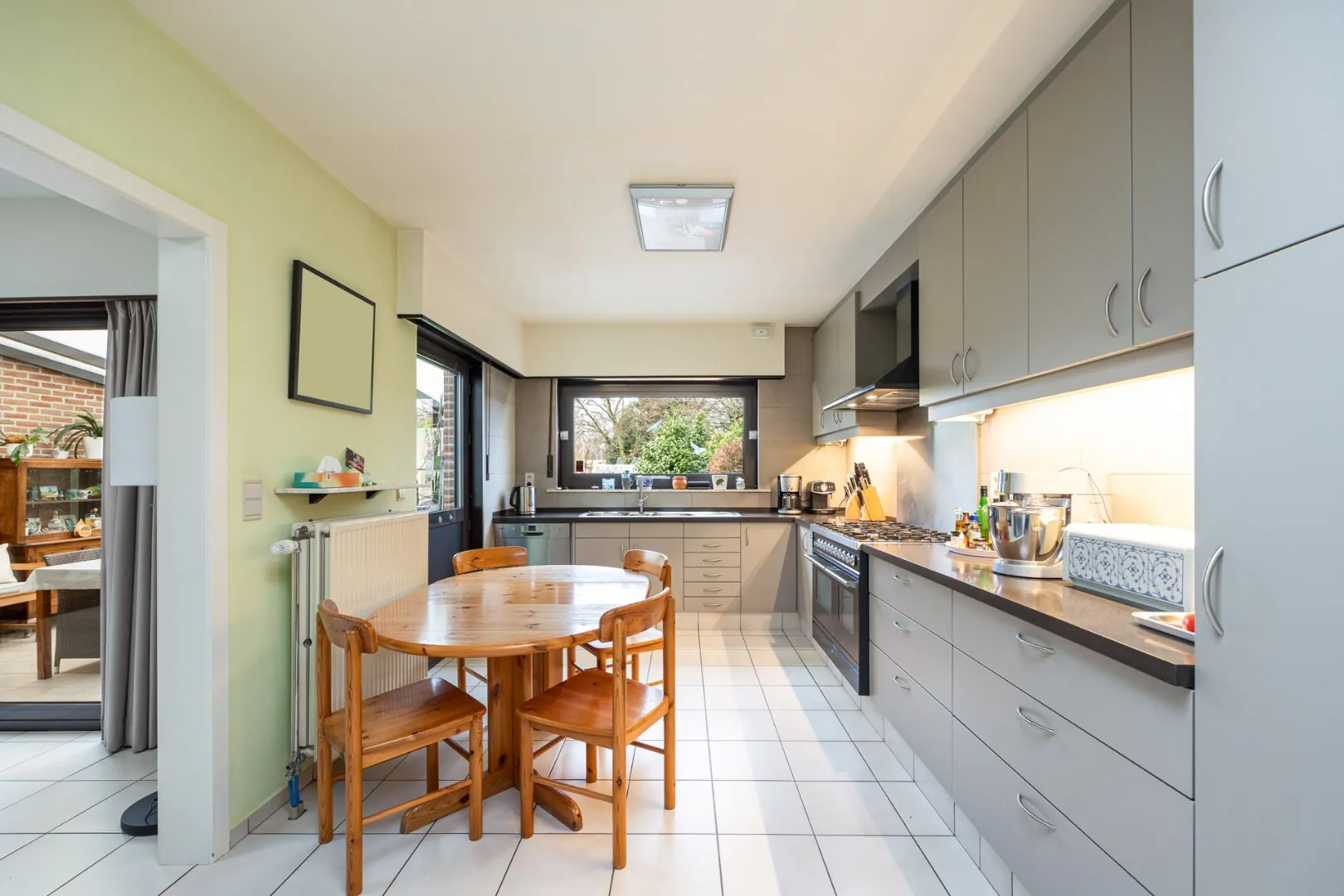 Geniet van de praktische indeling en het natuurlijke licht dat de leefruimte en keuken verrijkt, waardoor het een ideale plek is om te ontspannen. Met zicht op de gezellige tuin met veranda is het wegdromen naar de zomeravonden met familie en vrienden.