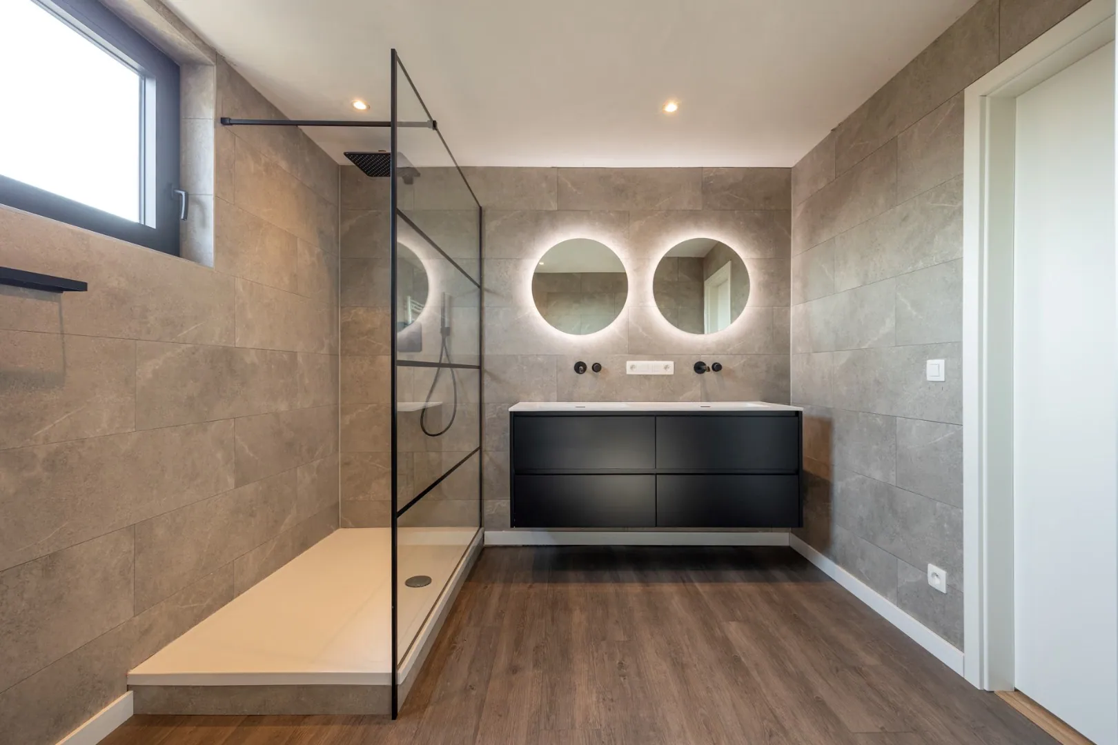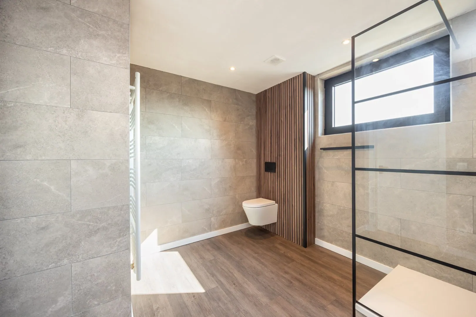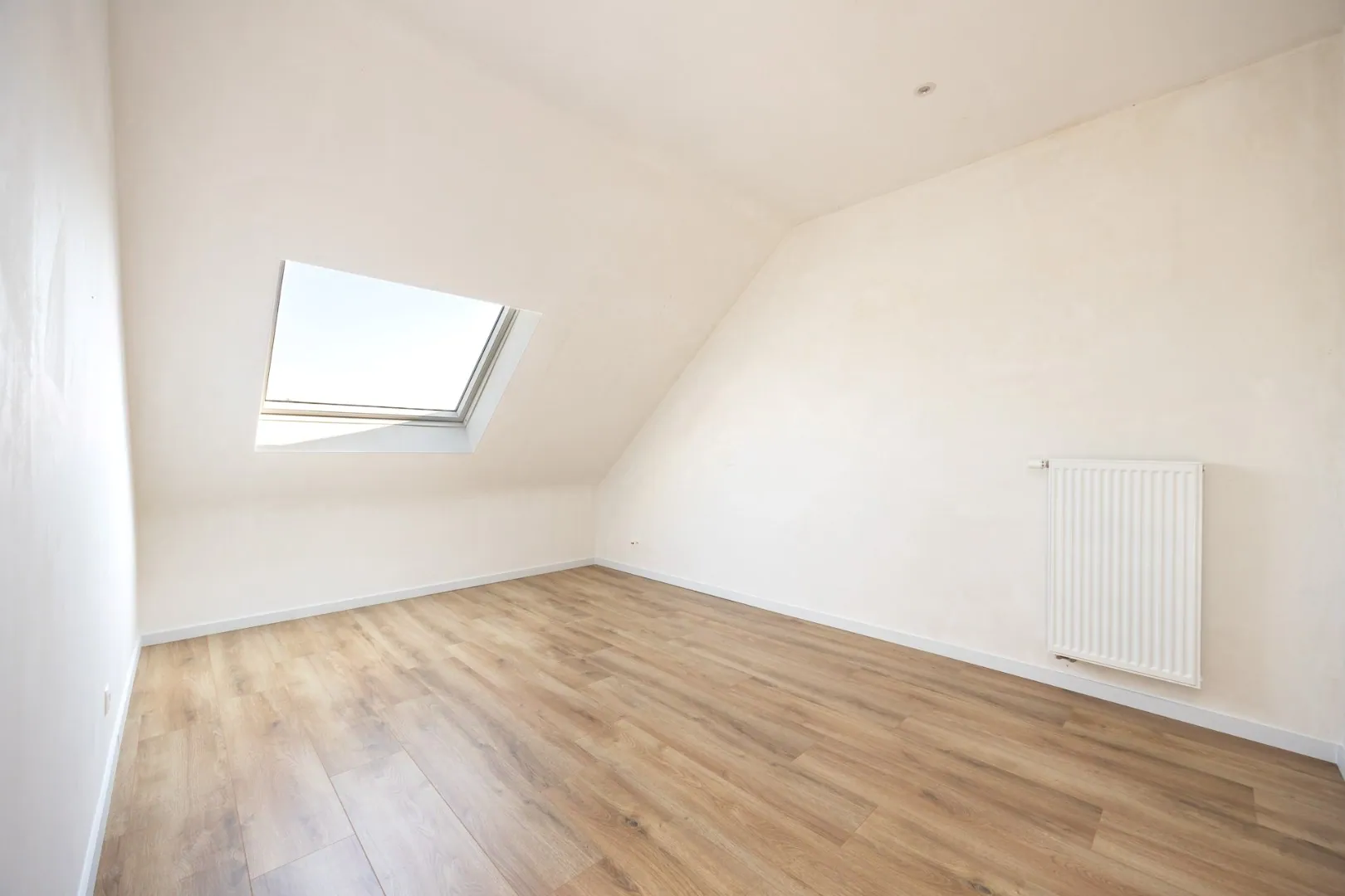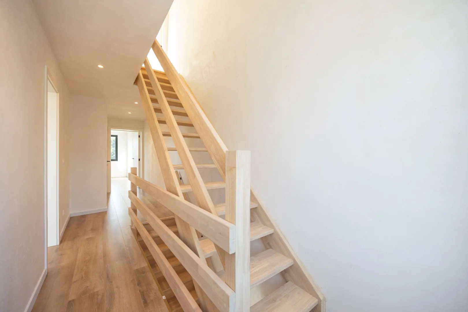 Op de eerste verdieping vinden we twee slaapkamers en een badkamer met dubbele wastafel, inloopdouche en toilet. De tweede verdieping brengt ons een ruime derde slaapkamer en een vierde aparte kamer die kan dienen als bureauruimte/kinderkamer/berging.