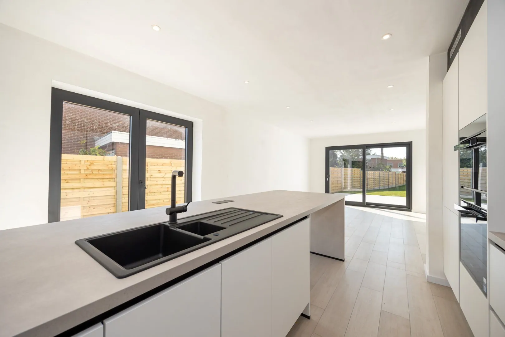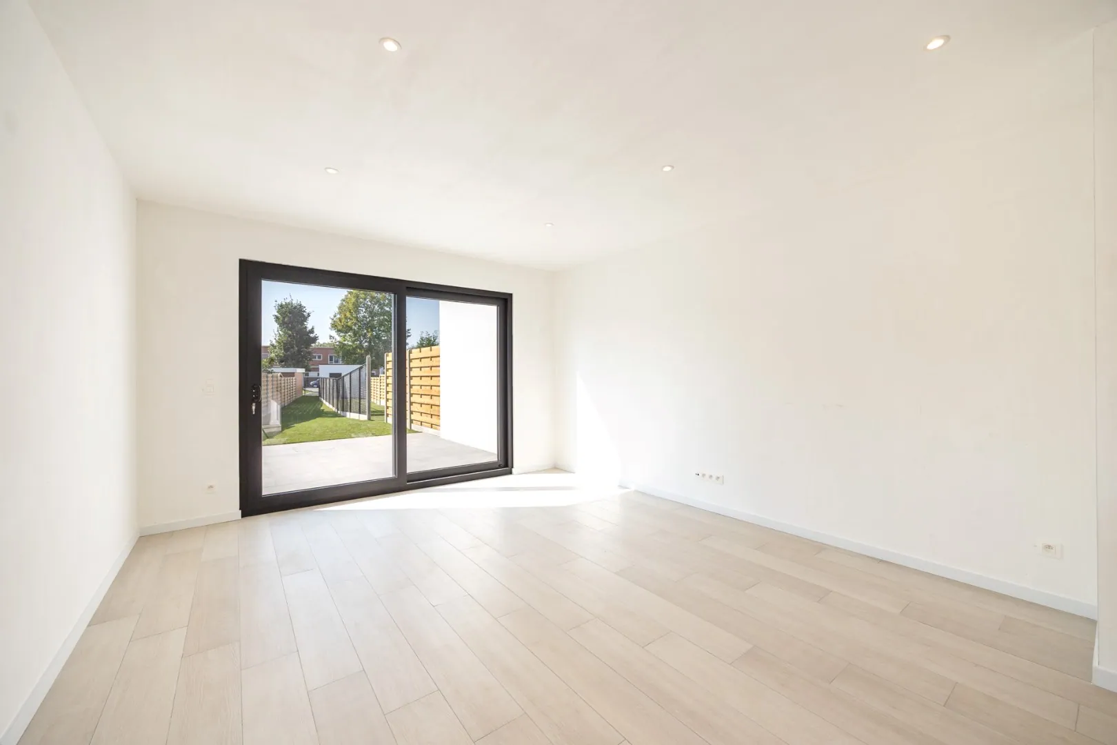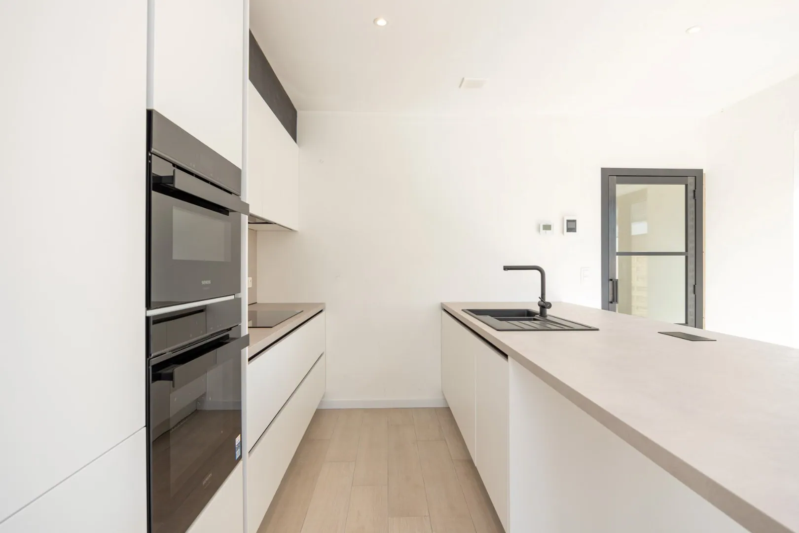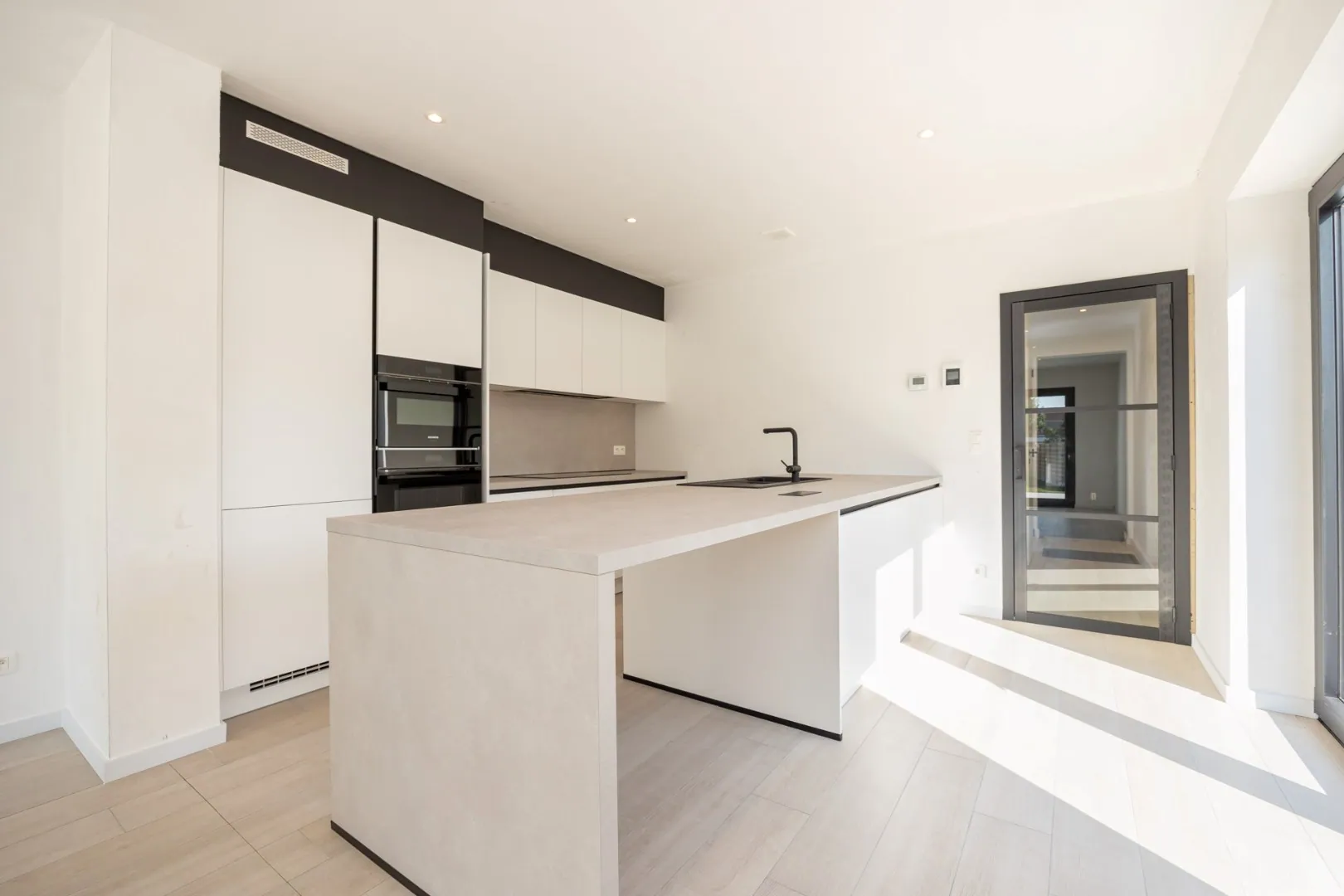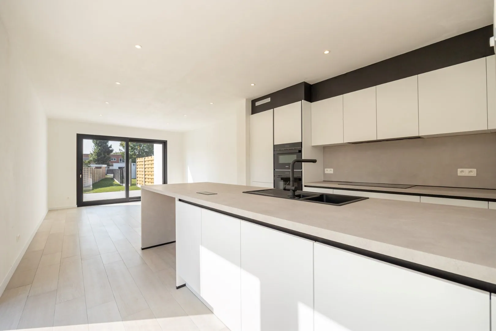 Bij het betreden van de woning spreekt de lichtinval meteen aan. In de volledig uitgeruste keuken, voorzien van Siemens toestellen wordt koken met zicht op de tuin, een waar genot. Op de gelijkvloerse verdieping vinden we ook nog een technische ruimte en een toilet.