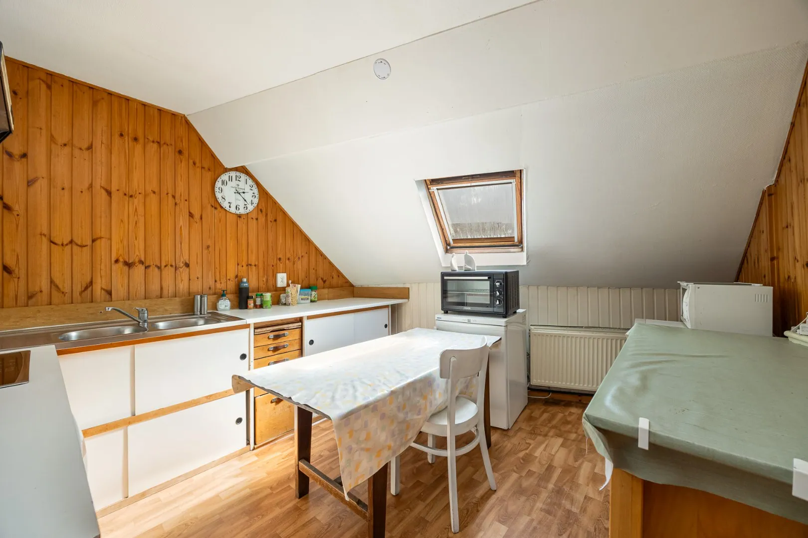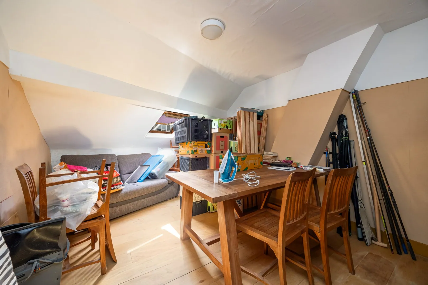 De tweede verdieping biedt nog meer mogelijkheden: drie bijkomende ruimtes, waarvan één momenteel ingericht is met een keuken en een kleine badkamer. Ideaal voor een inwonende tiener, kangoeroe-wonen of een extra werkruimte.