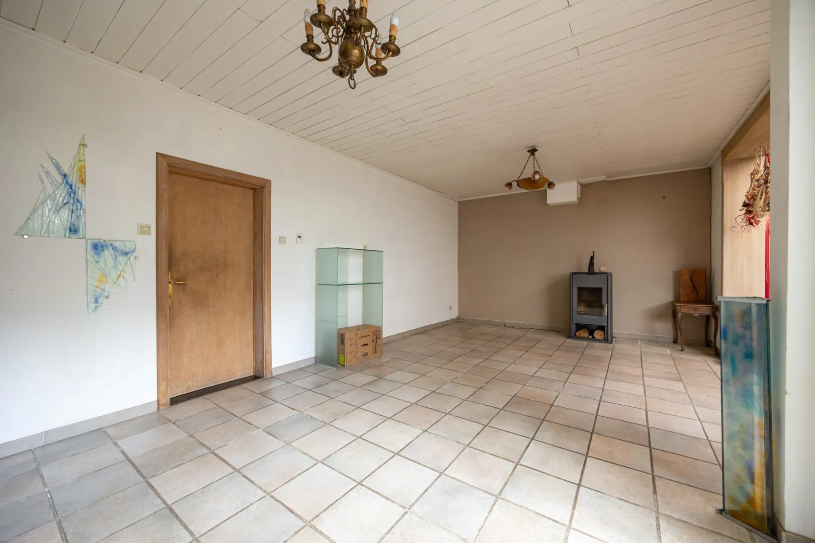 Bij het binnenkomen word je verwelkomd in een lichte inkomhal met vooraan een polyvalente ruimte — perfect als bureauruimte, hobbykamer of extra slaapkamer.