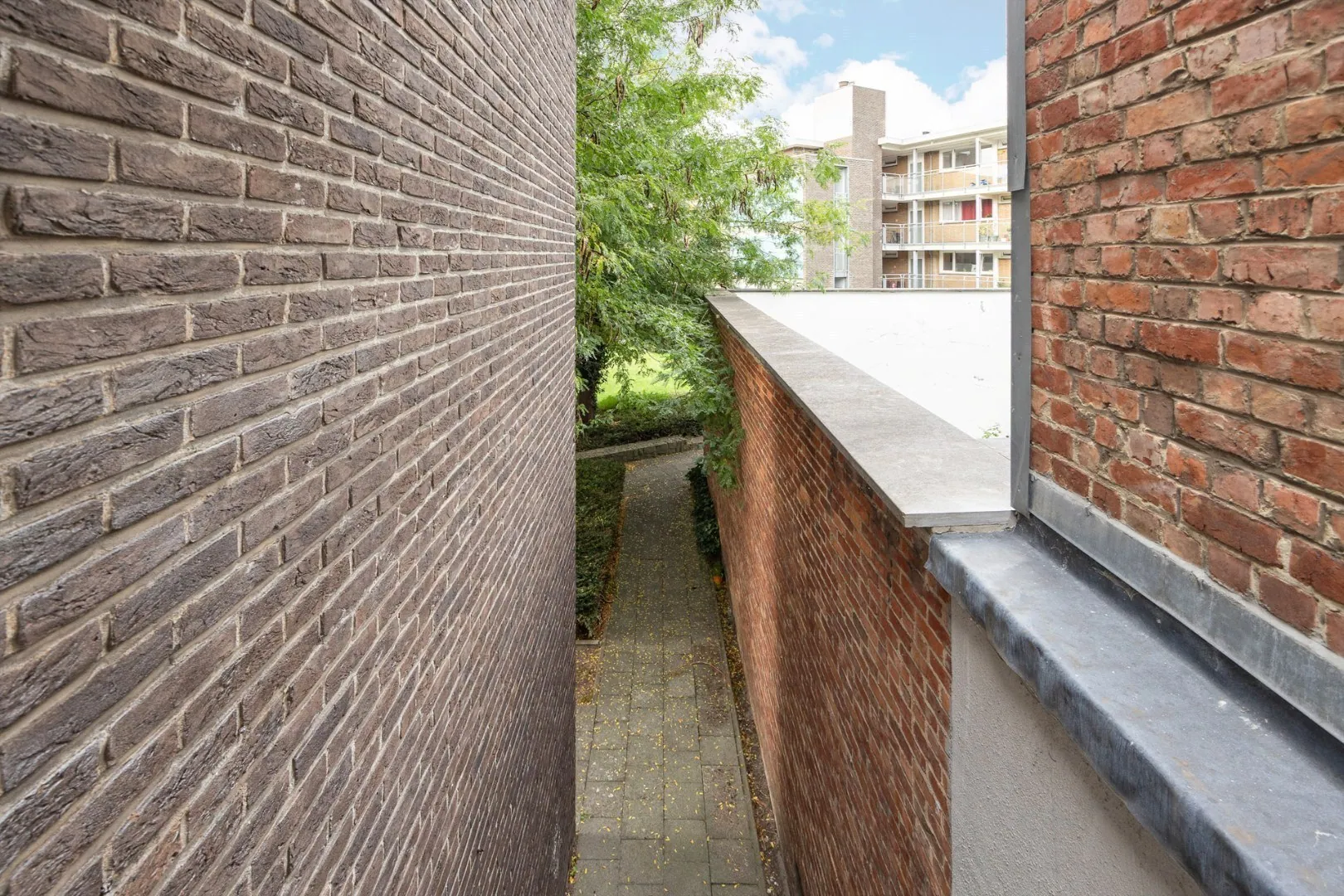 Op het gelijkvloers vind je een ruime garage met plaats voor een wagen én fietsen – een absolute troef in het centrum van de stad. Achteraan is er een handige bergruimte/wasplaats, naast een polyvalente ruimte die perfect dienst kan doen als bureau of hobbyruimte. Via deze ruimte is er een achterdeur die uitgeeft op de gemeenschappelijke tuin.
