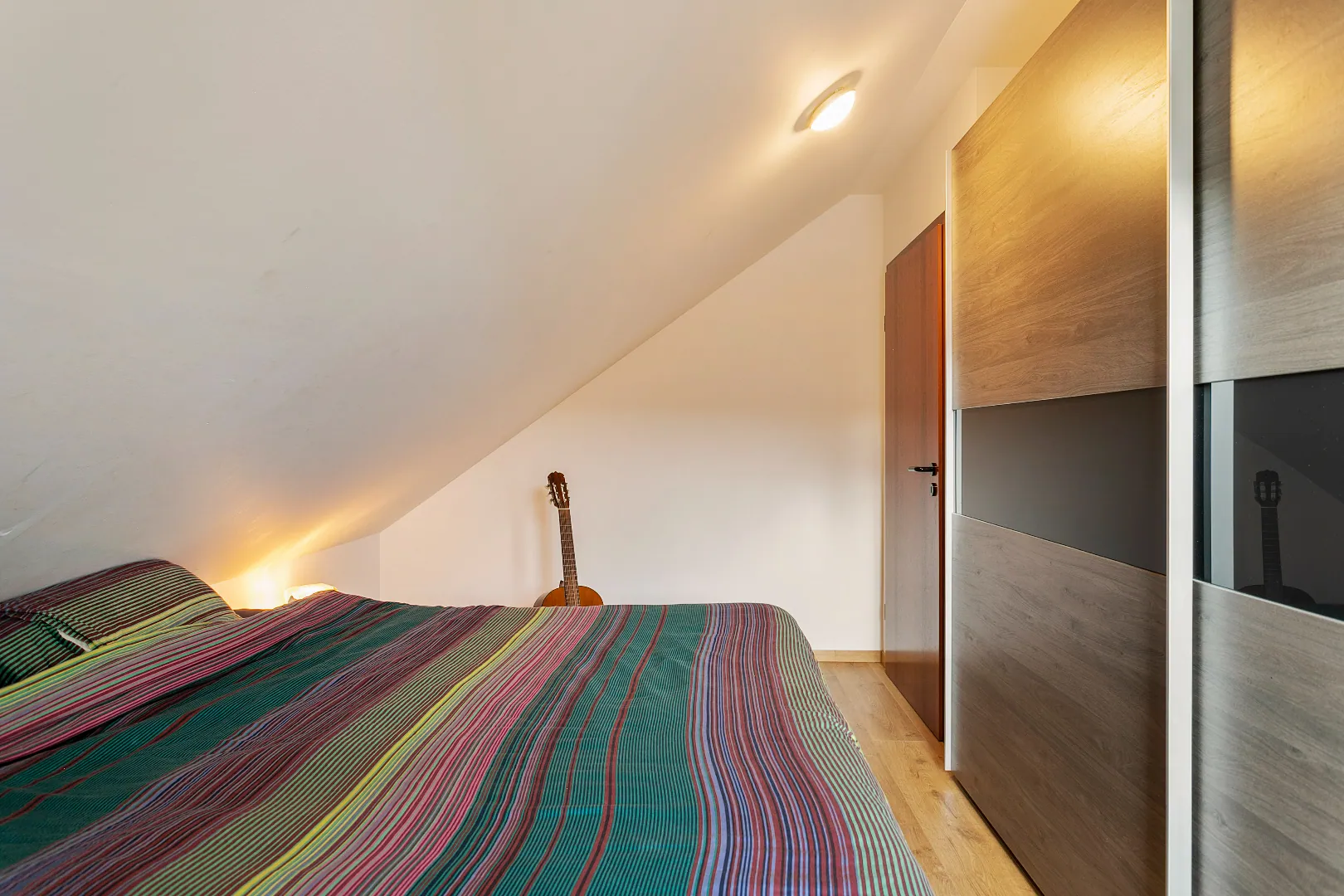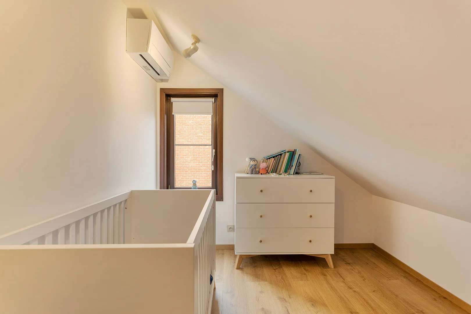 Op de eerste verdieping vindt u drie slaapkamers, dewelke voorzien zijn van airco, een badkamer met douche, bad en een tweede toilet.