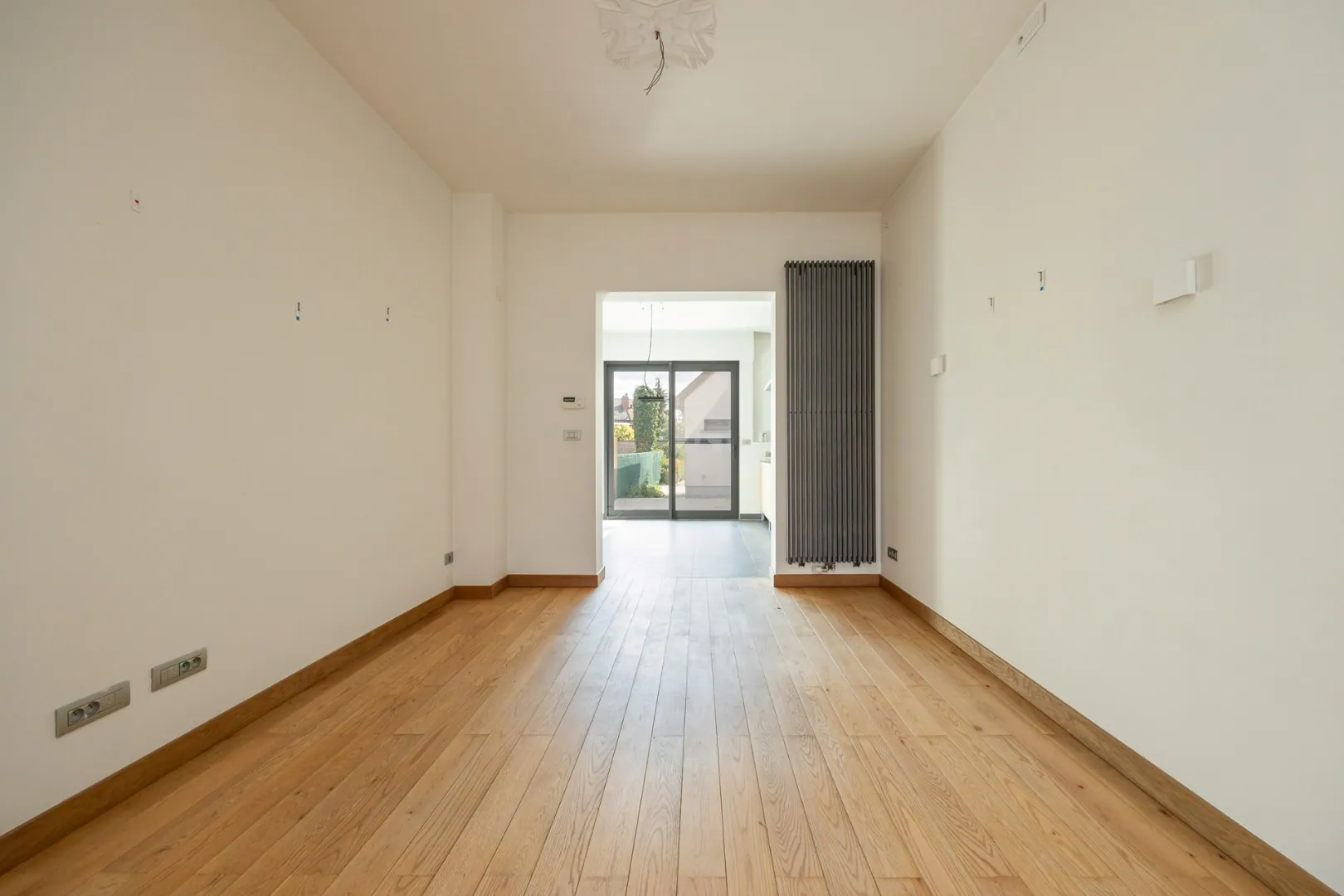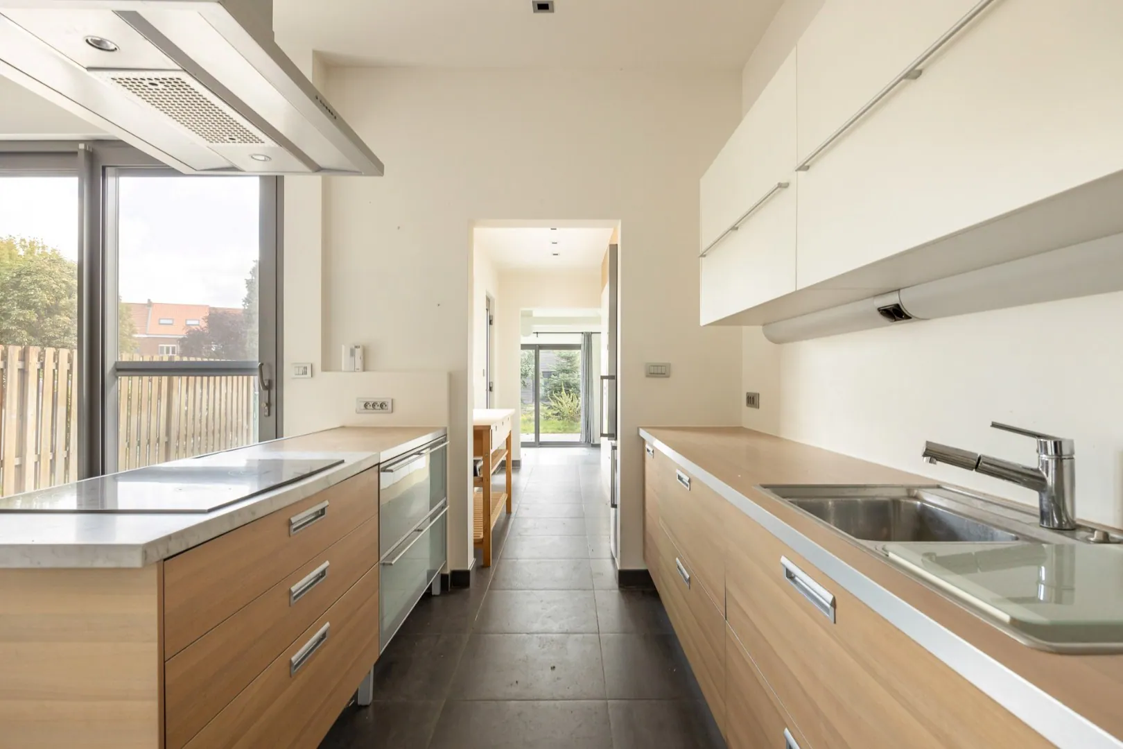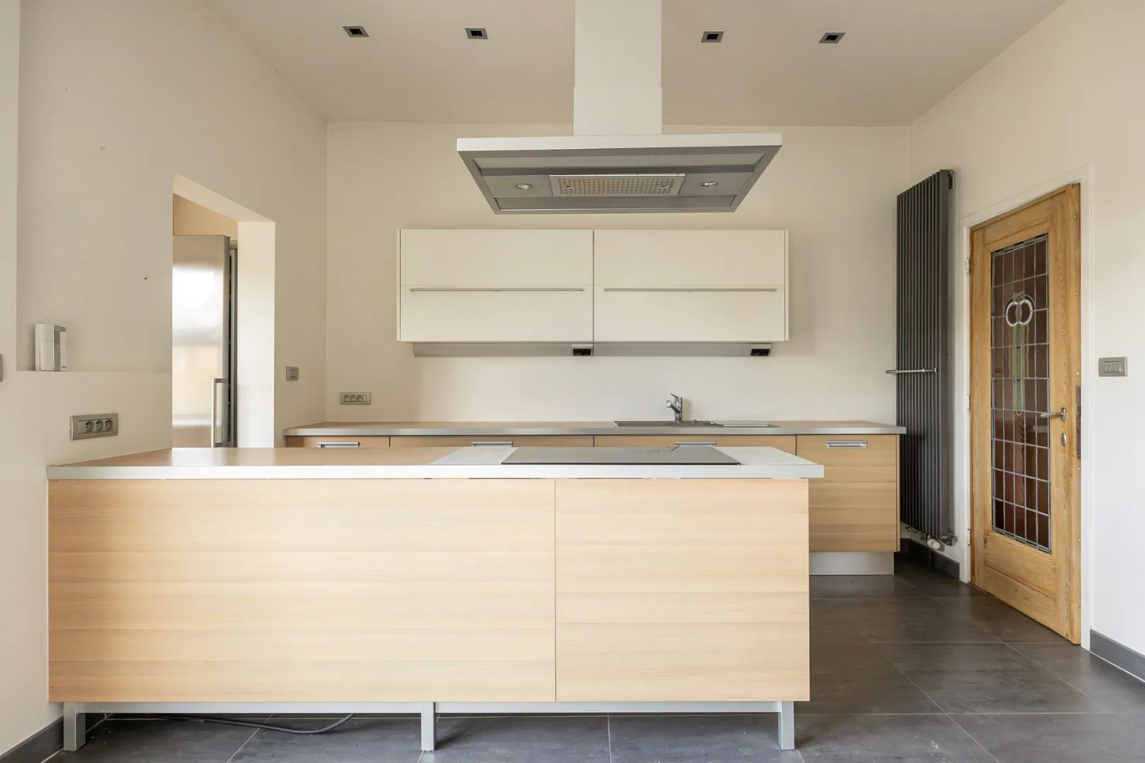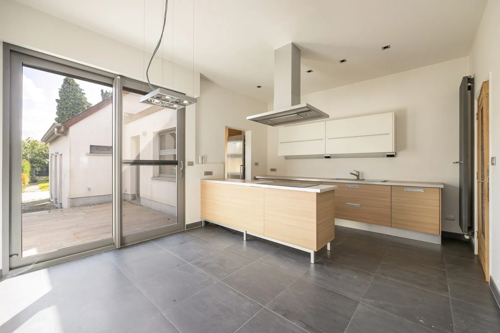 Bij binnenkomst wordt u meteen verrast door de zeer ruime leefruimte met aansluitende keuken en bijkeuken, ideaal voor gezellige familiemomenten. Daarnaast is er een polyvalente ruimte die rechtstreeks uitgeeft op de tuin: perfect als tweede leefruimte, bureau of speelkamer.