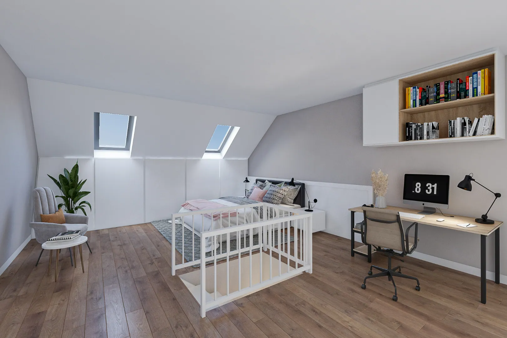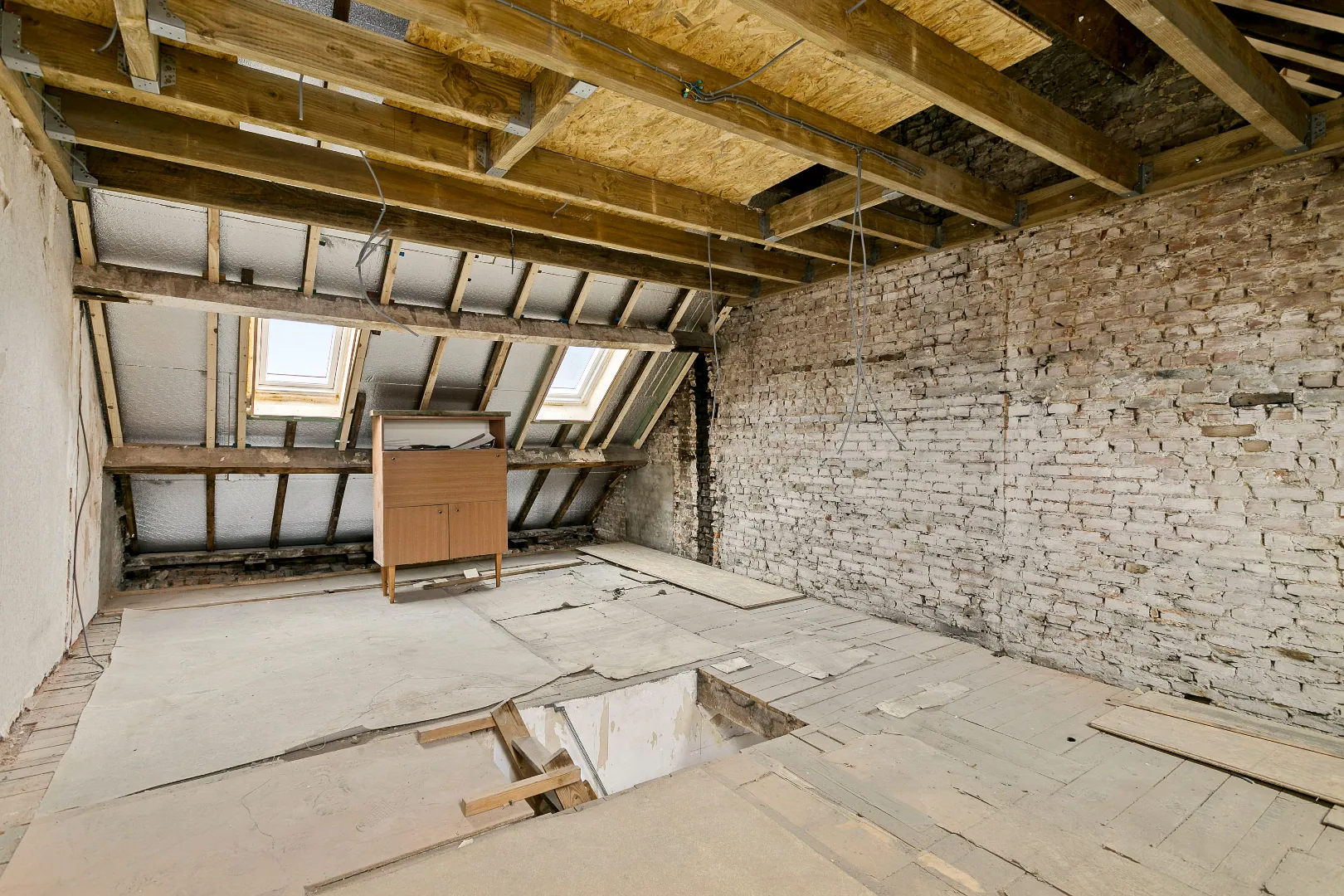 Op de zolderverdieping hebt u de mogelijkheid om een zeer ruime tweede slaapkamer te creëren.