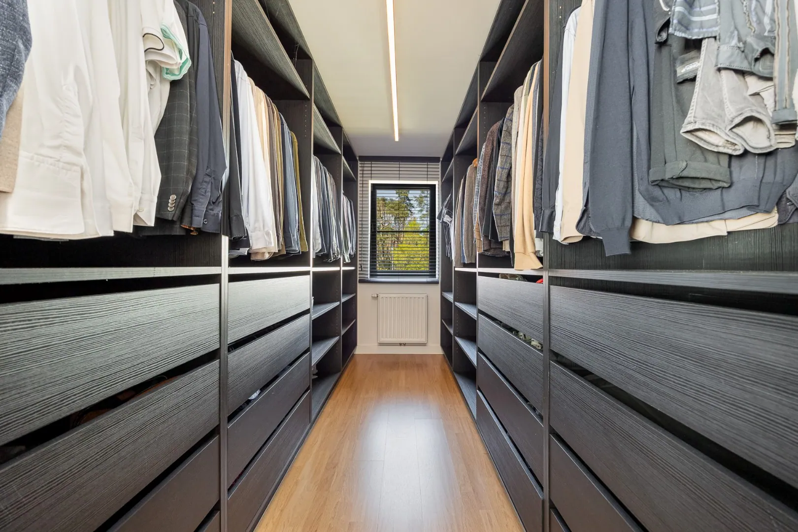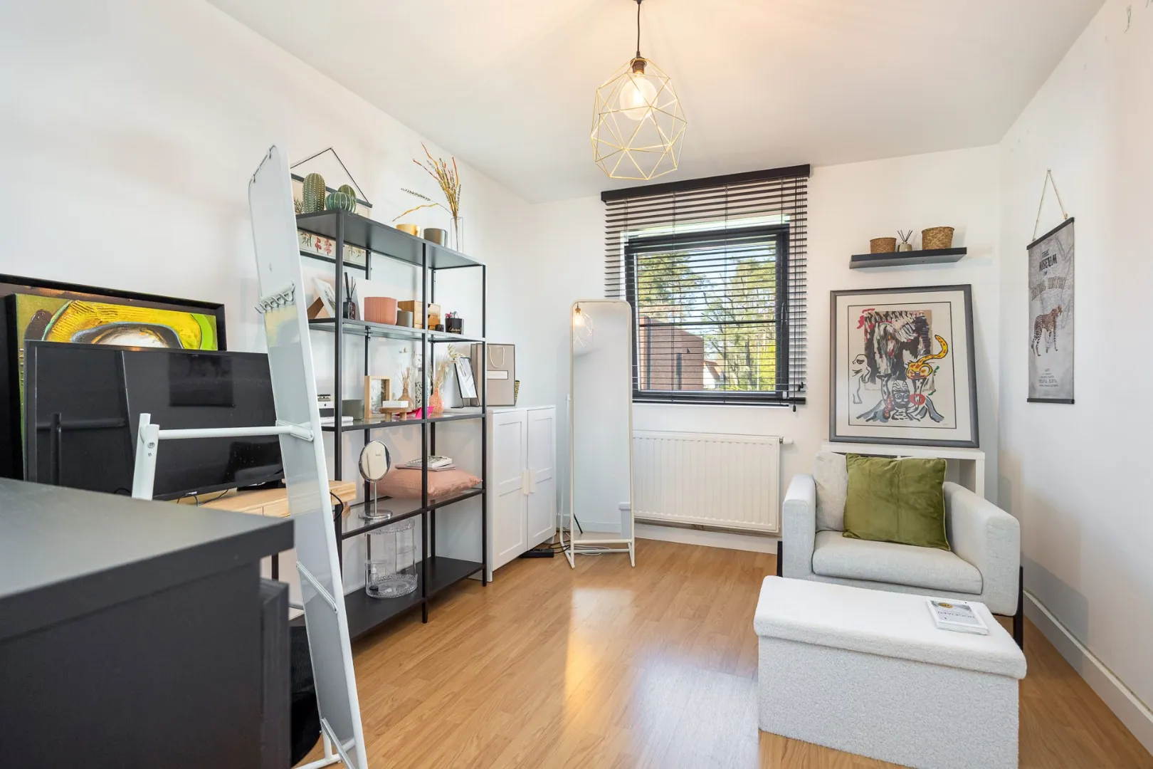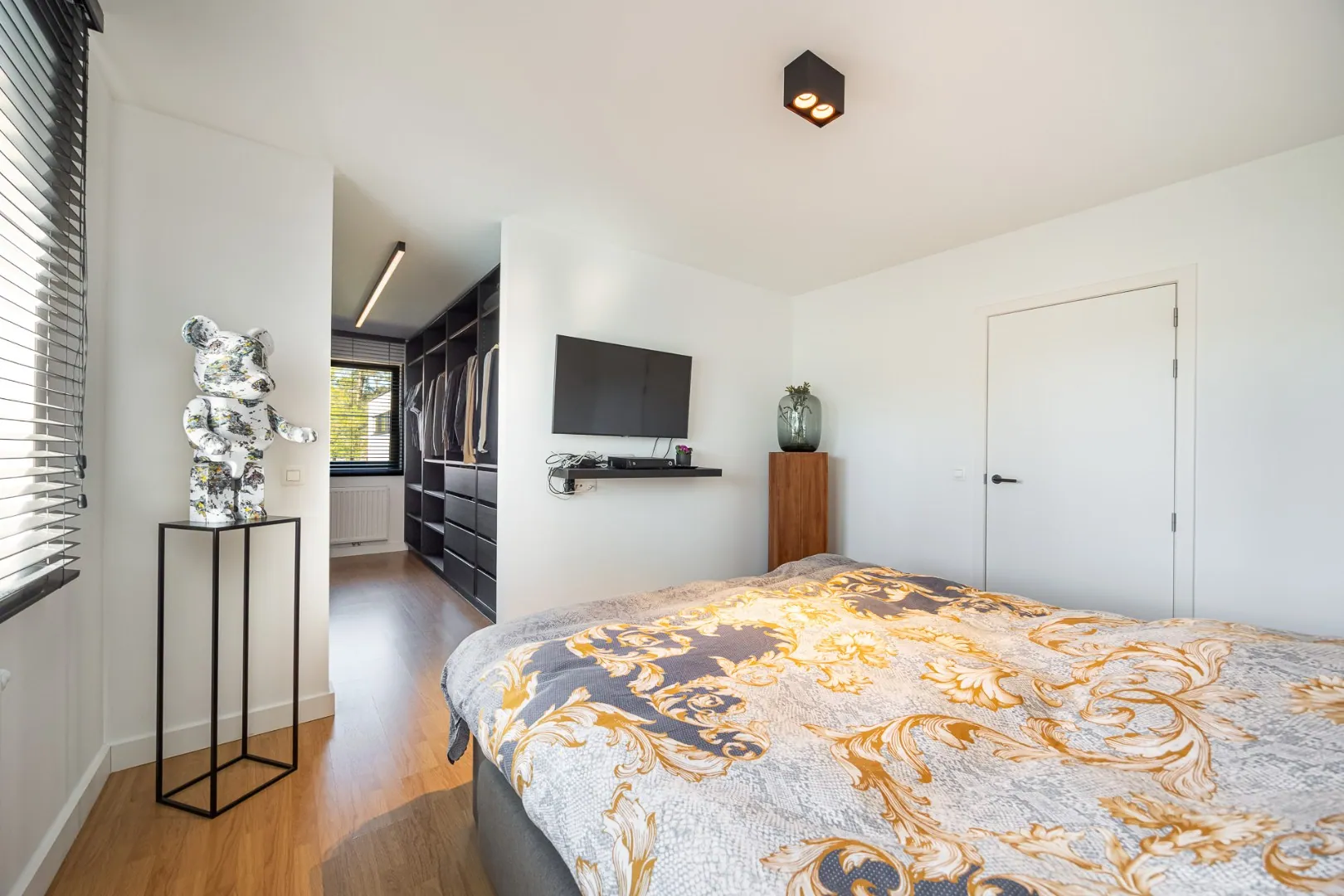 Bij het betreden van de woning valt meteen de overvloed aan natuurlijk licht op, wat zorgt voor een aangename en open sfeer in de leefruimtes. De indeling is doordacht en praktisch: er zijn 3 volwaardige slaapkamers, een apart bureau dat ideaal is voor thuiswerk, en een ruime master bedroom met aangrenzende dressing. Daarnaast is er een aparte berging op het gelijkvloers, wat extra opbergruimte en functionaliteit biedt.